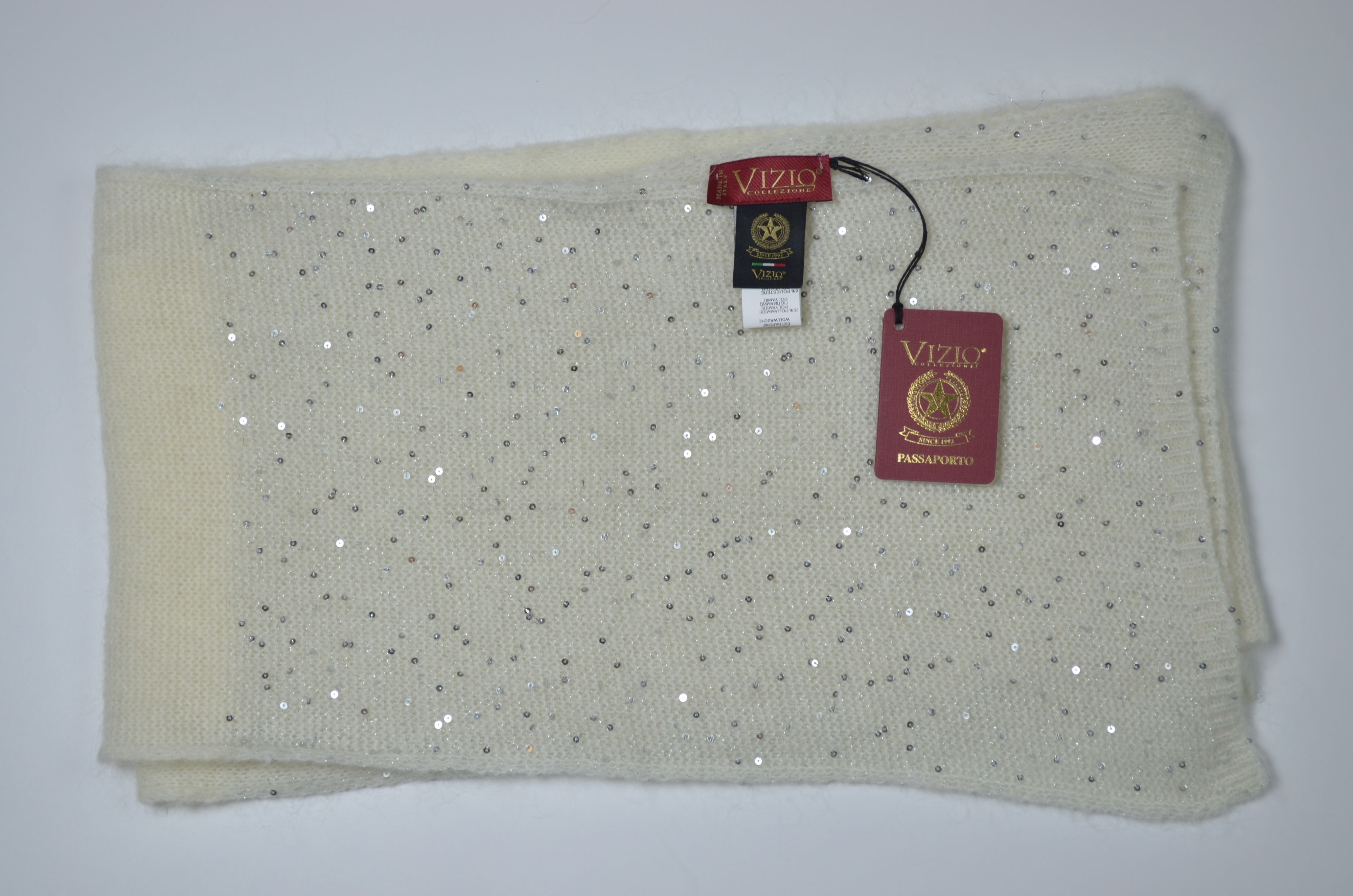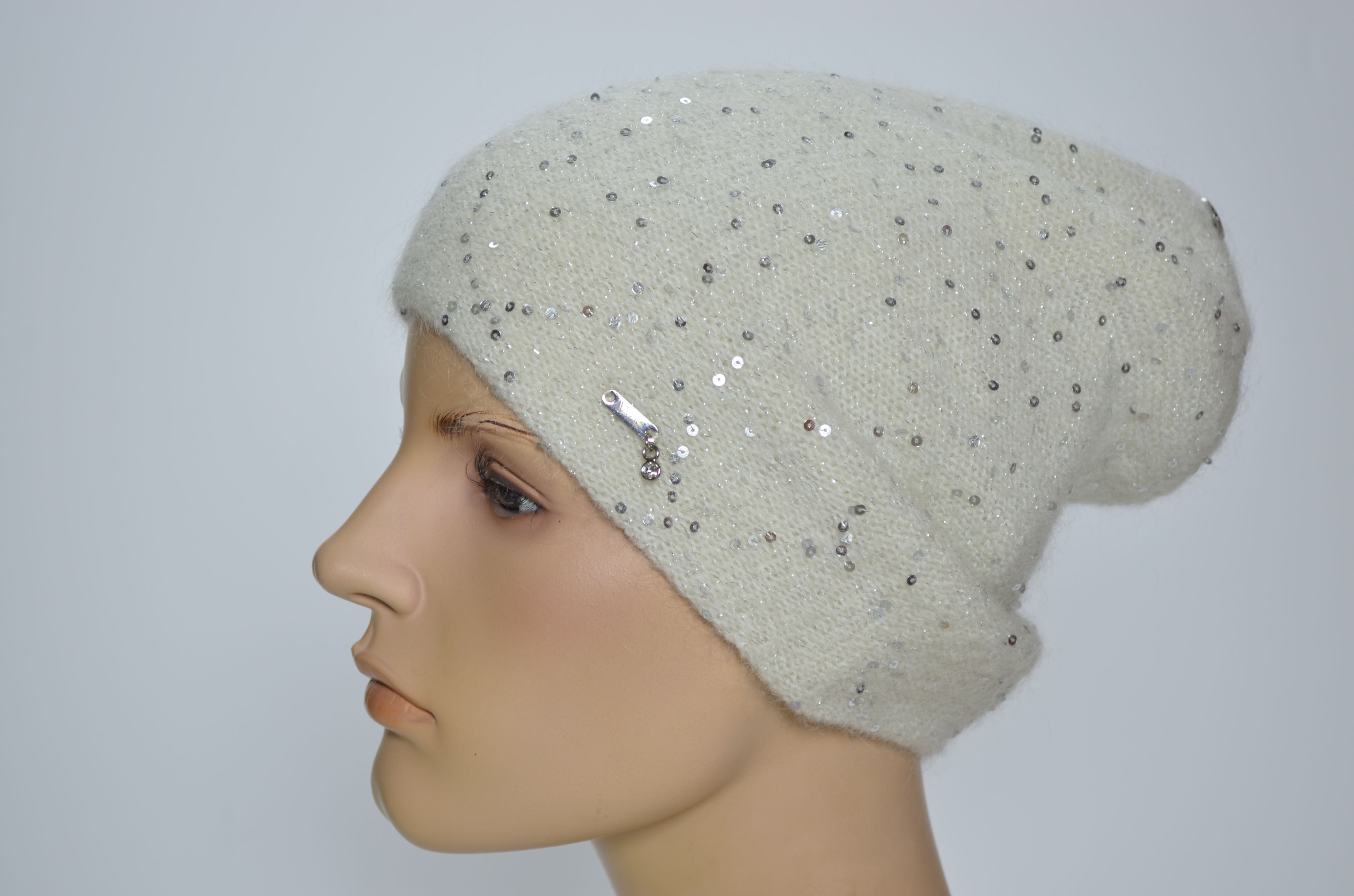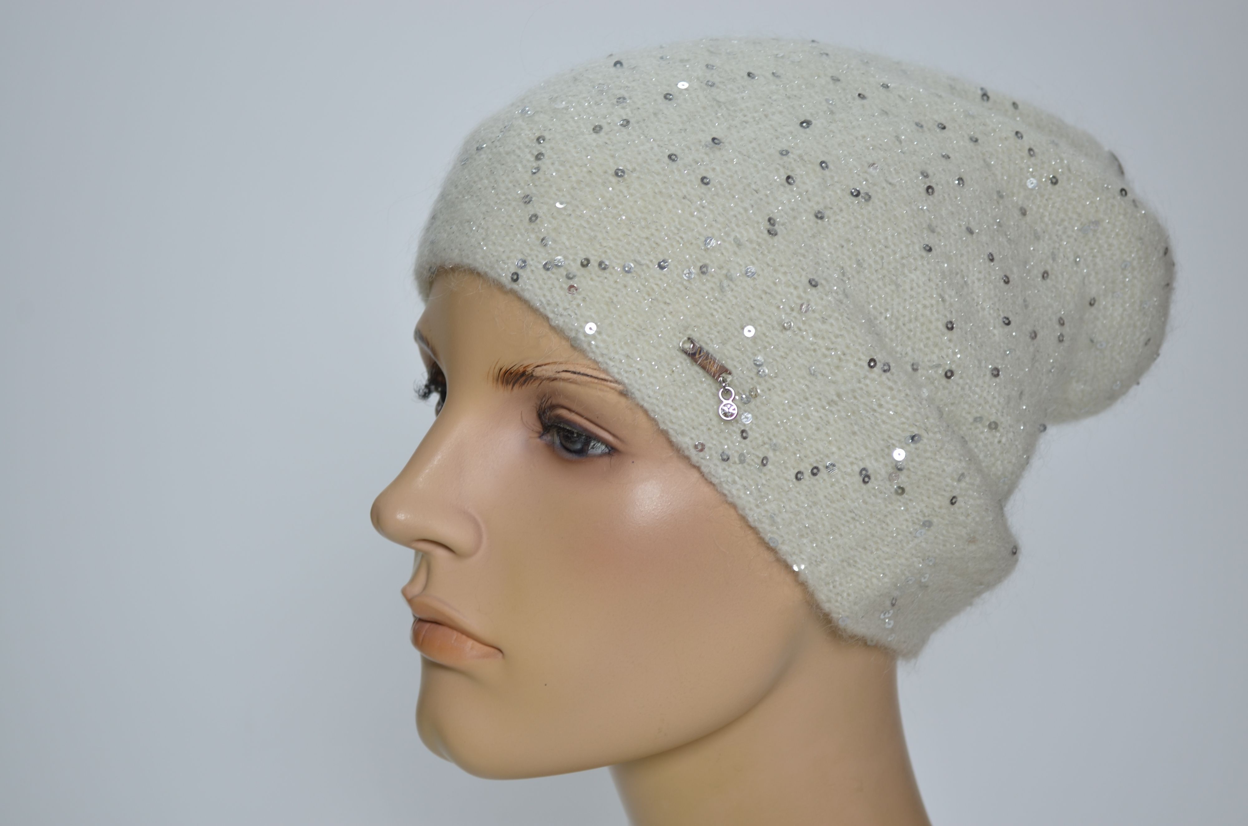 Vizio итальянская шапка 1350 CL белого цвета с пайетками. Классическая белая шапка с пайетками аналог предыдущих моделей 6943 , 1042 и более ранних коллекций итальянских шапок, беретов, кепок и шарфов с пайетками