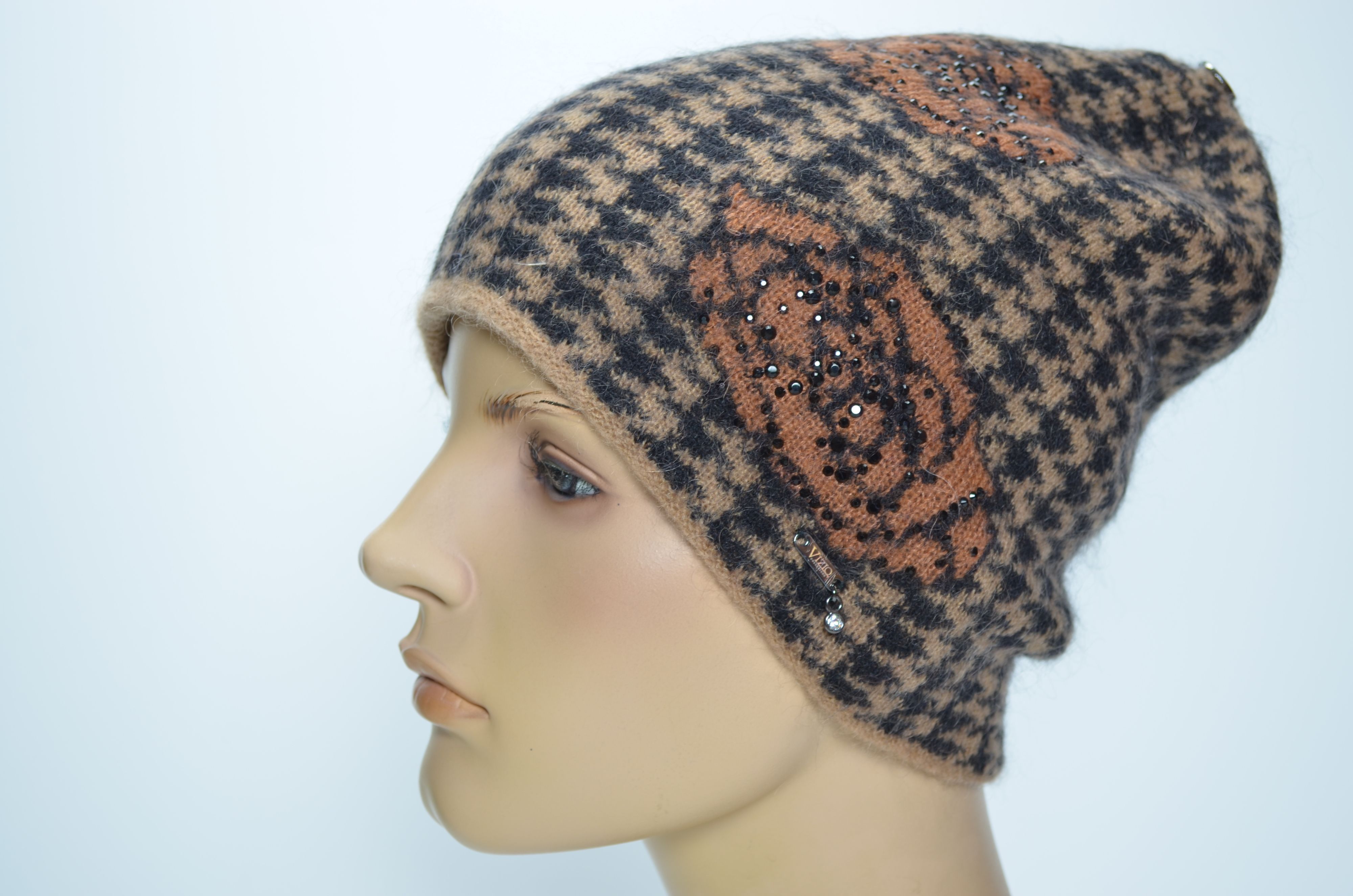 Вязаная красивая женская зимняя шапка с цветами и стразами осень зима 2024 2025 Vizio Collezione 1370 CY купить в интернет магазине модных итальянских головных уборов