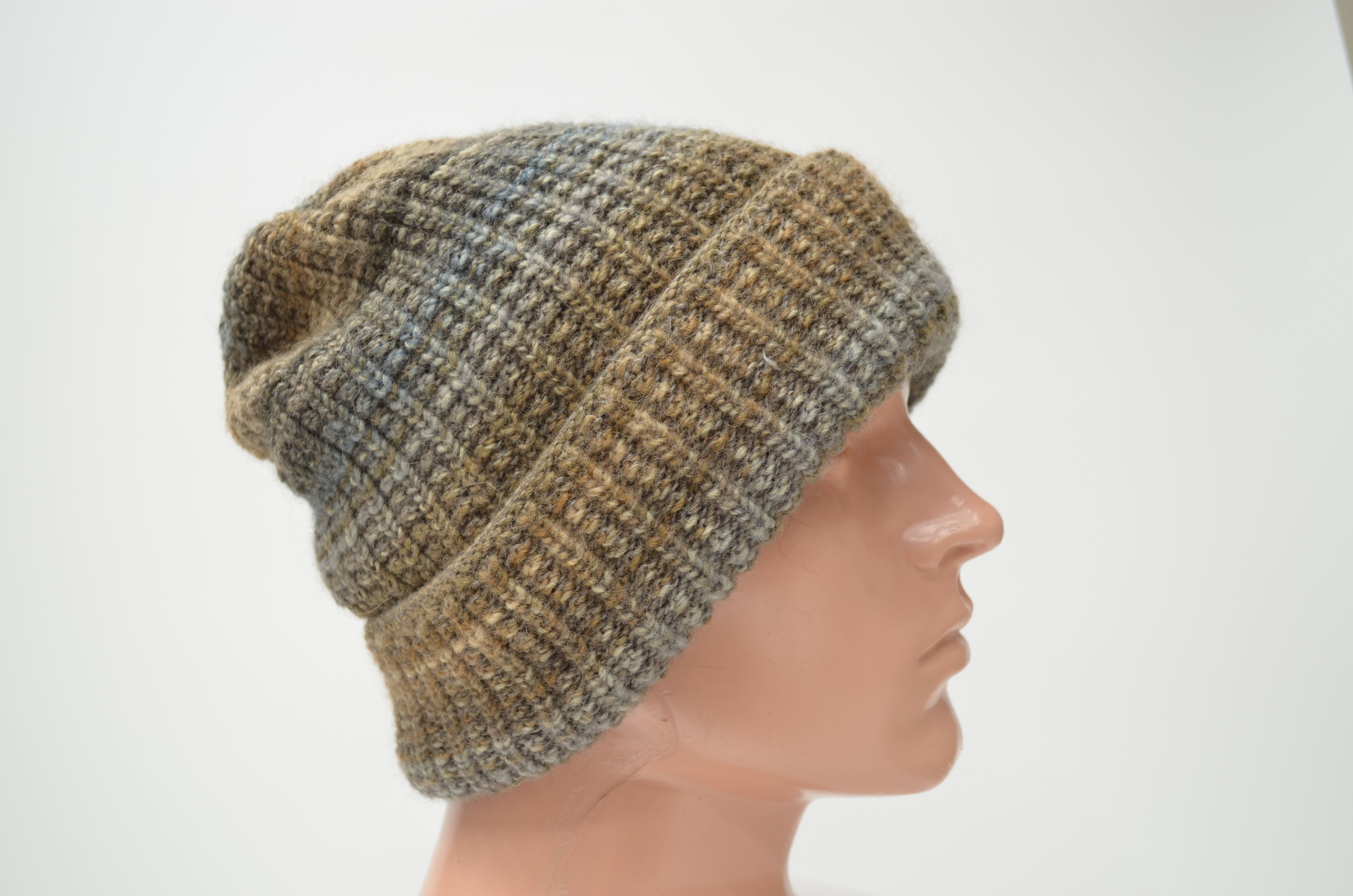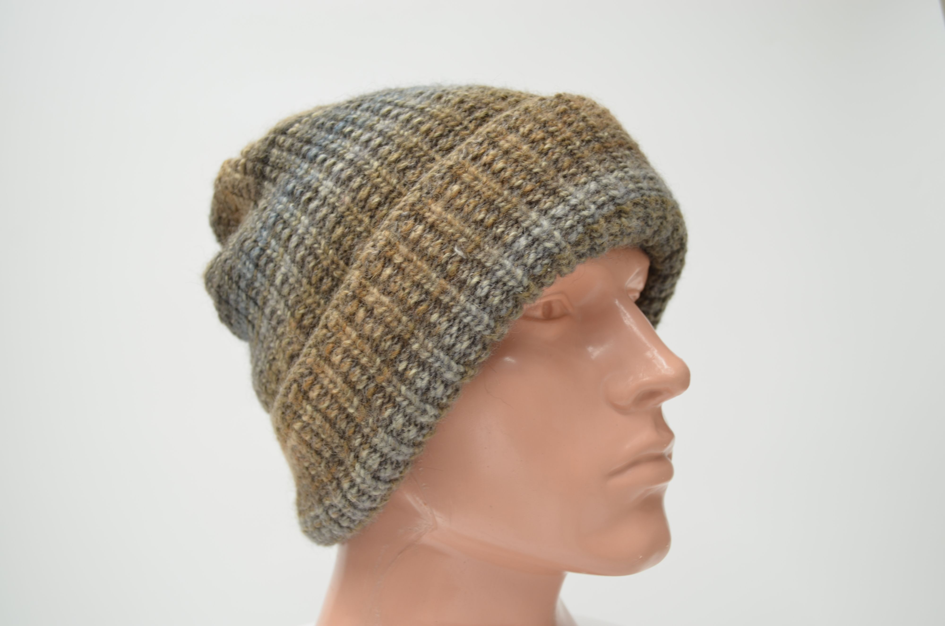 Вязаная шапка с отворотом для мужчин зимняя коричневого цвета