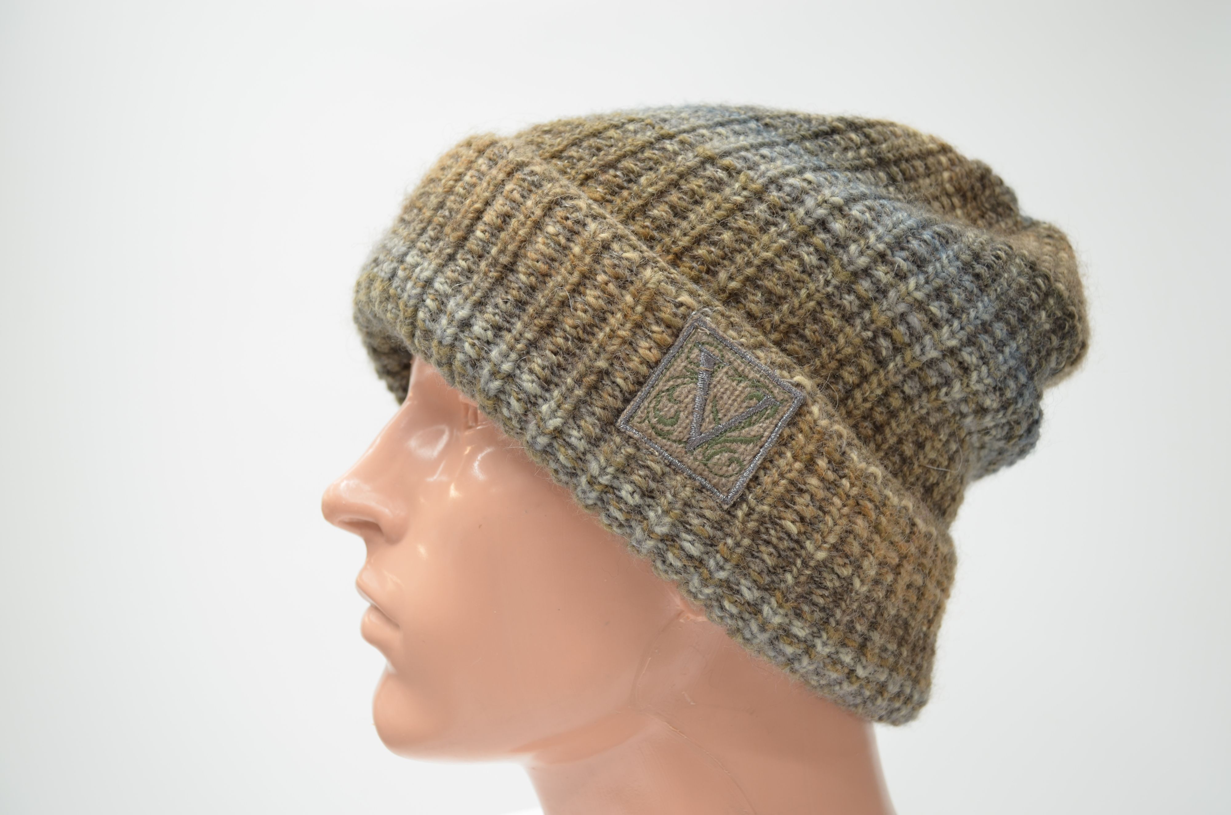 Итальянская вязаная шапка из шерсти с отворотом для мужчин Vizio 1377 коричневая коллекция мужских головных уборов Италии Визио