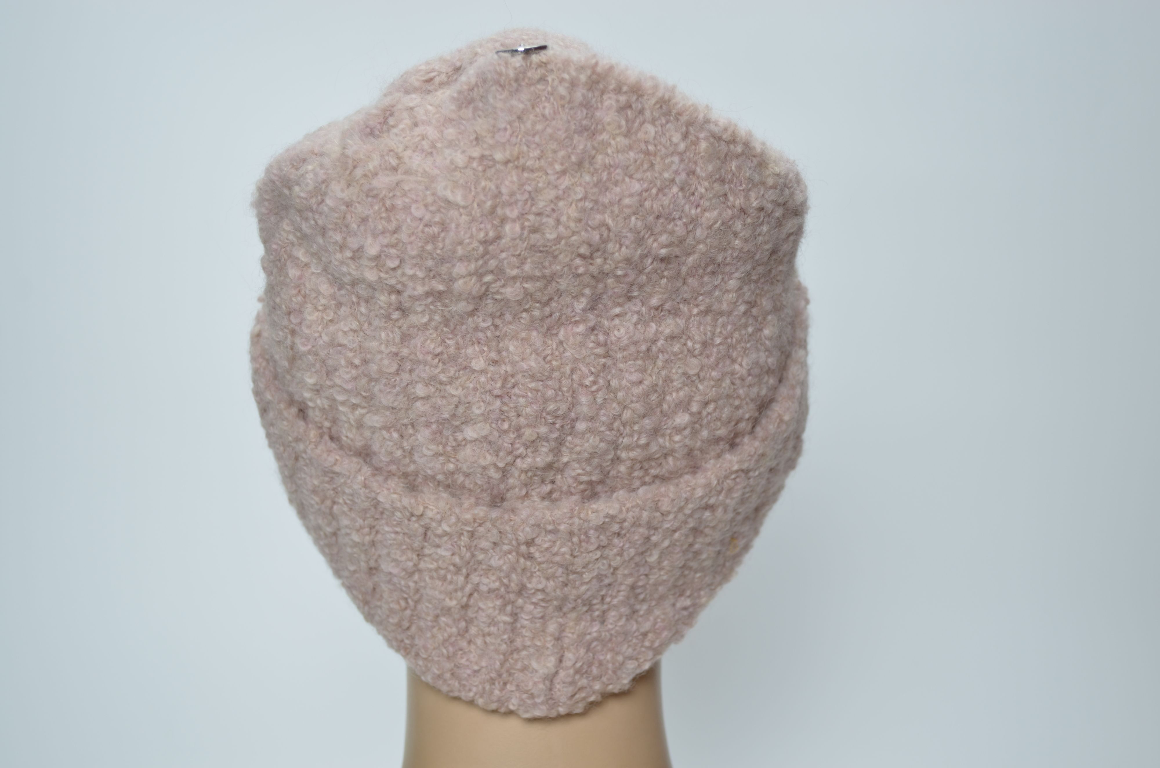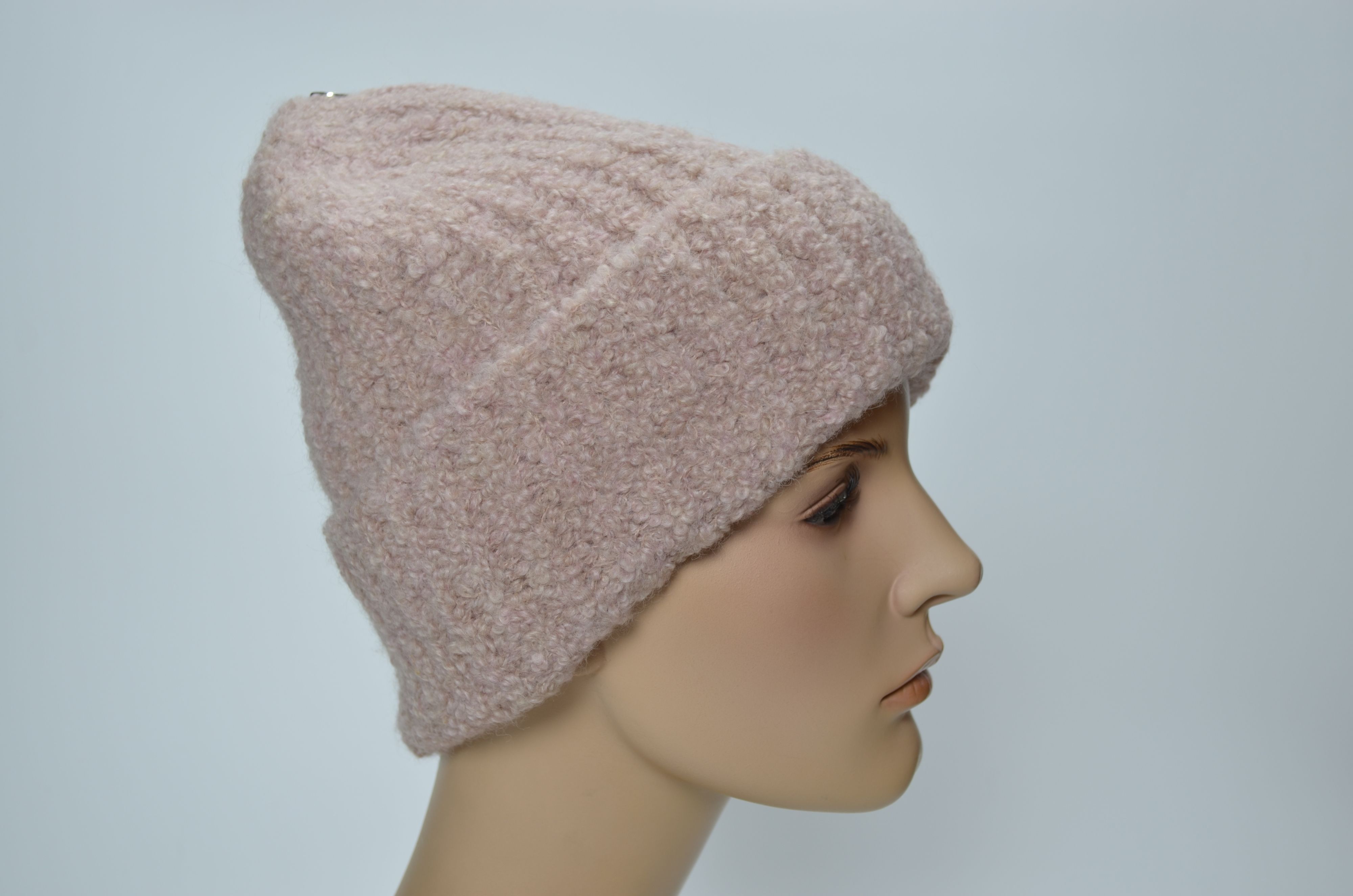 Итальянская розовая зимняя вязаная шапка из альпака Vizio 1439 CRYO с отворотом коллекция головных уборов Италии Визио осень зима 2024 - 2025