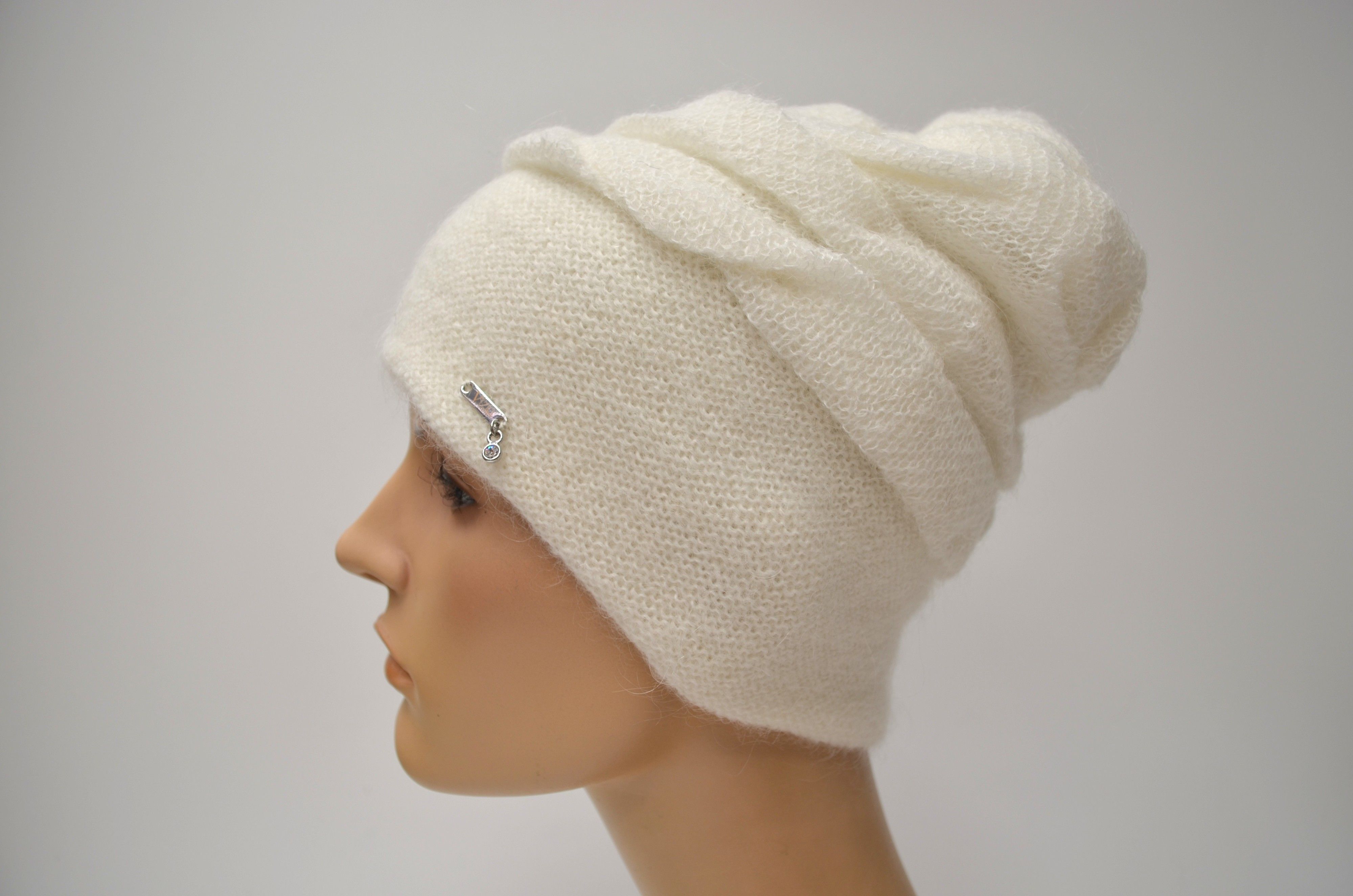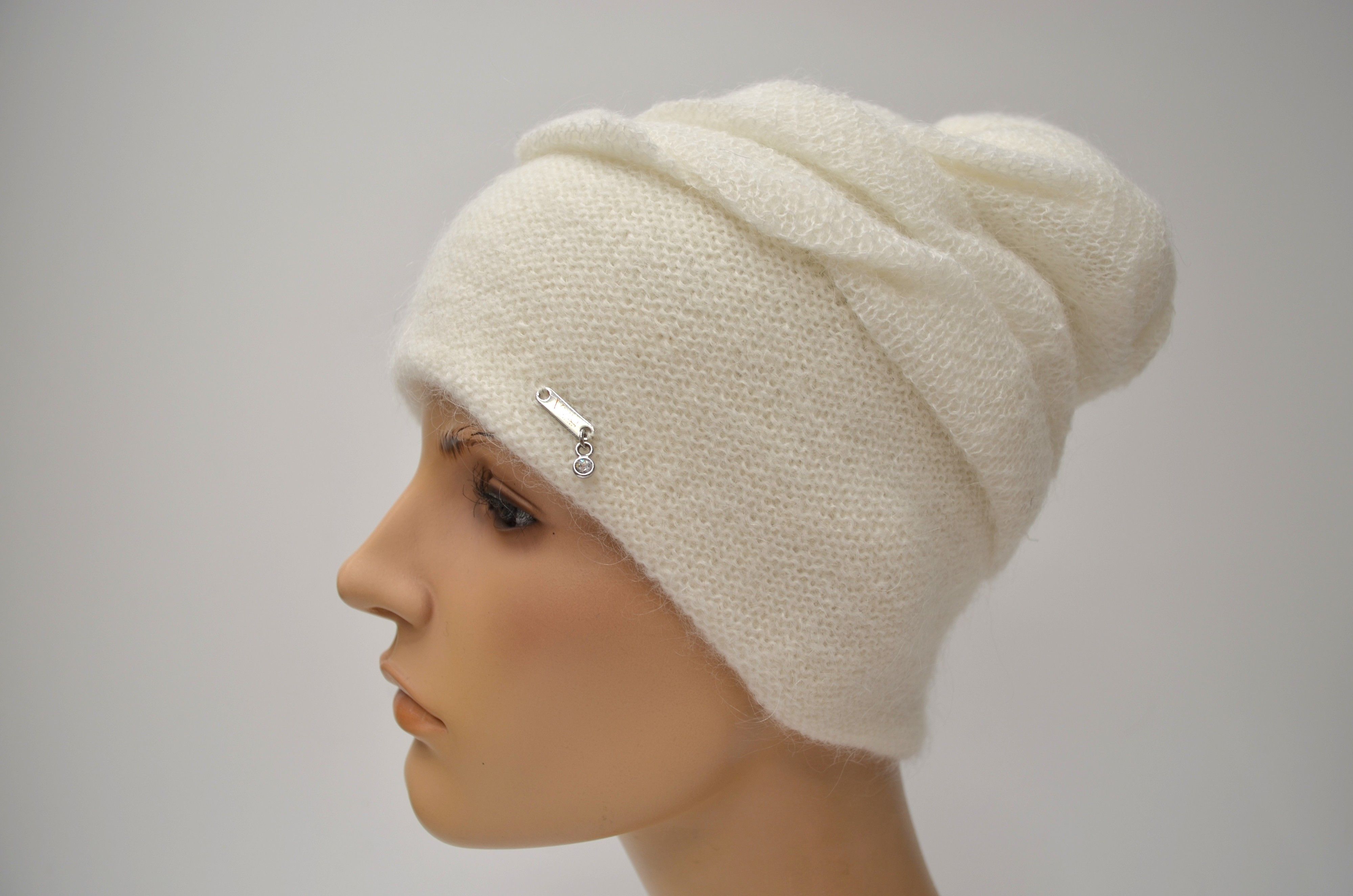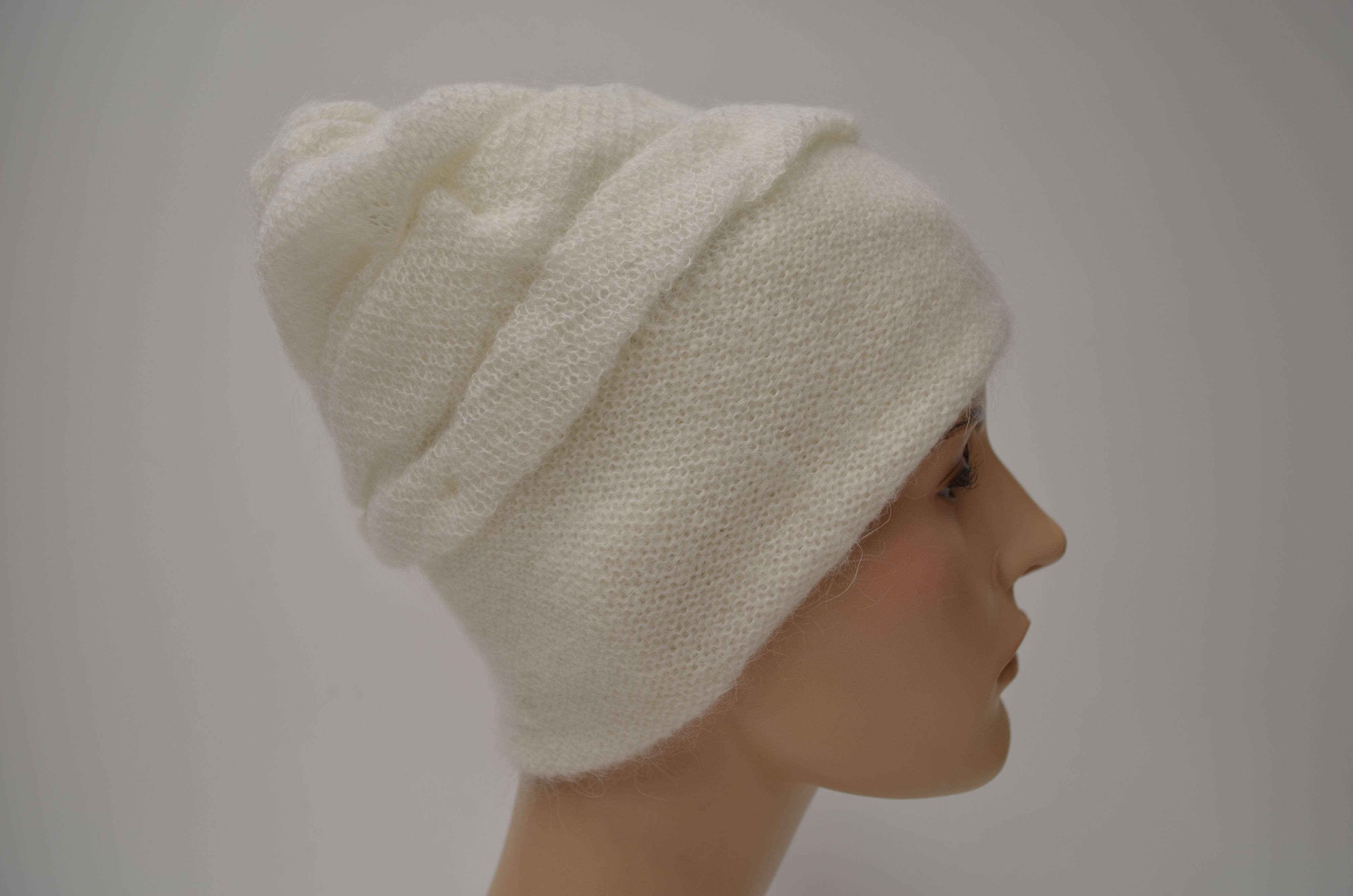 Женская вязаная шапка белого цвета с вязаным подкладом