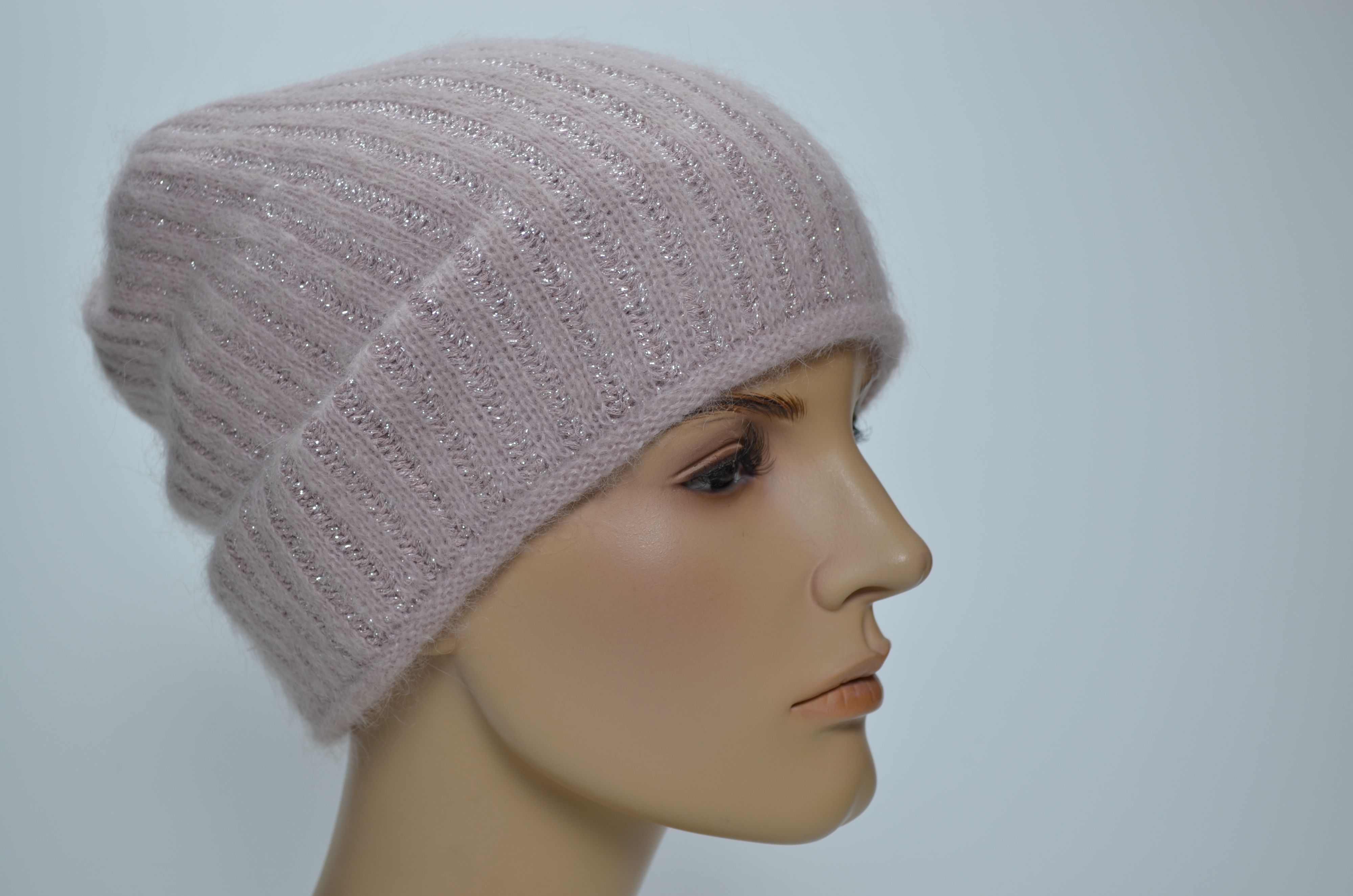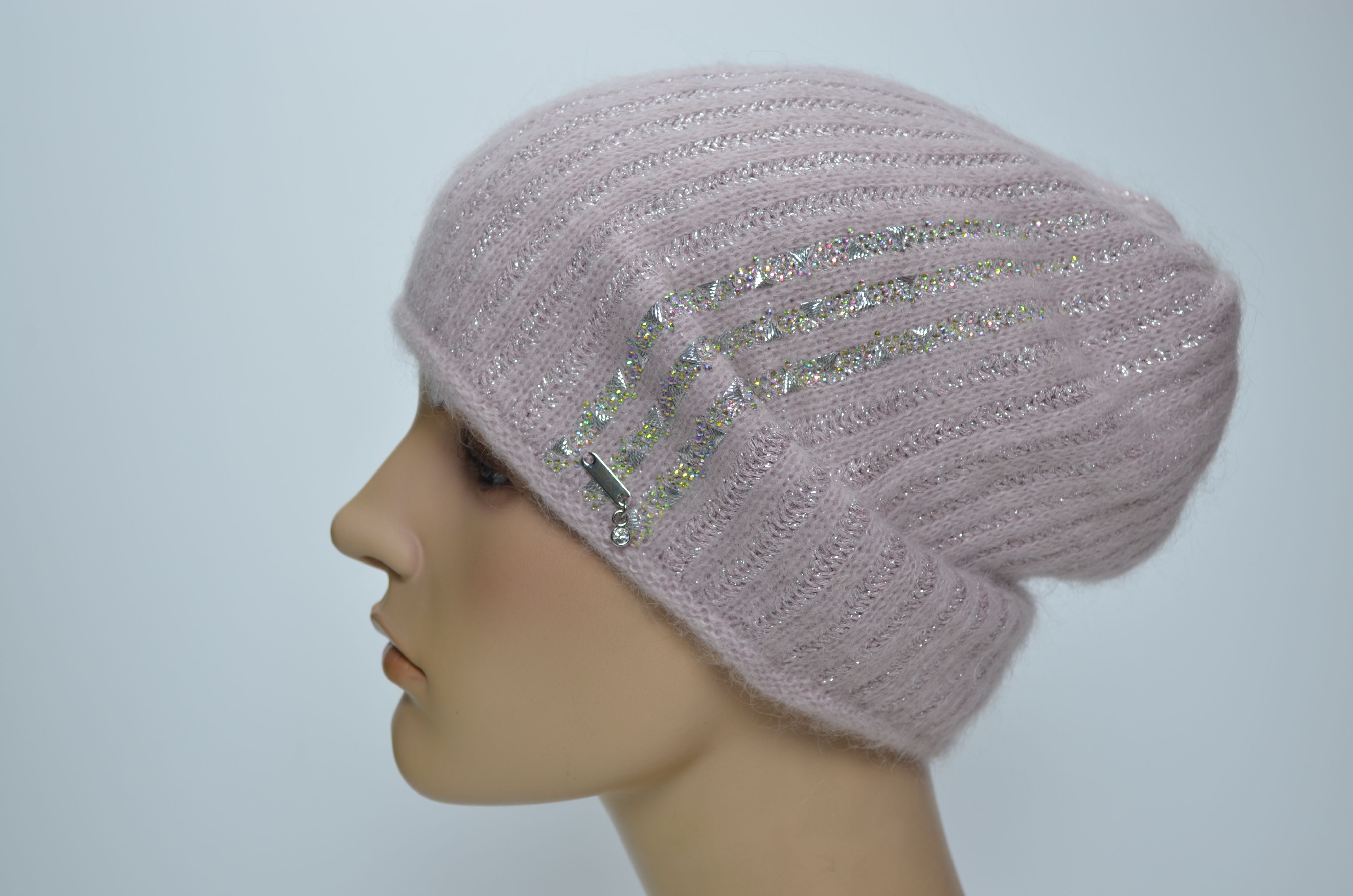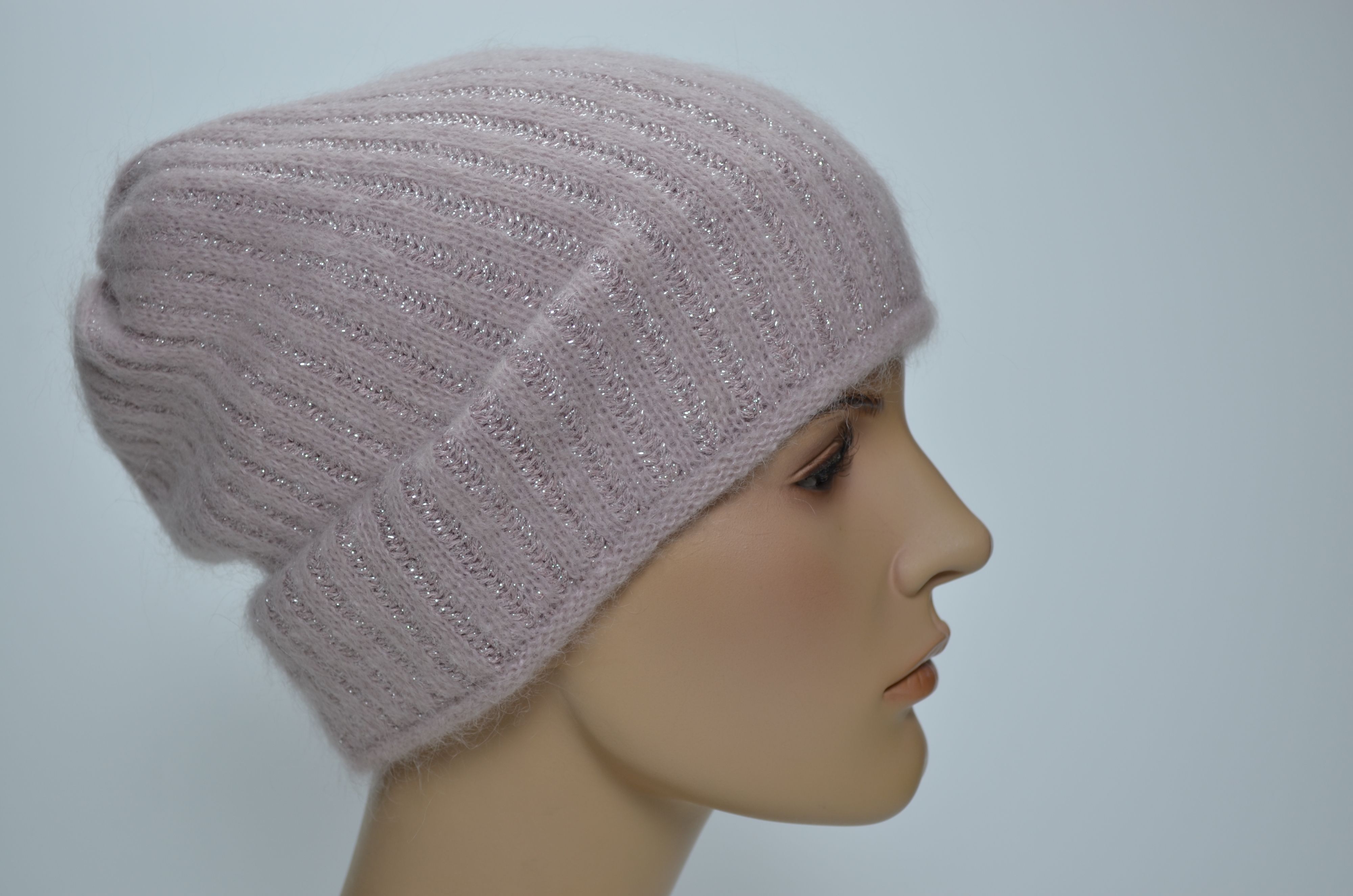 Женская розовая вязаная шапка зимняя из мохера и шерсти альпака осень зима 2024 - 2025