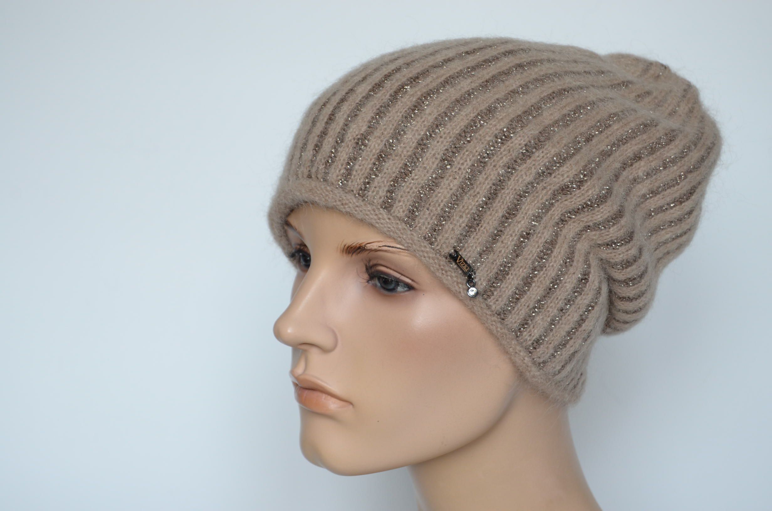 Светло - коричневого горчичного цвета вязаная шапка зимняя женская Vizio Италия SS 1000 CL новая коллекция зимних шапок бренда головных уборов Италии Vizio Collezione зима 2024 купить в интернет