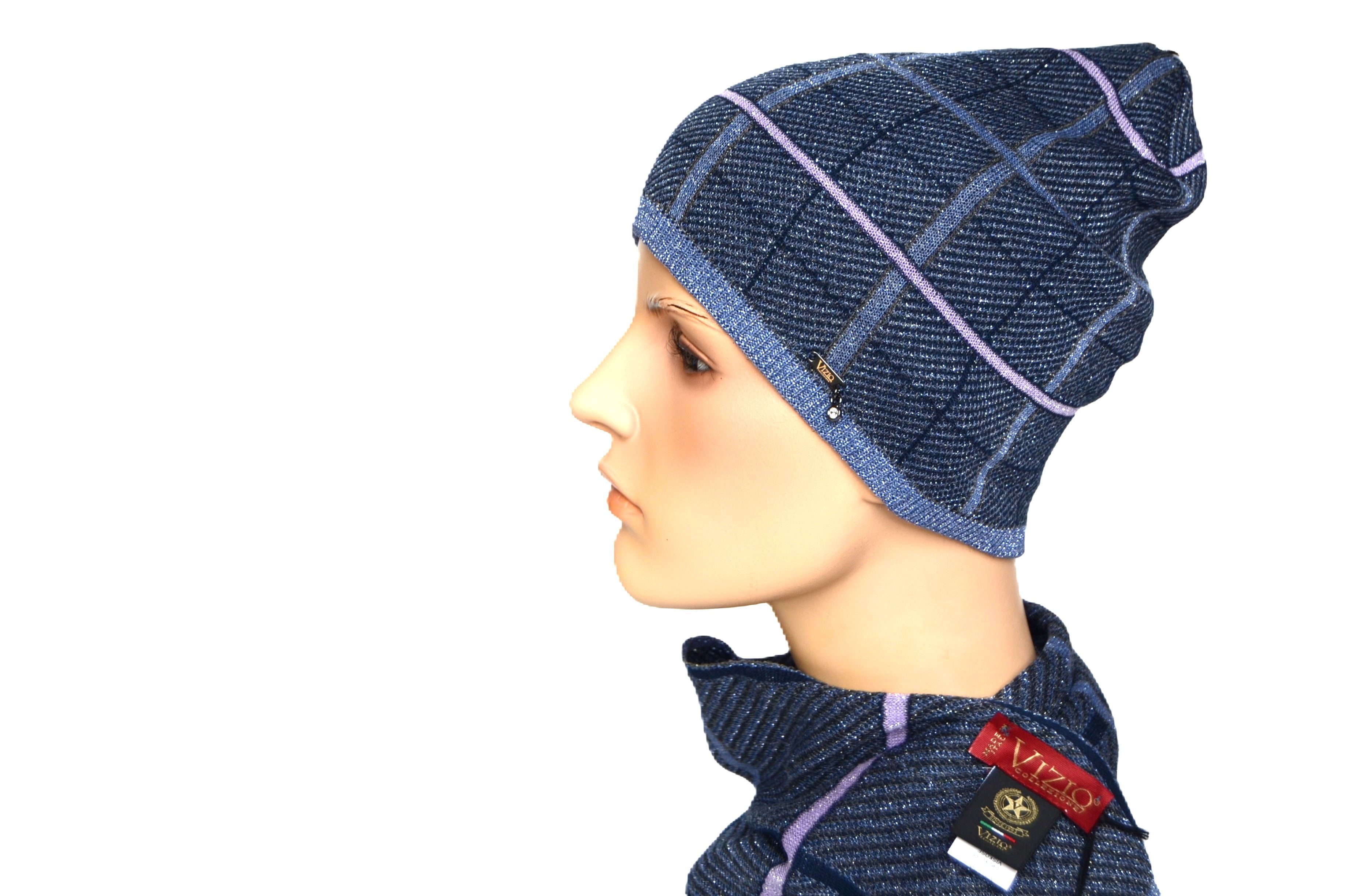 Женский итальянский шарф в клетку вязаный из хлопка Vizio 1209 SS синего цвета. Купить итальянские шарфы для женщин вы можете в интернет магазине одежды и головных уборов Италии с доставкой по Москве и России