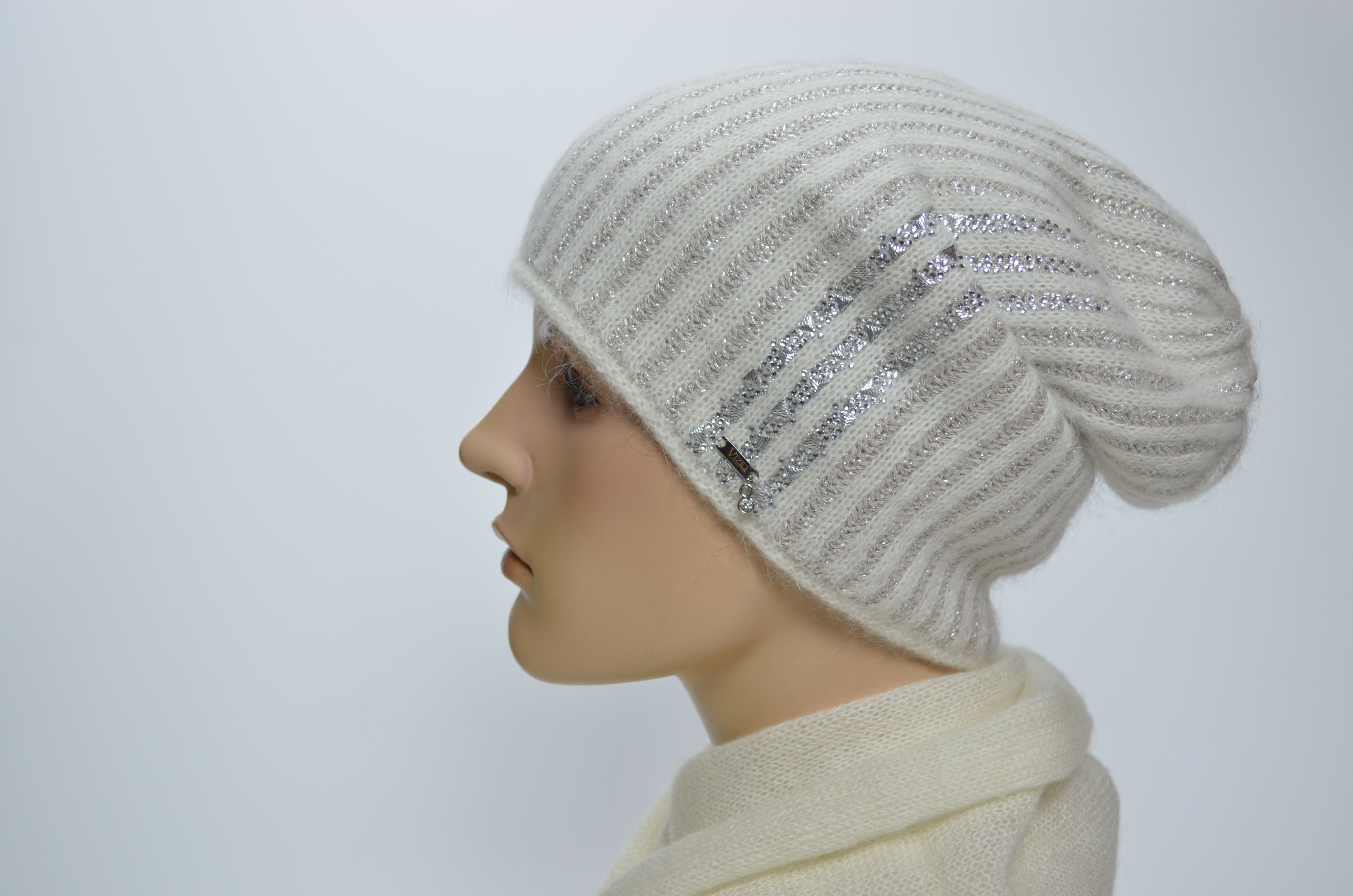 Вязаный итальянский шарф белого цвета Vizio 1300 S коллекция зимних итальянских шарфов и головных уборов Vizio Collezione зима 2024 - 2025