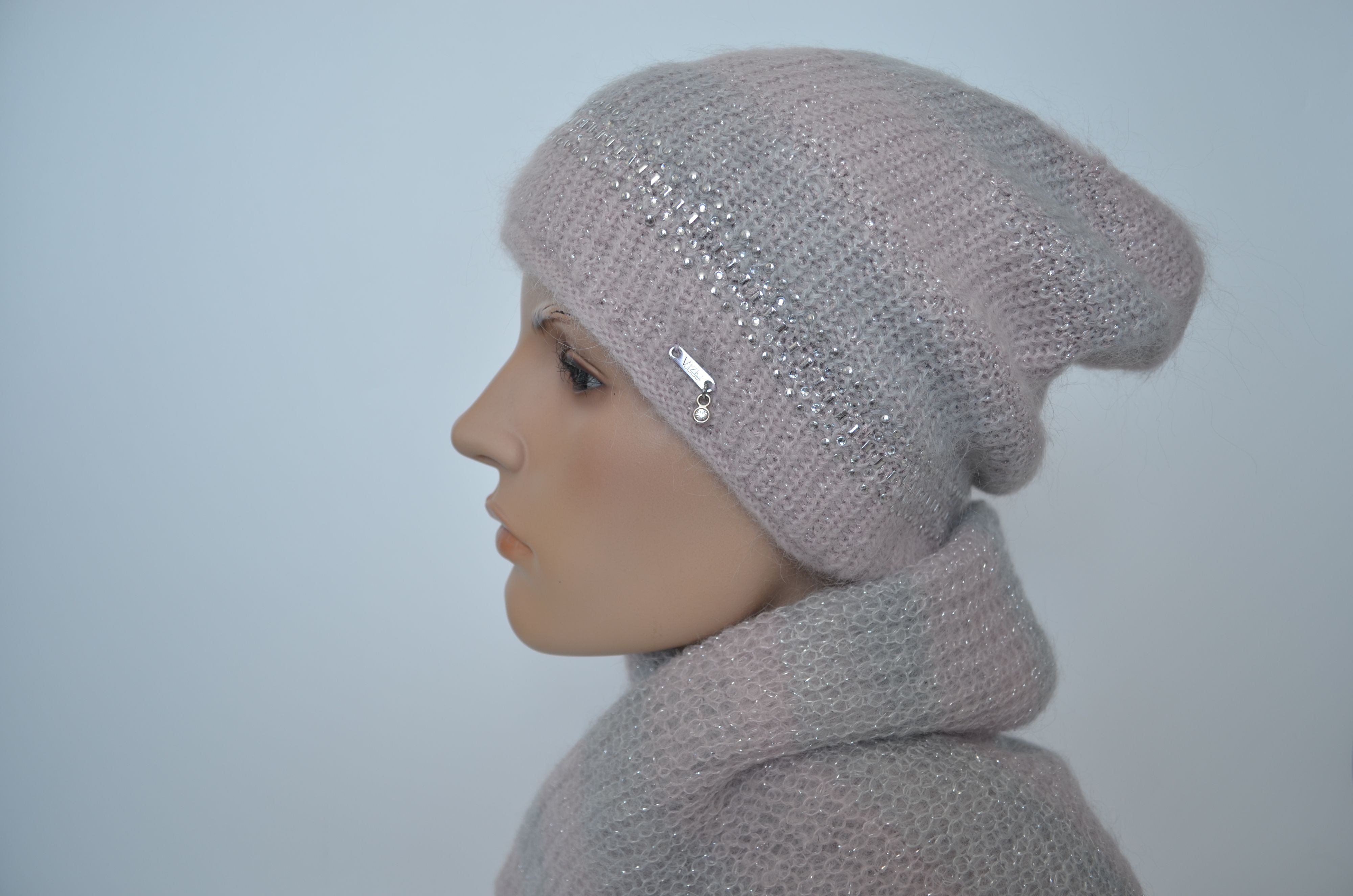 Вязаный шарф палантин Италия розового цвета Vizio 1609 SSX коллекция зимних итальянских палантинов и головных уборов Vizio Collezione зима 2025 - 2026