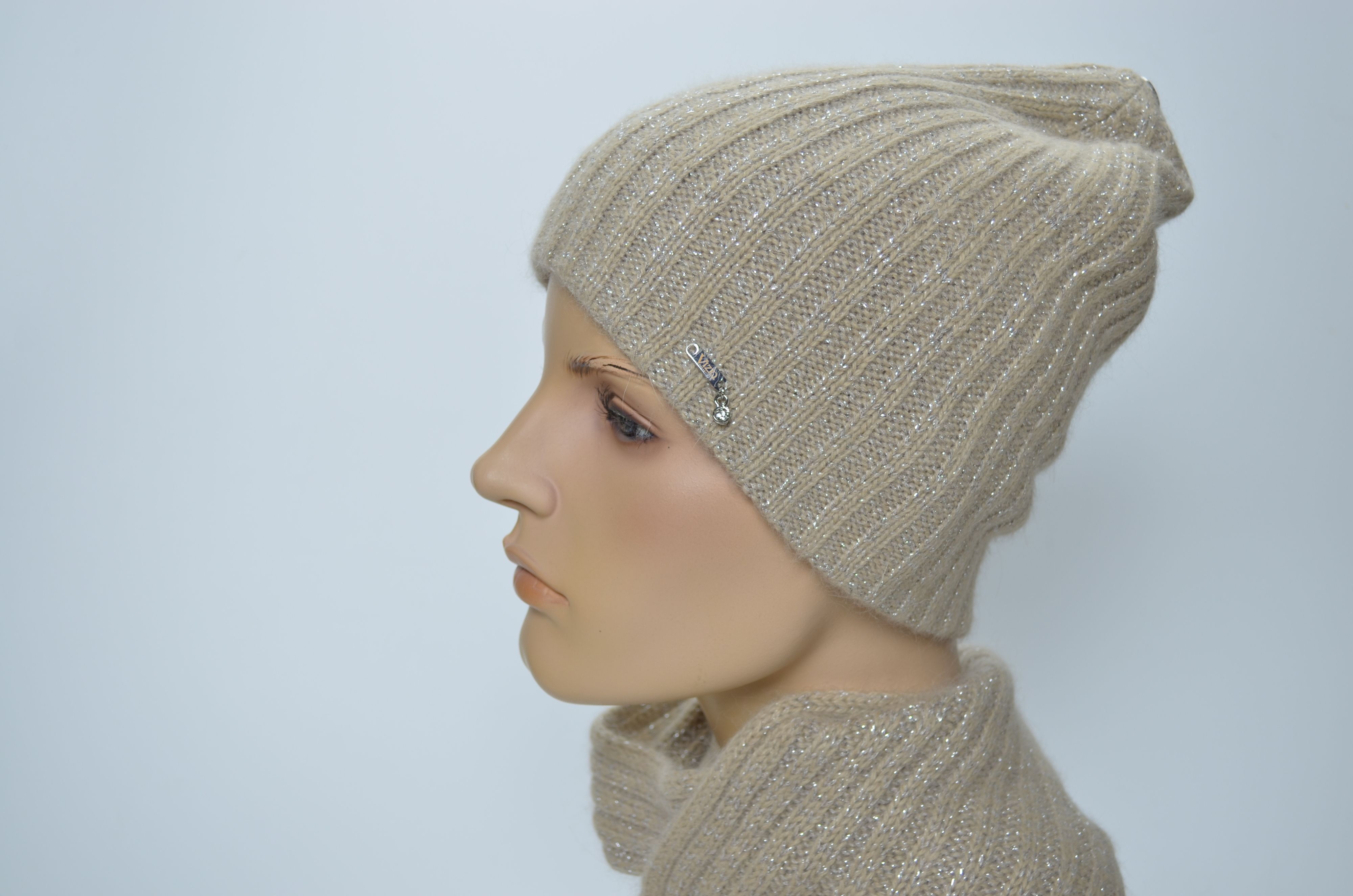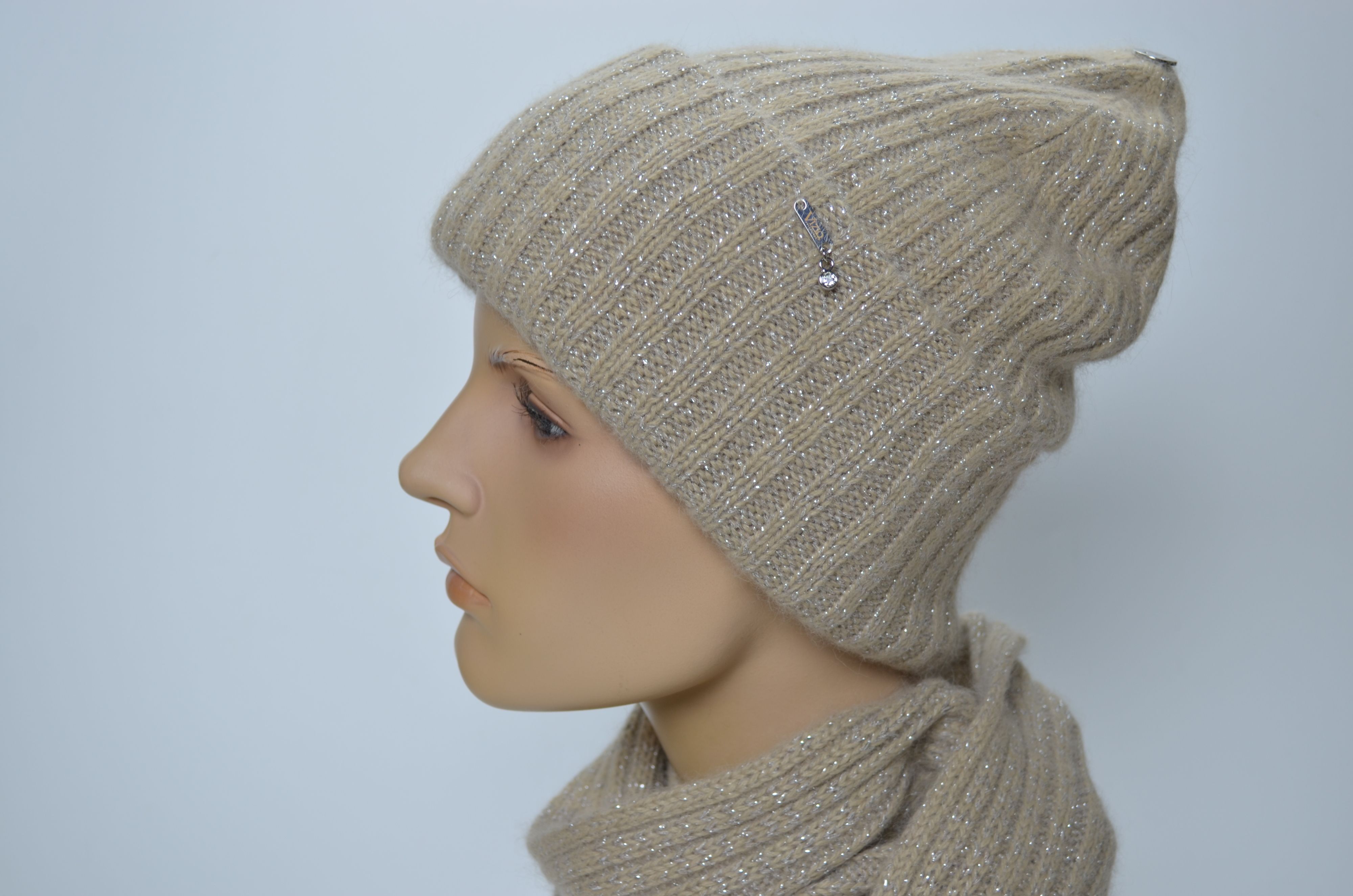 Вязаный бежевый шарф из ангоры зимний Италия Визио 203 S купить из коллекции шарфов и головных уборов из ангоры с доставкой по Москве и России