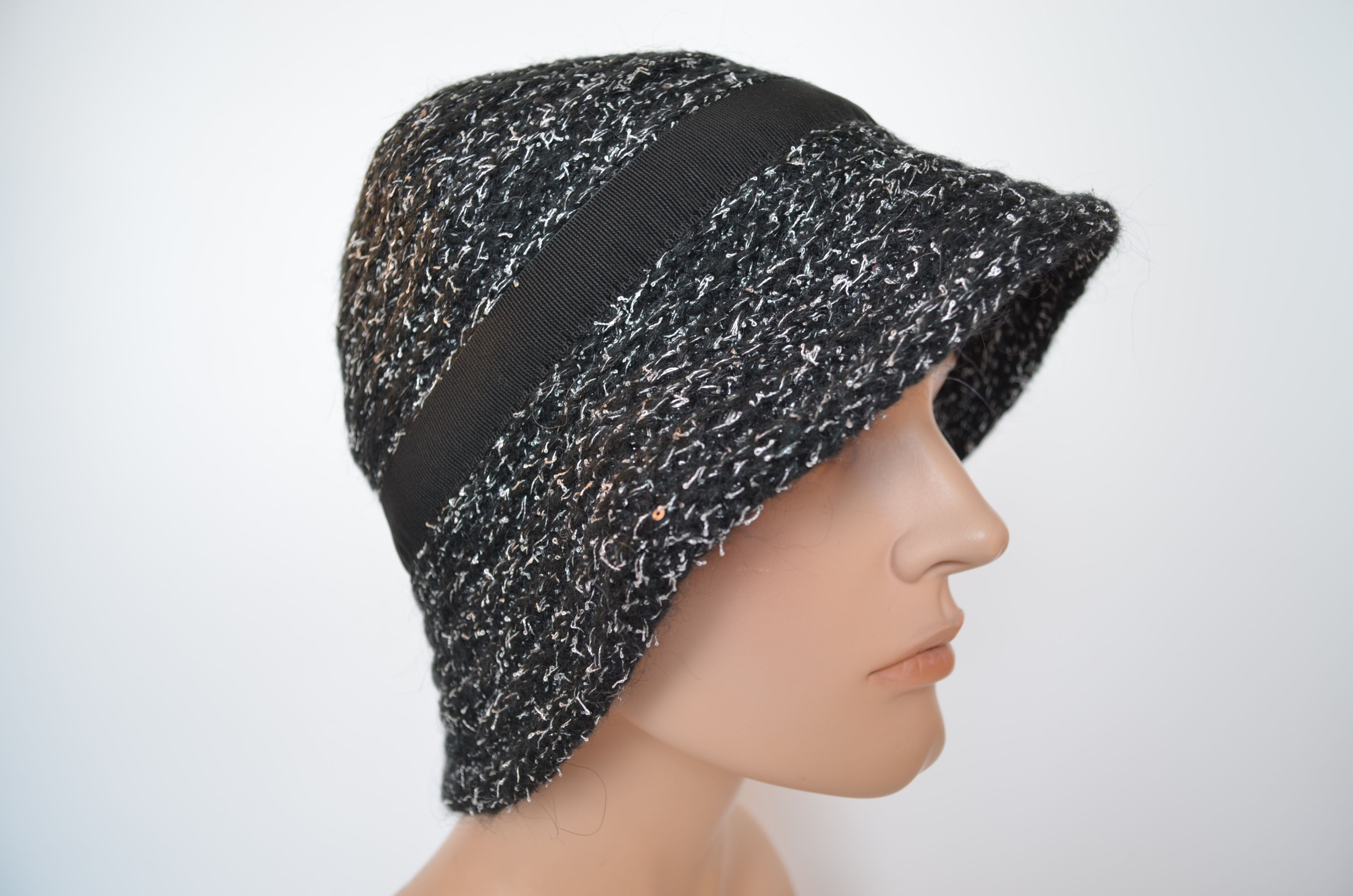 Зимняя черная вязаная шляпа женская