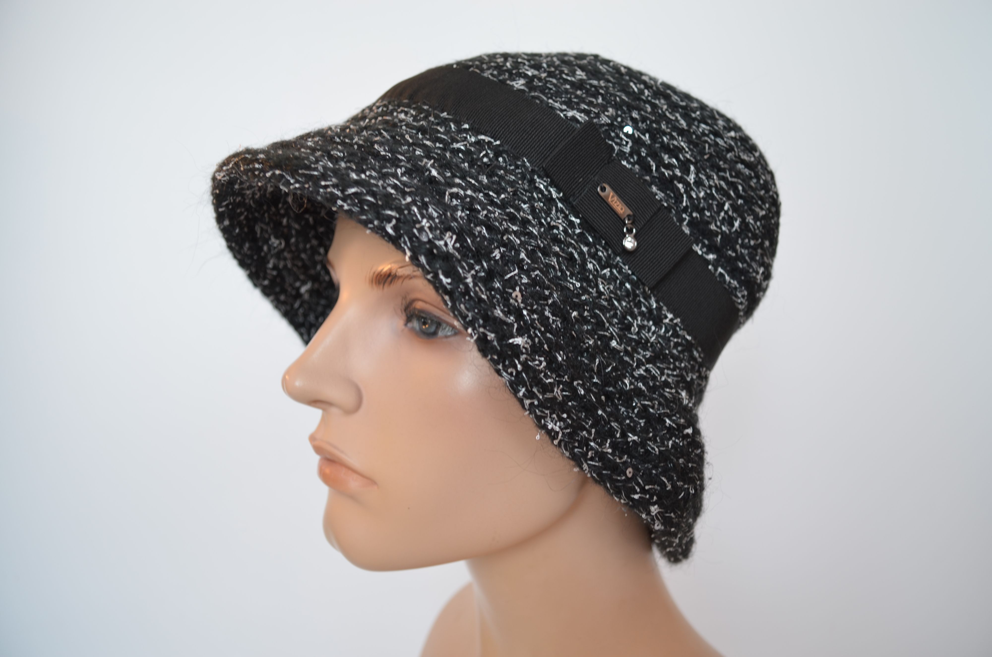 Вязаная зимняя шляпа Италия коллекция головных уборов Vizio Collezione зима 2025 - 2026 модель 1622 FF черного цвета