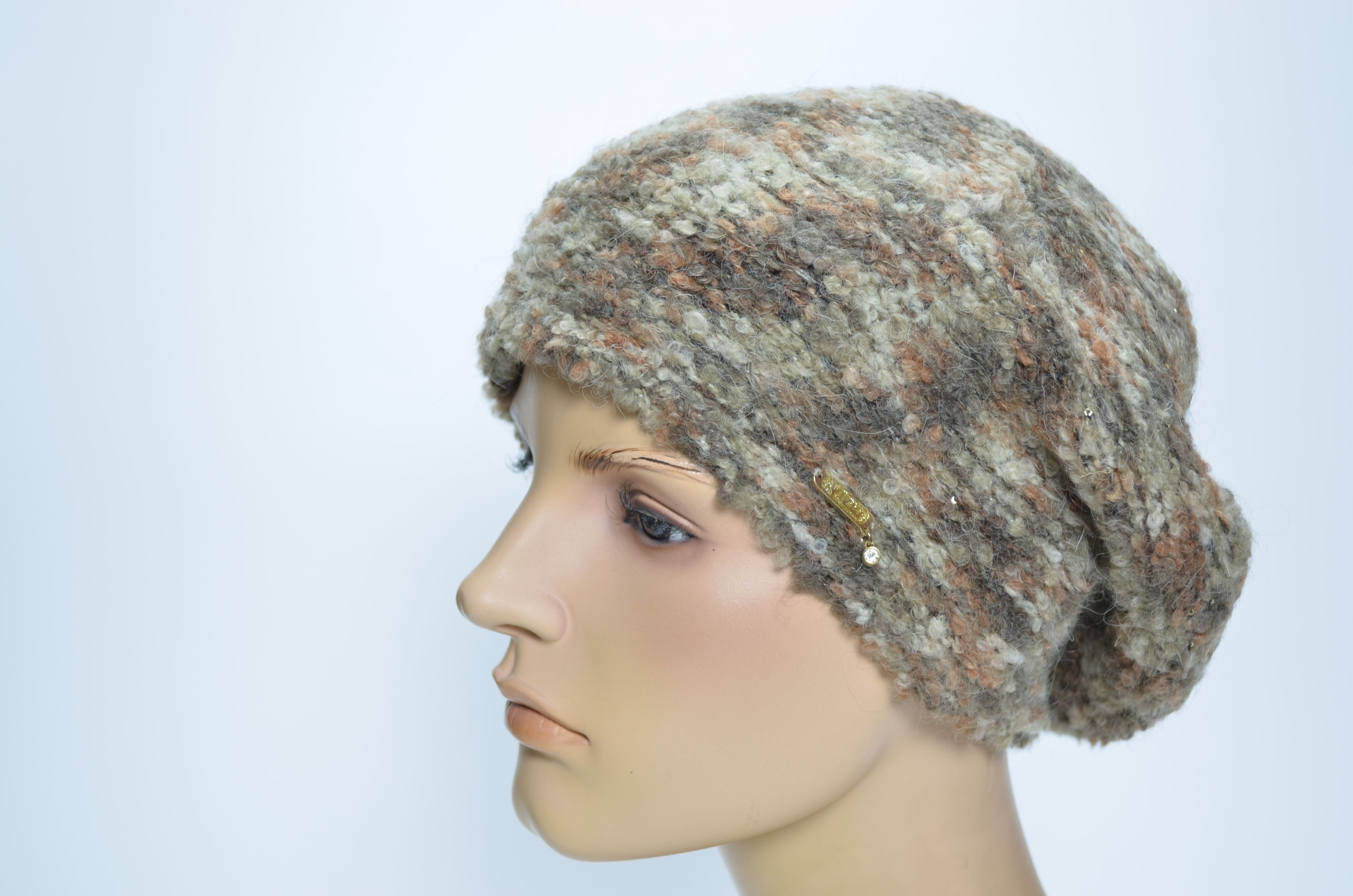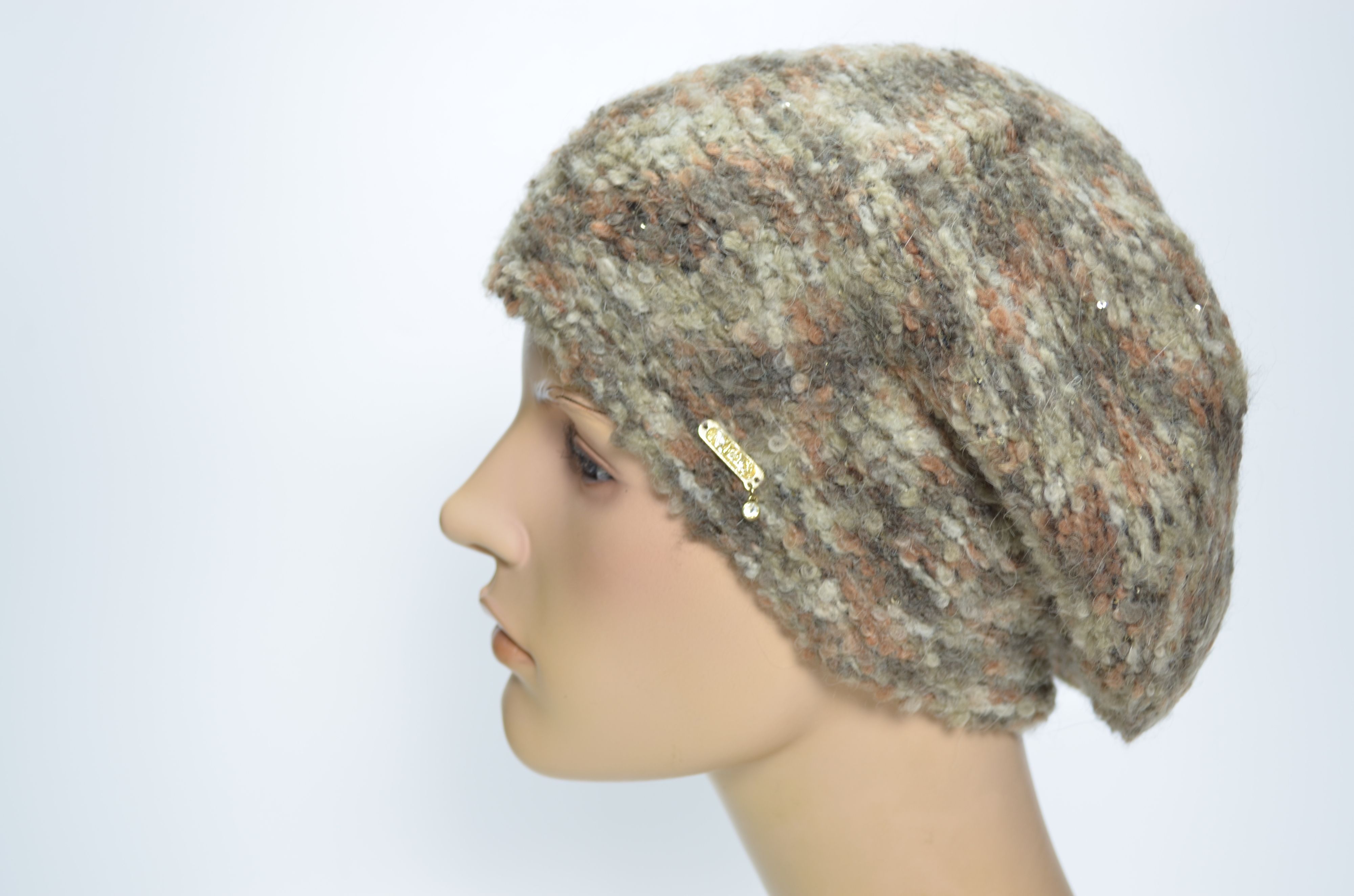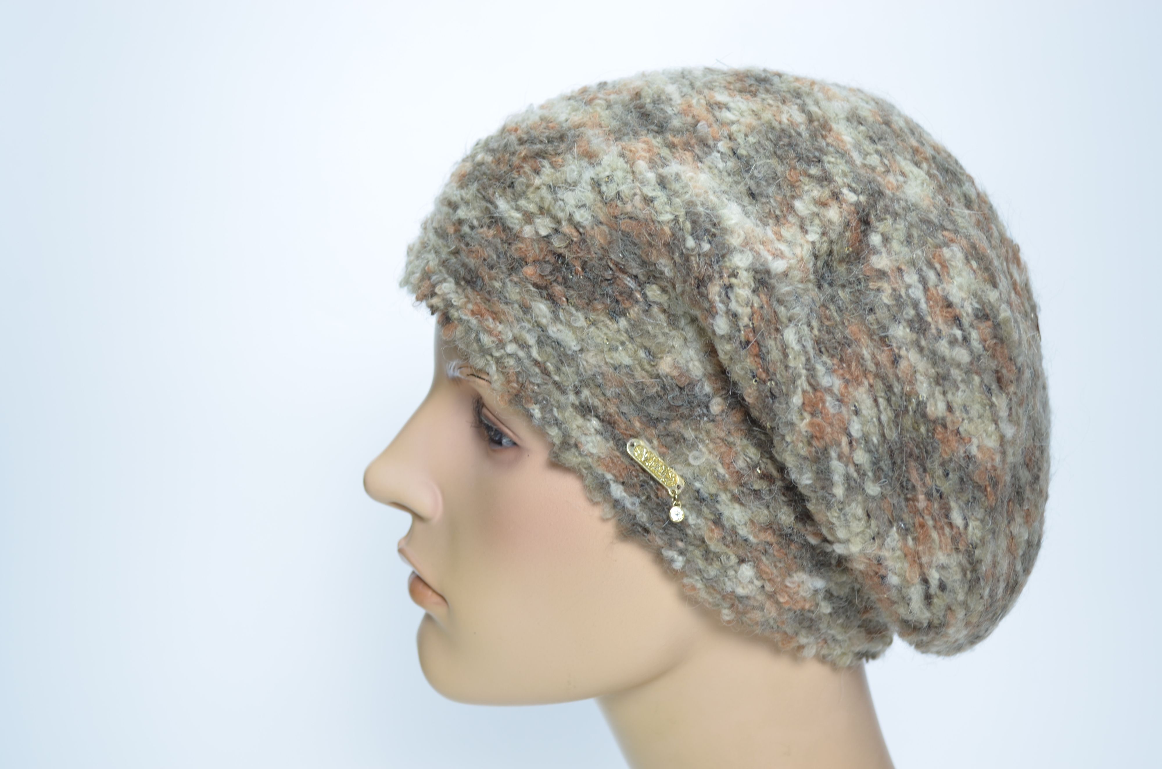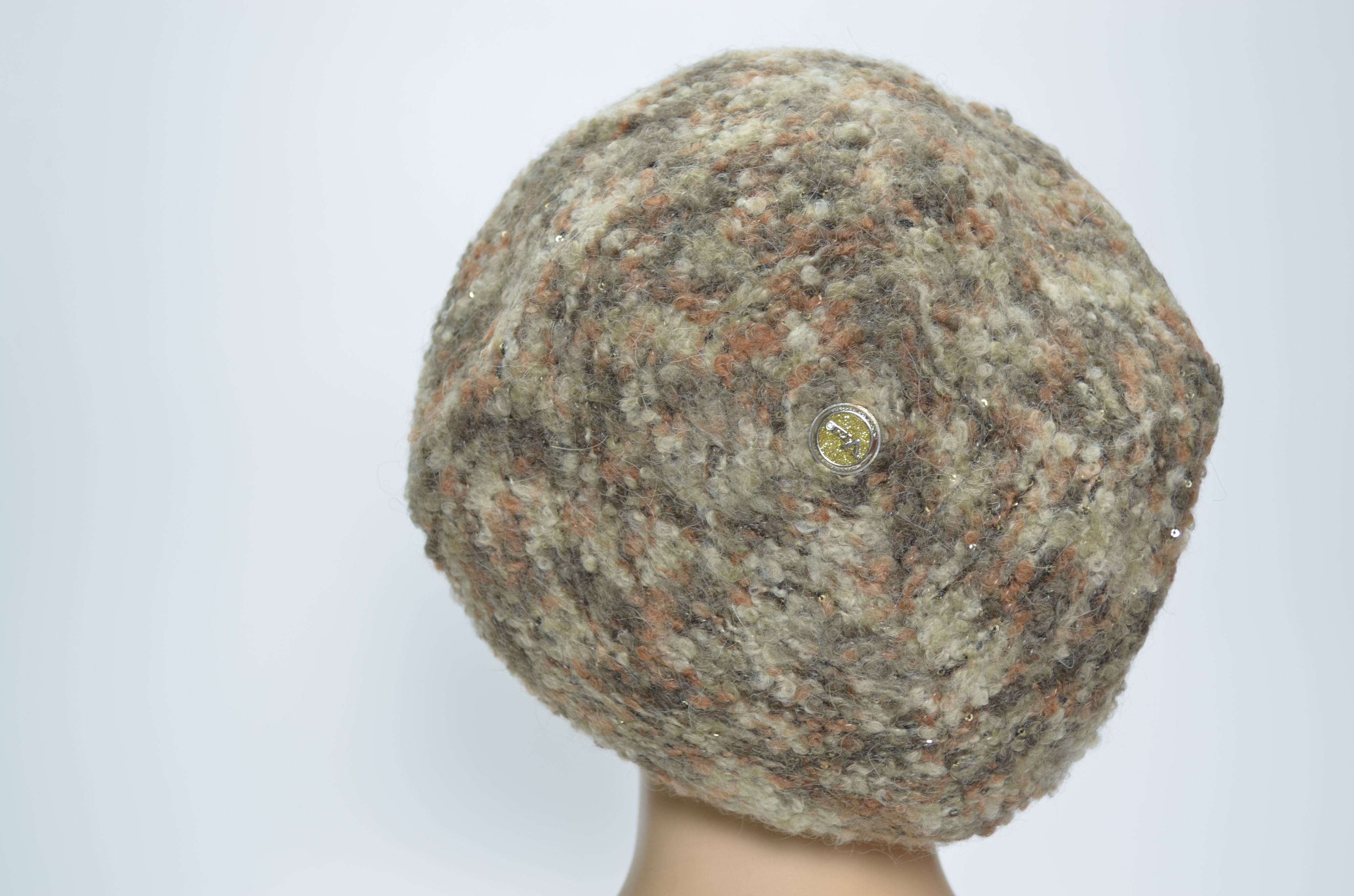 Коричневый берет из разноцветной пряжи шерсти альпака зимний женский осень зима 2024 2025 Vizio Италия SS 1315 купить в интернет магазине итальянских головых уборов Визио
