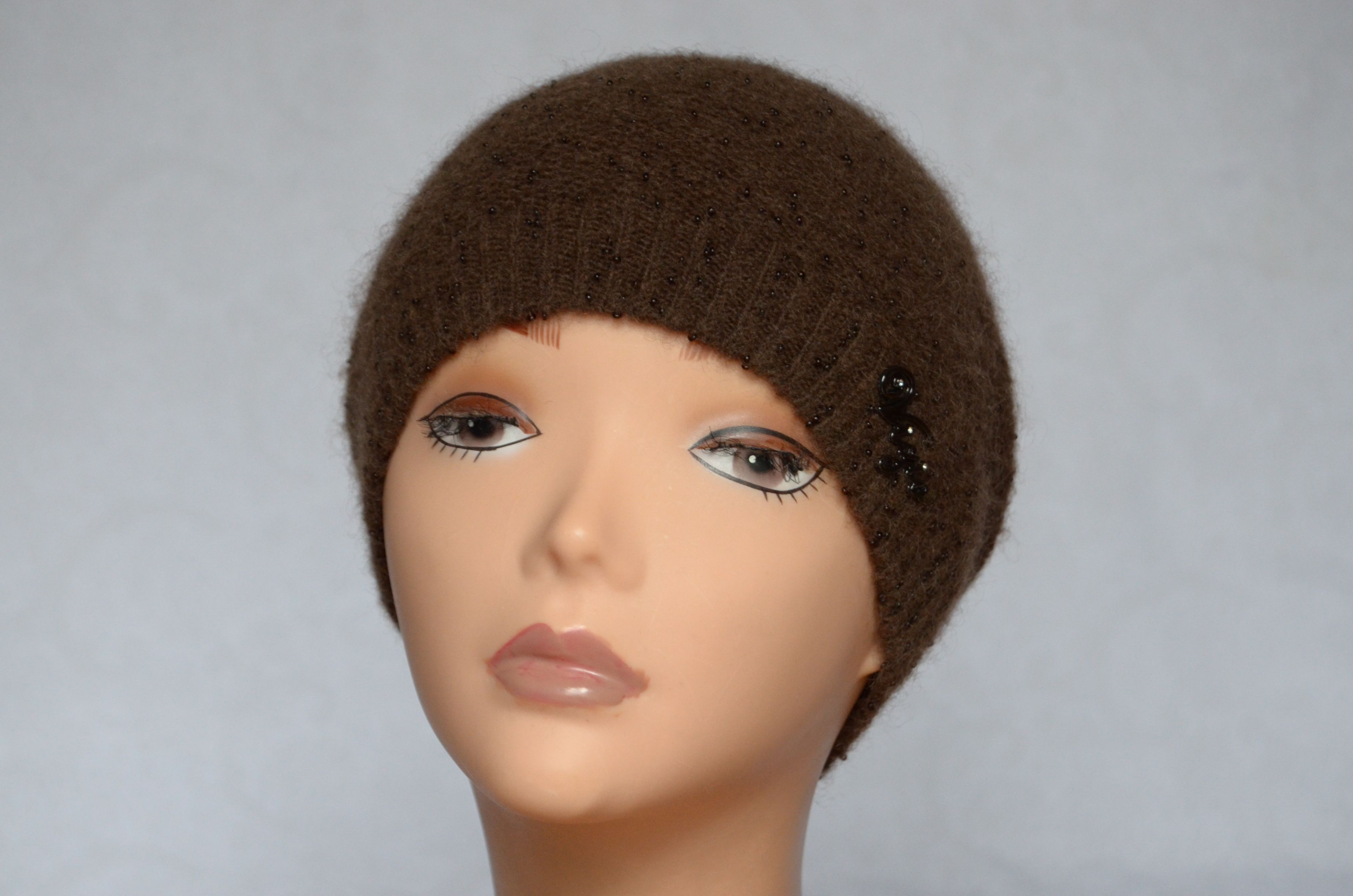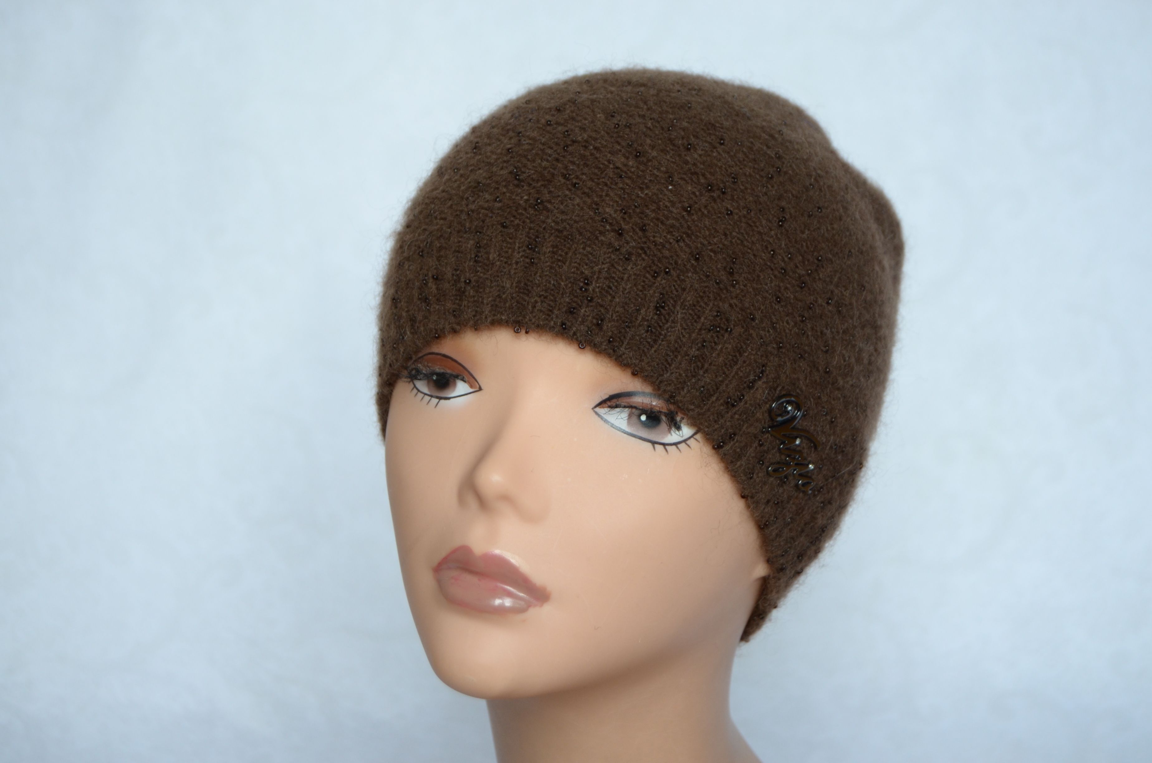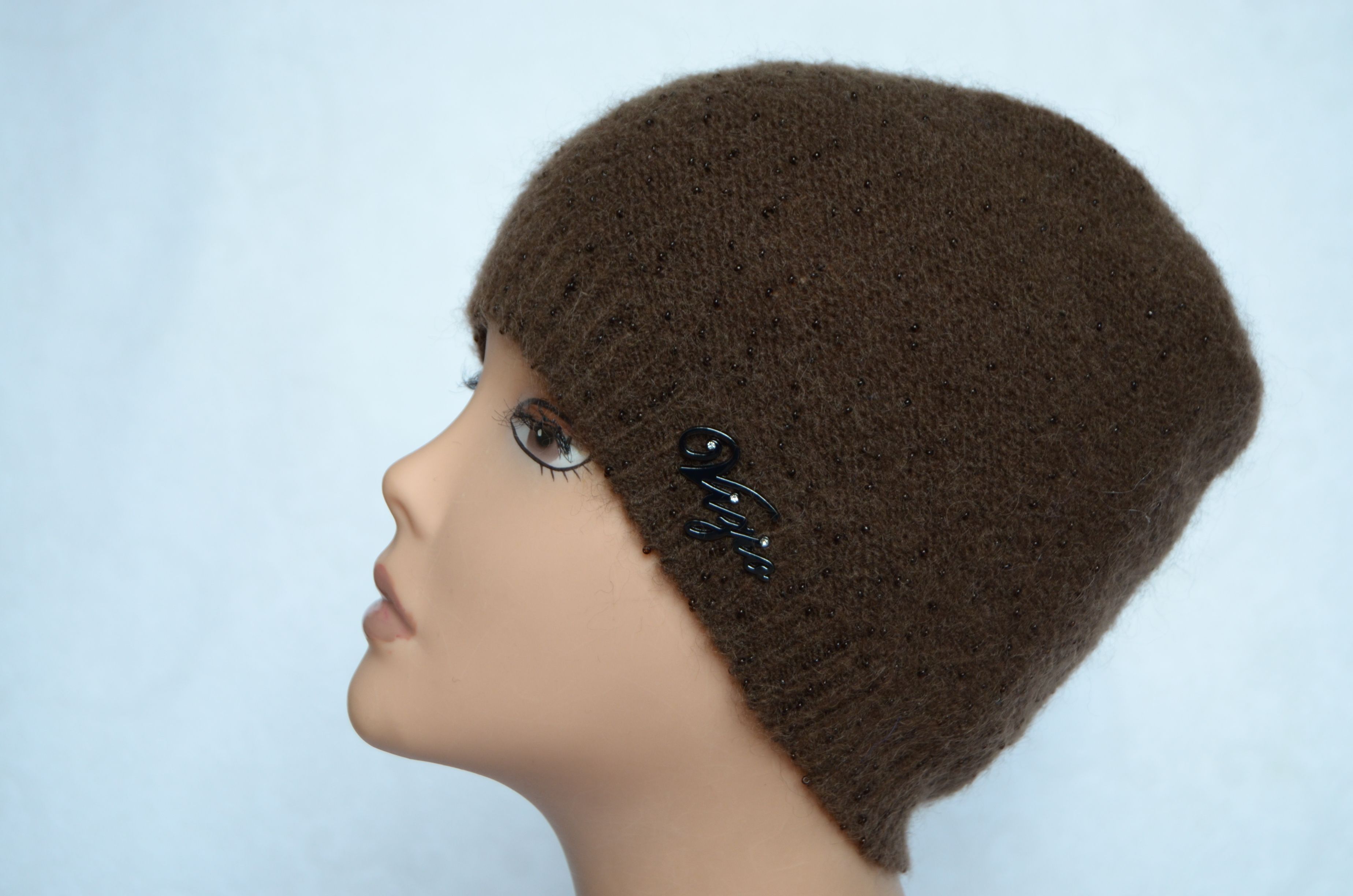 Женская коричневая шапка с бусинками Vizio италия 4528 из коллекции шапок Италии весна - осень - зима