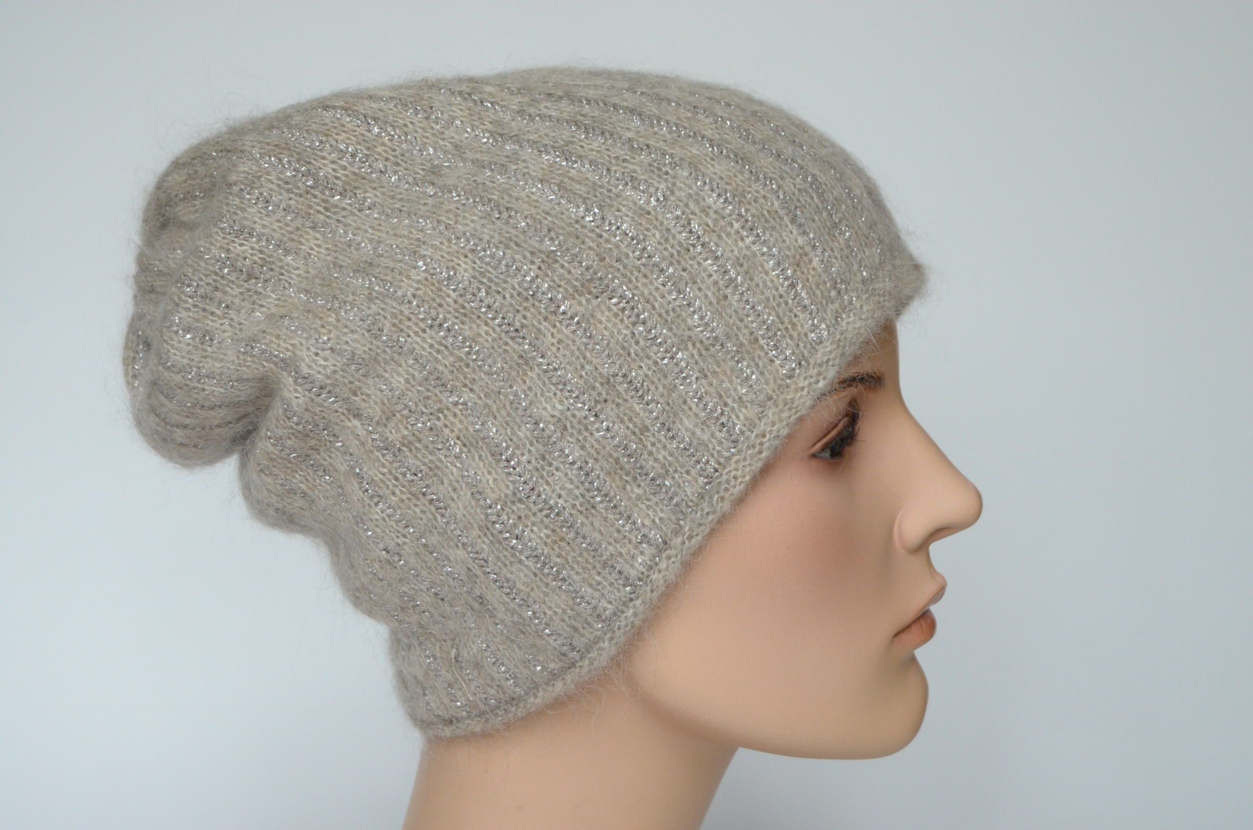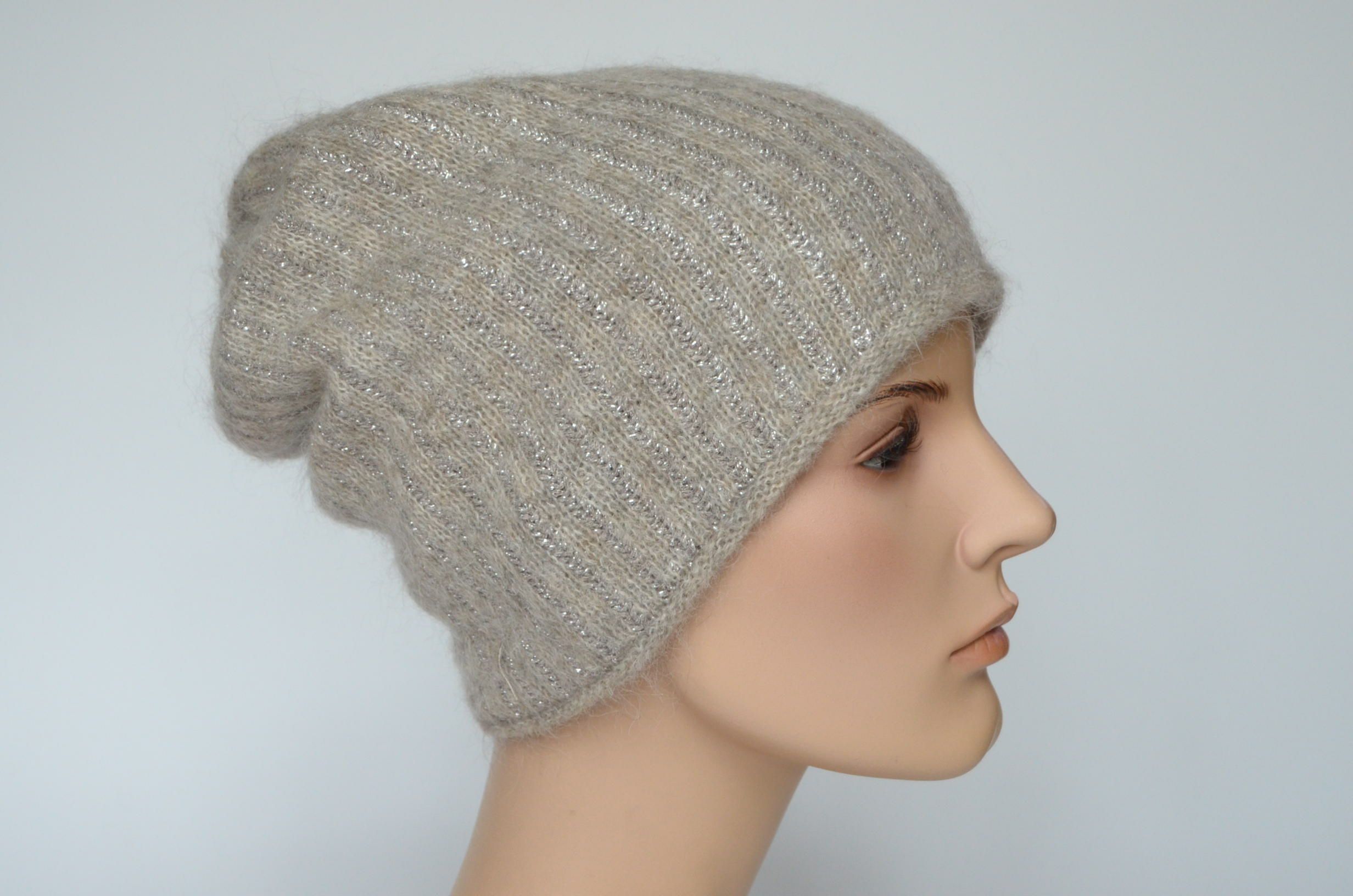 Женская вязаная шапка зимняя из мохера и шерсти альпака