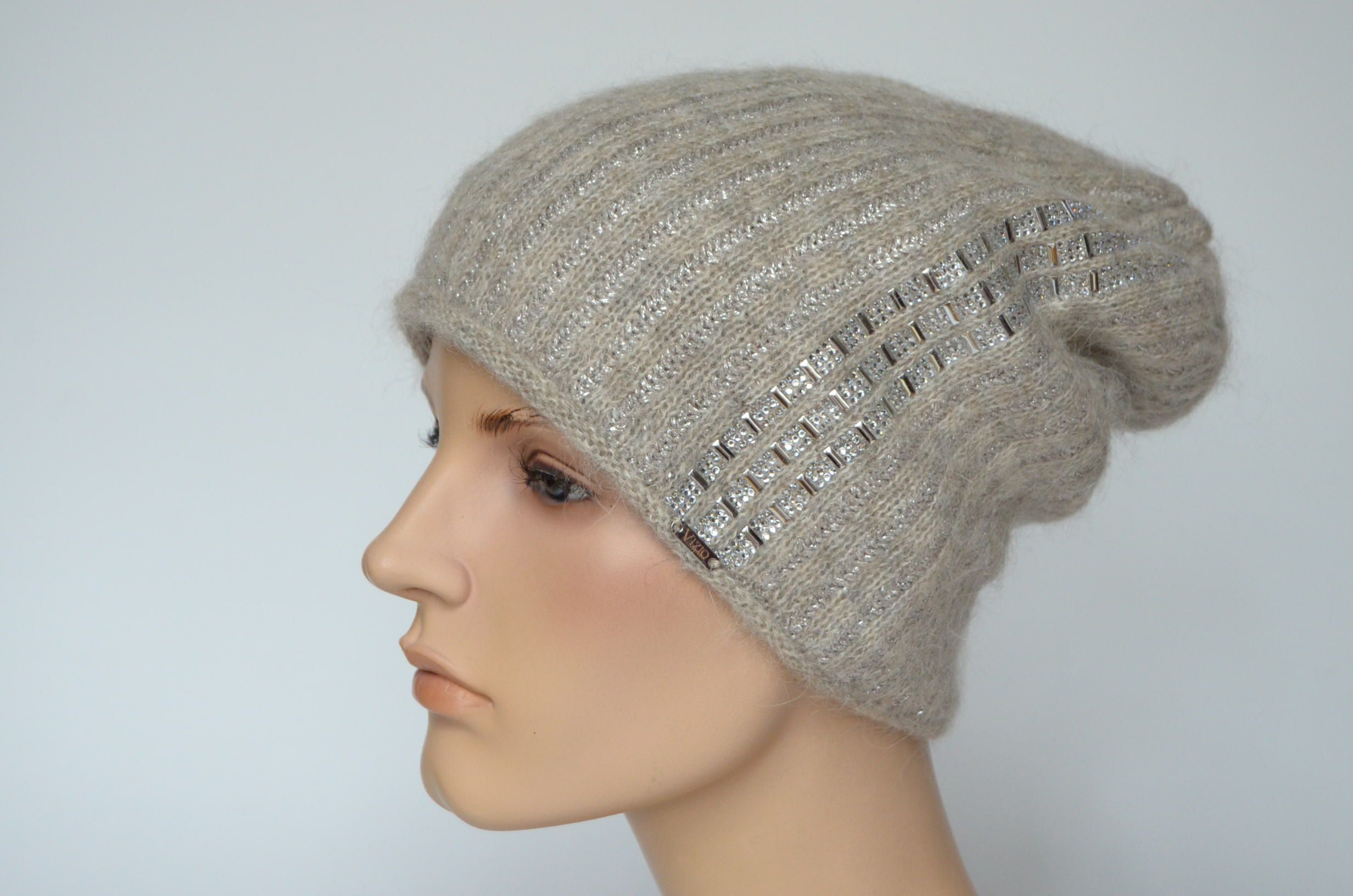 Приобрести женскую бежевую шапку с украшениями Визио Италия зима 2023 - 2024 вы можете в интернет магазине итальянских головных уборов для женщин в Москве и доставкой по России
