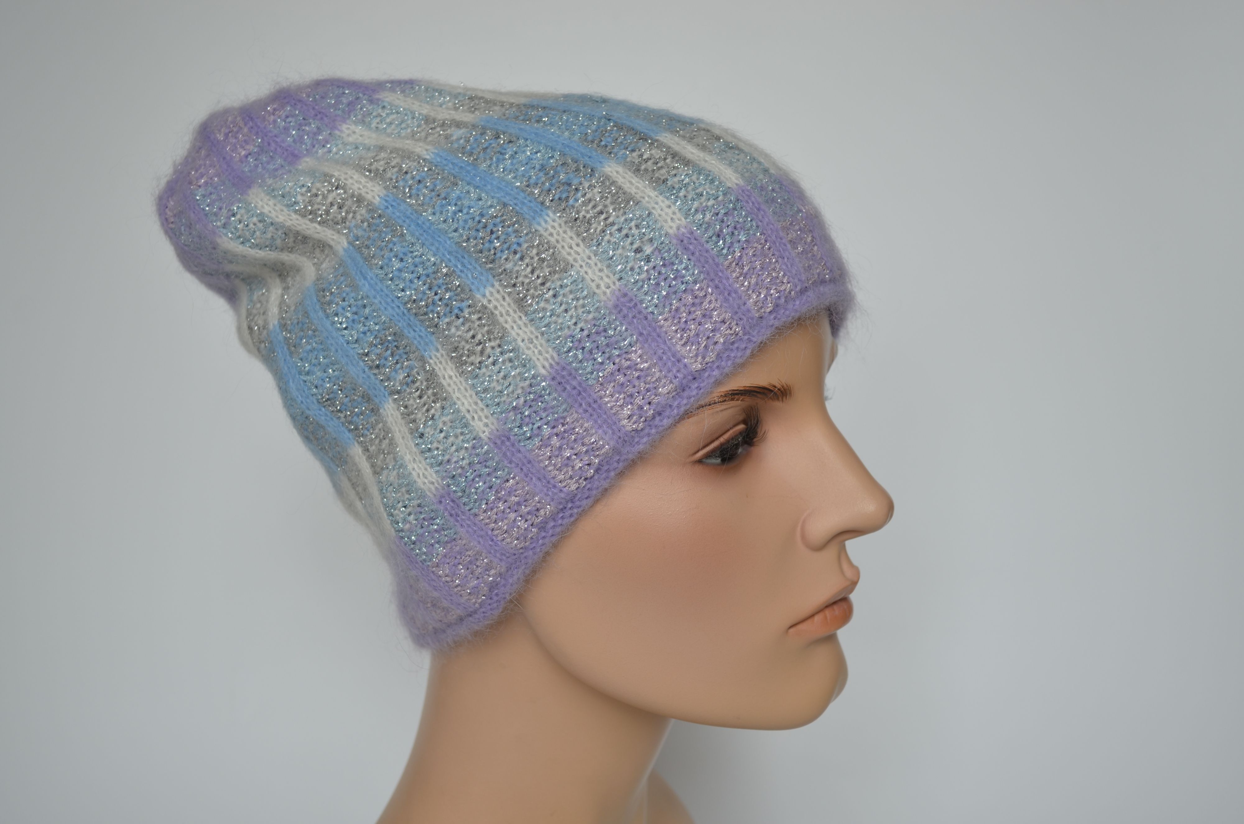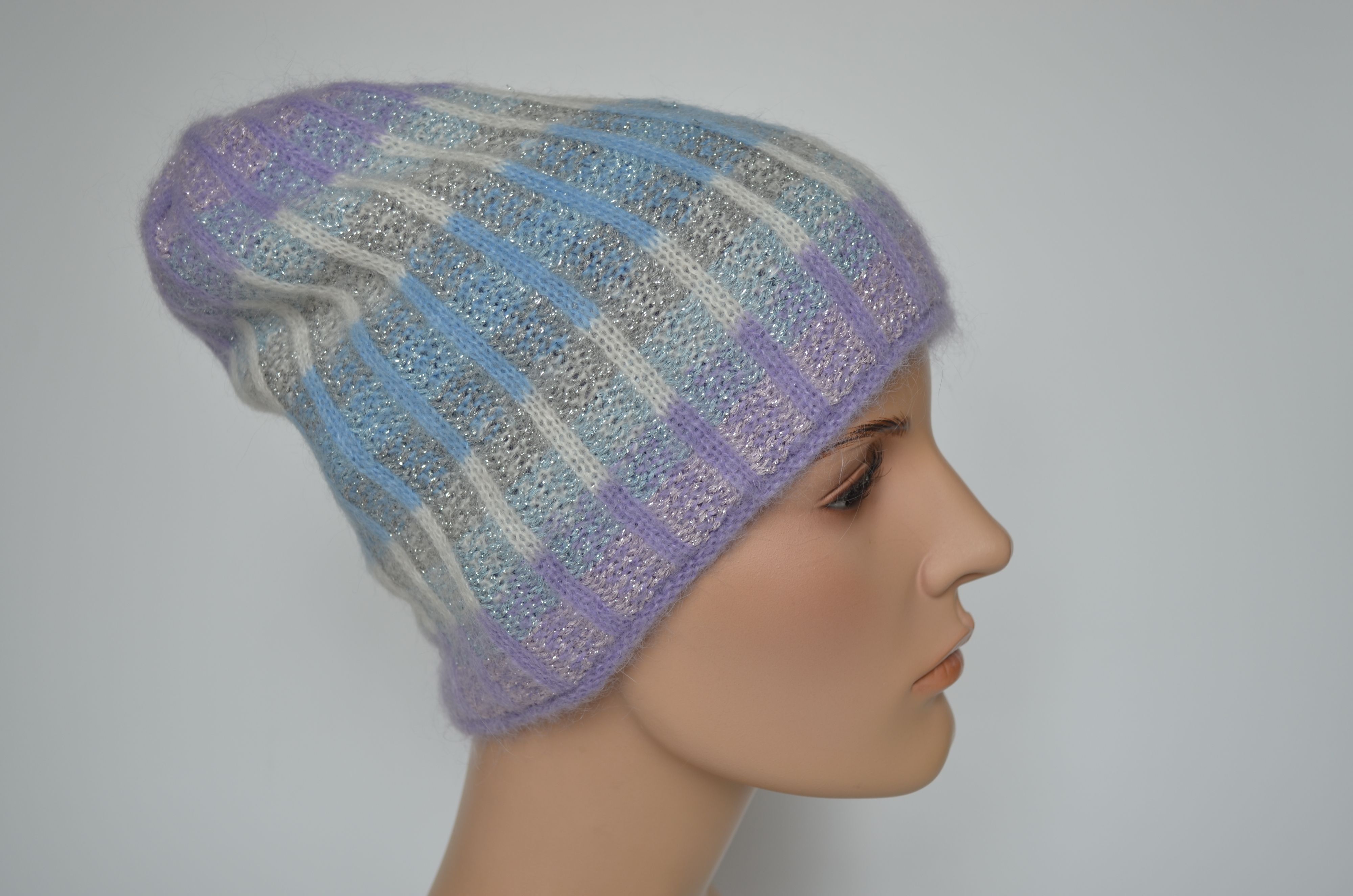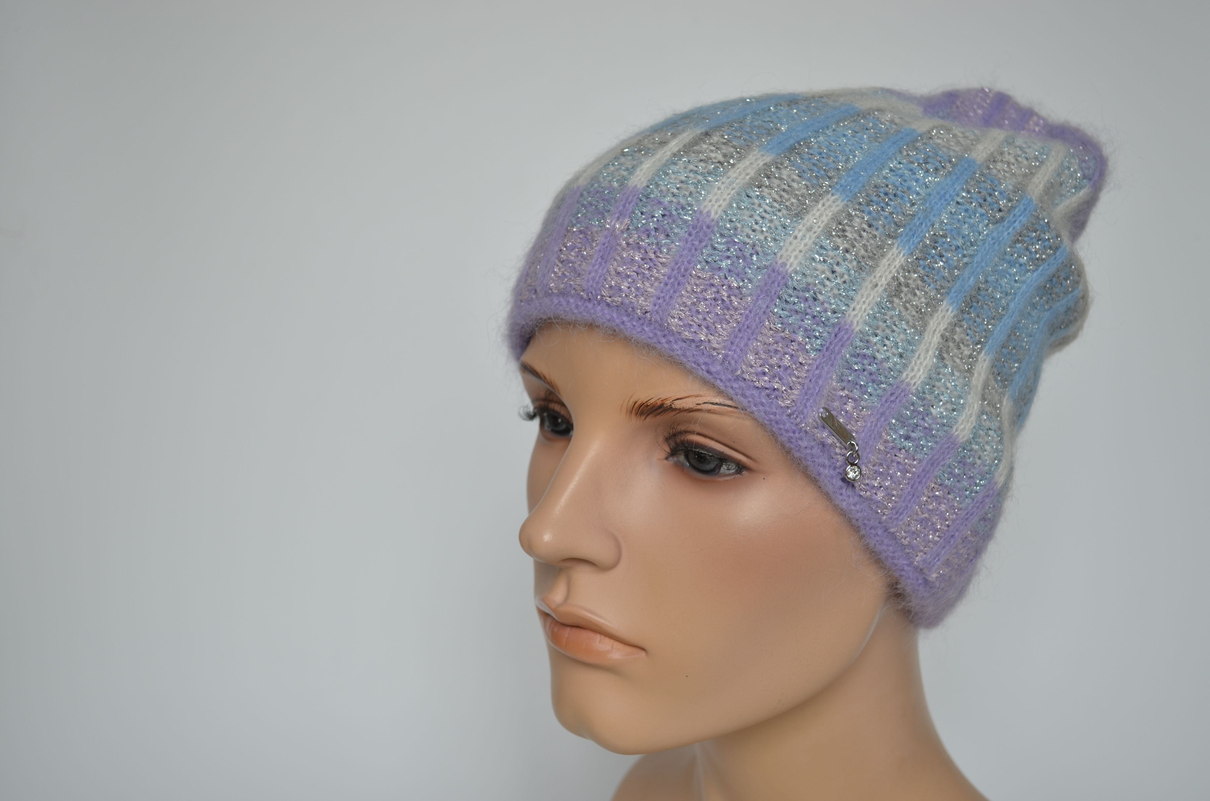 Вязаная лиловая шапка из альпака и мохера женская Vizio Италия 1012 CY двойная зимняя шапка коллекция беретов и шапок Вицио купить в интернет магазине