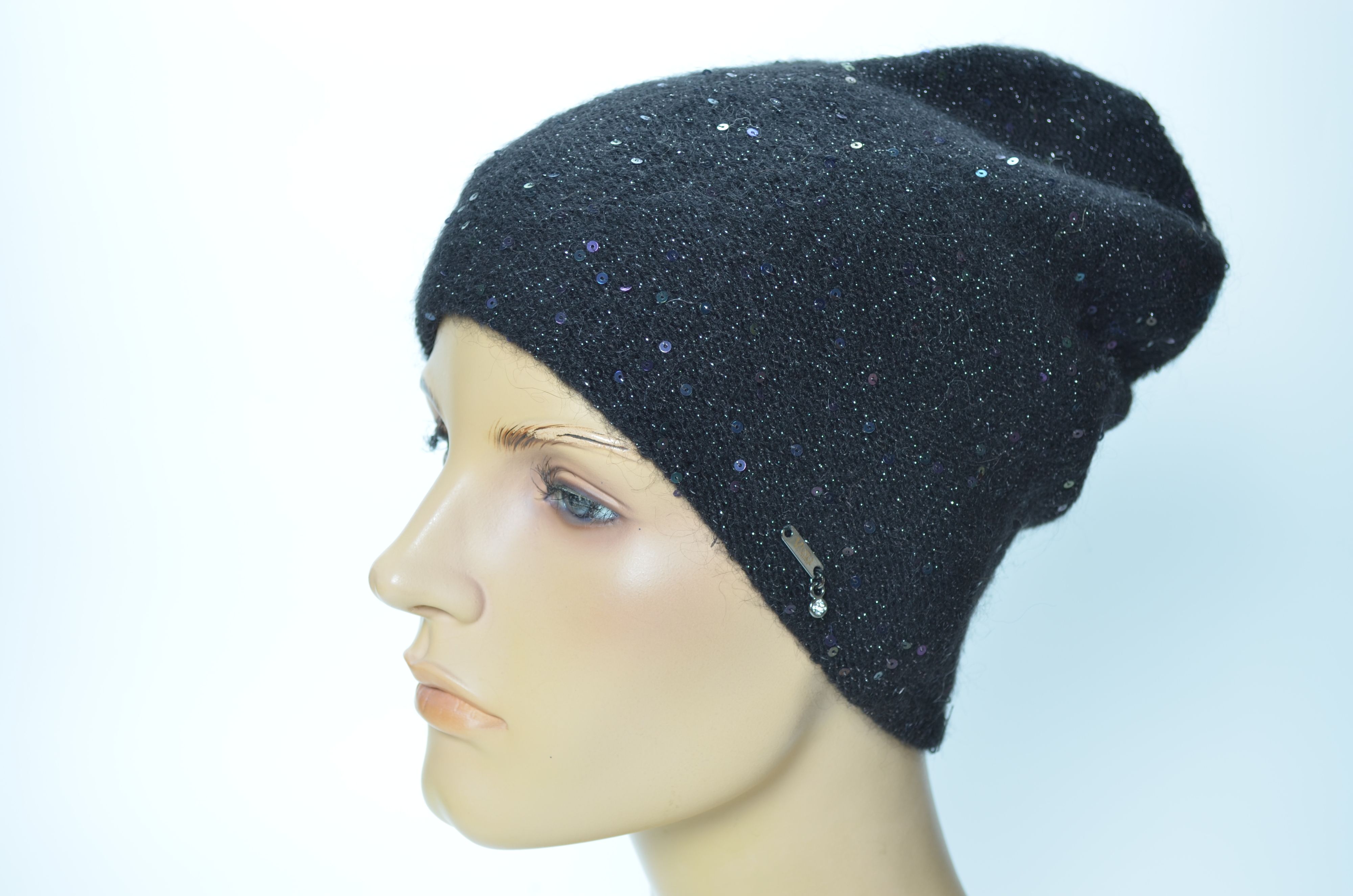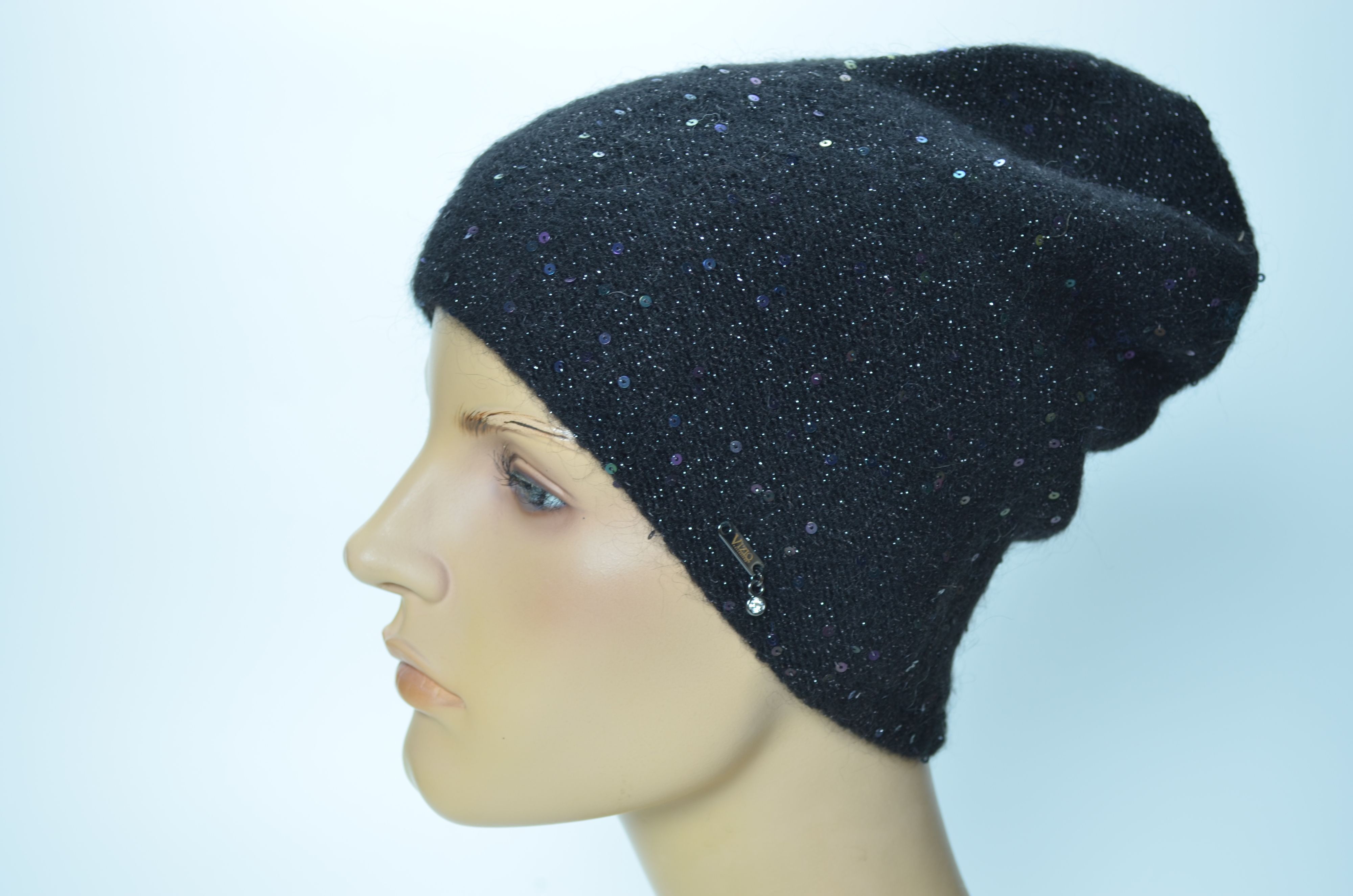 Vizio итальянская шапка черная 1350 CL с пайетками. Классическая черная шапка с пайетками аналог предыдущих моделей 6943 , 1042 и более ранних коллекций итальянских шапок, беретов, кепок и шарфов черного цвета с пайетками