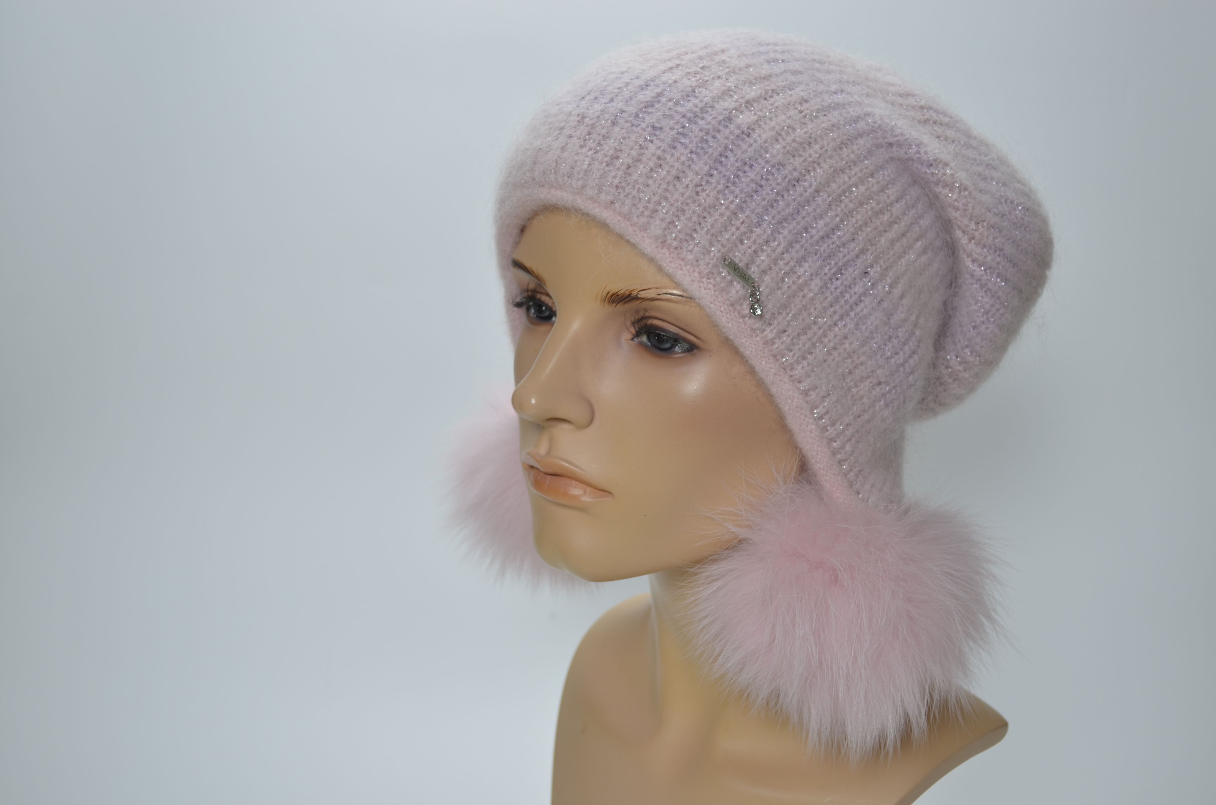 Артикул: Vizio шапка Италия 1444 PP 66 розовая с помпонами цвет 17
