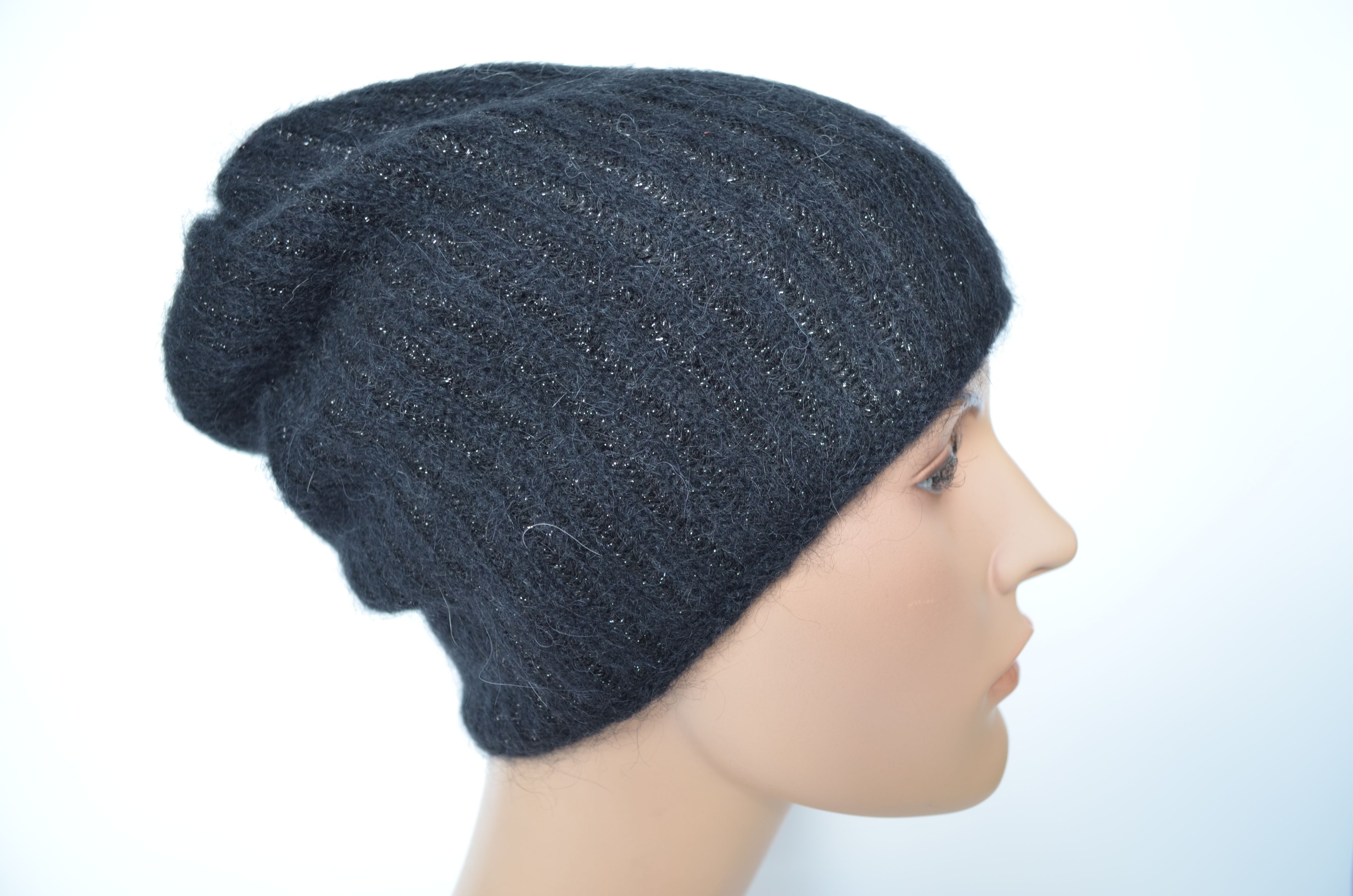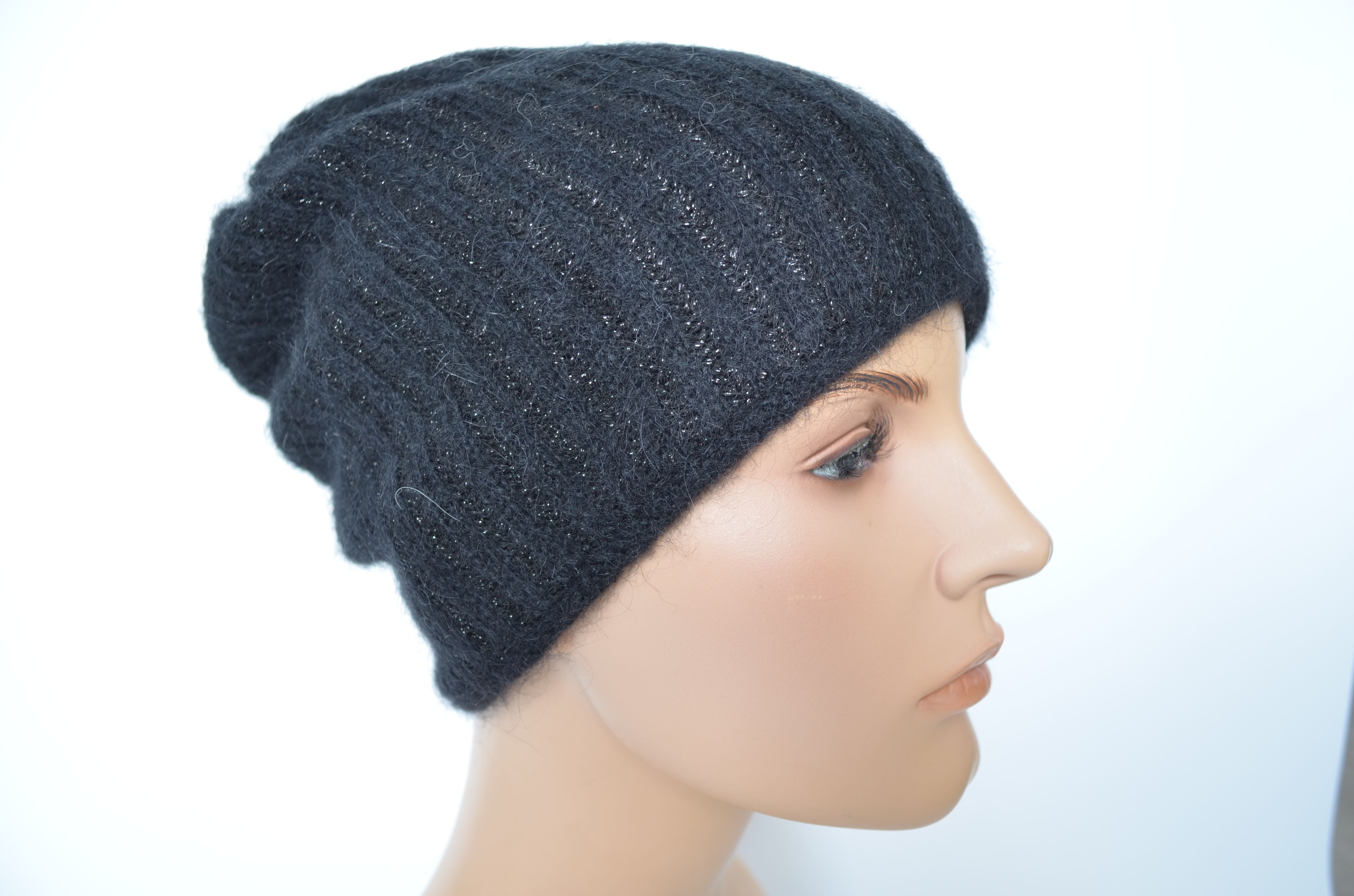 Женская черная вязаная шапка зимняя из мохера и шерсти альпака осень зима 2025 - 2026
