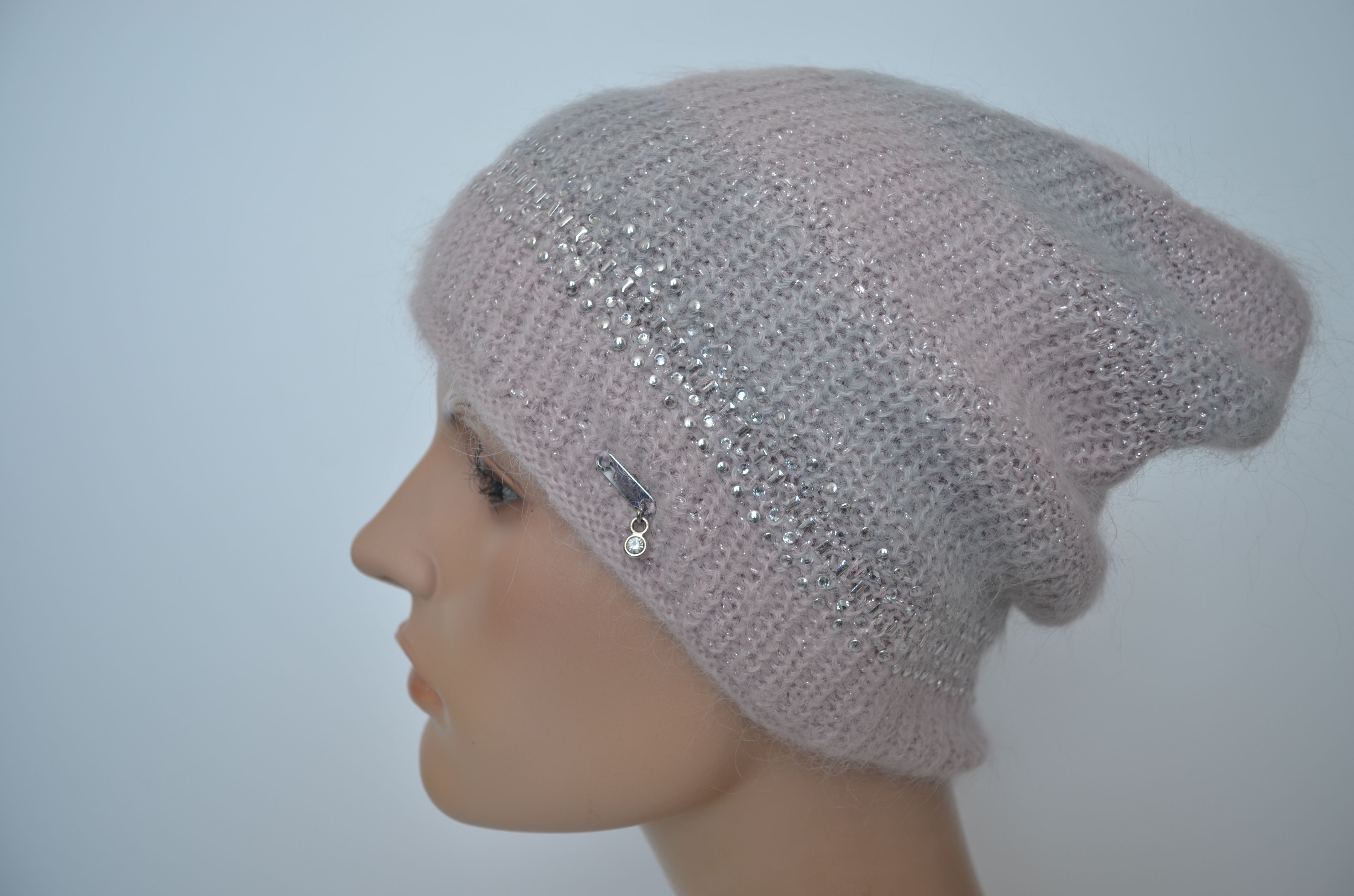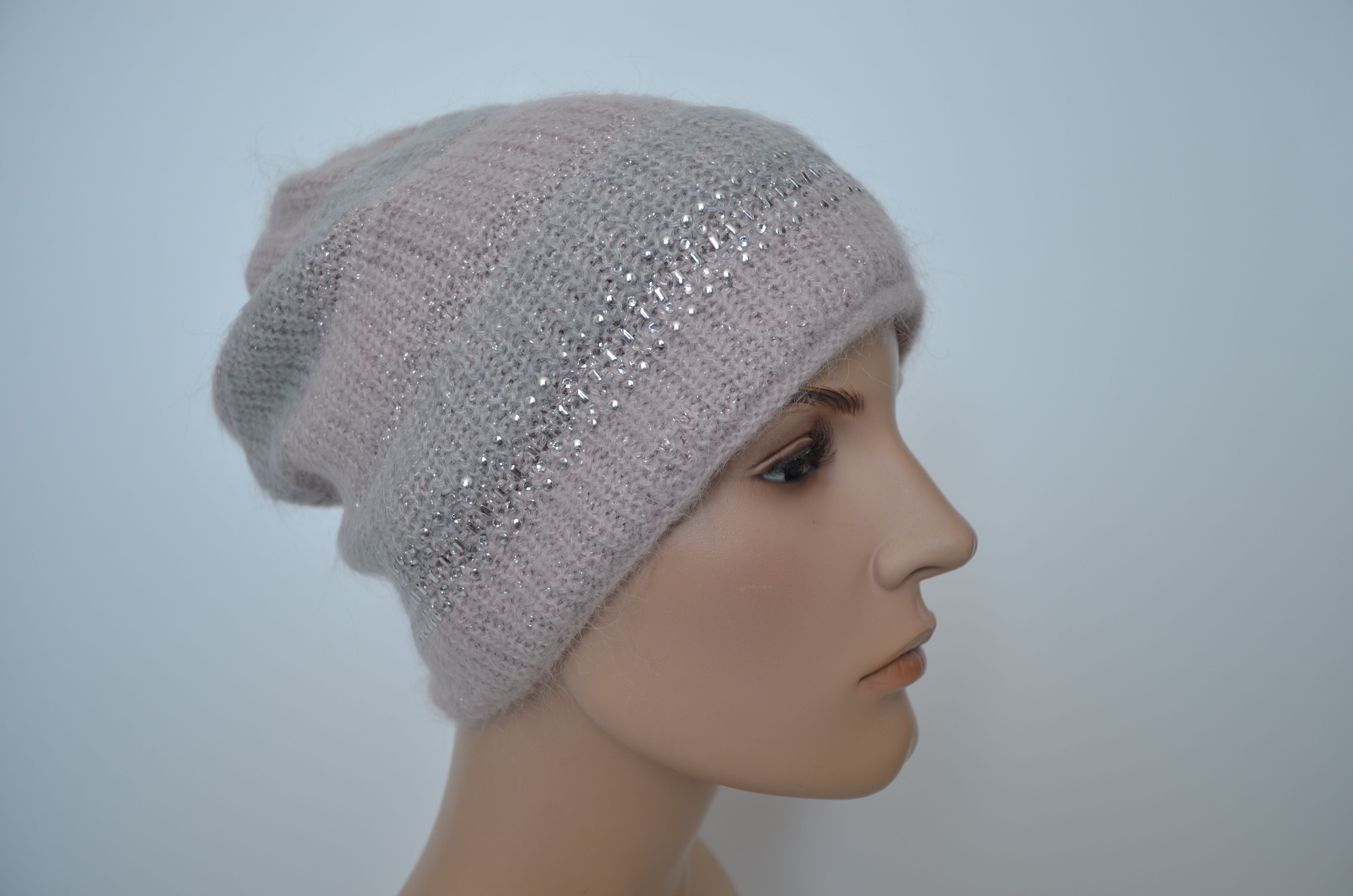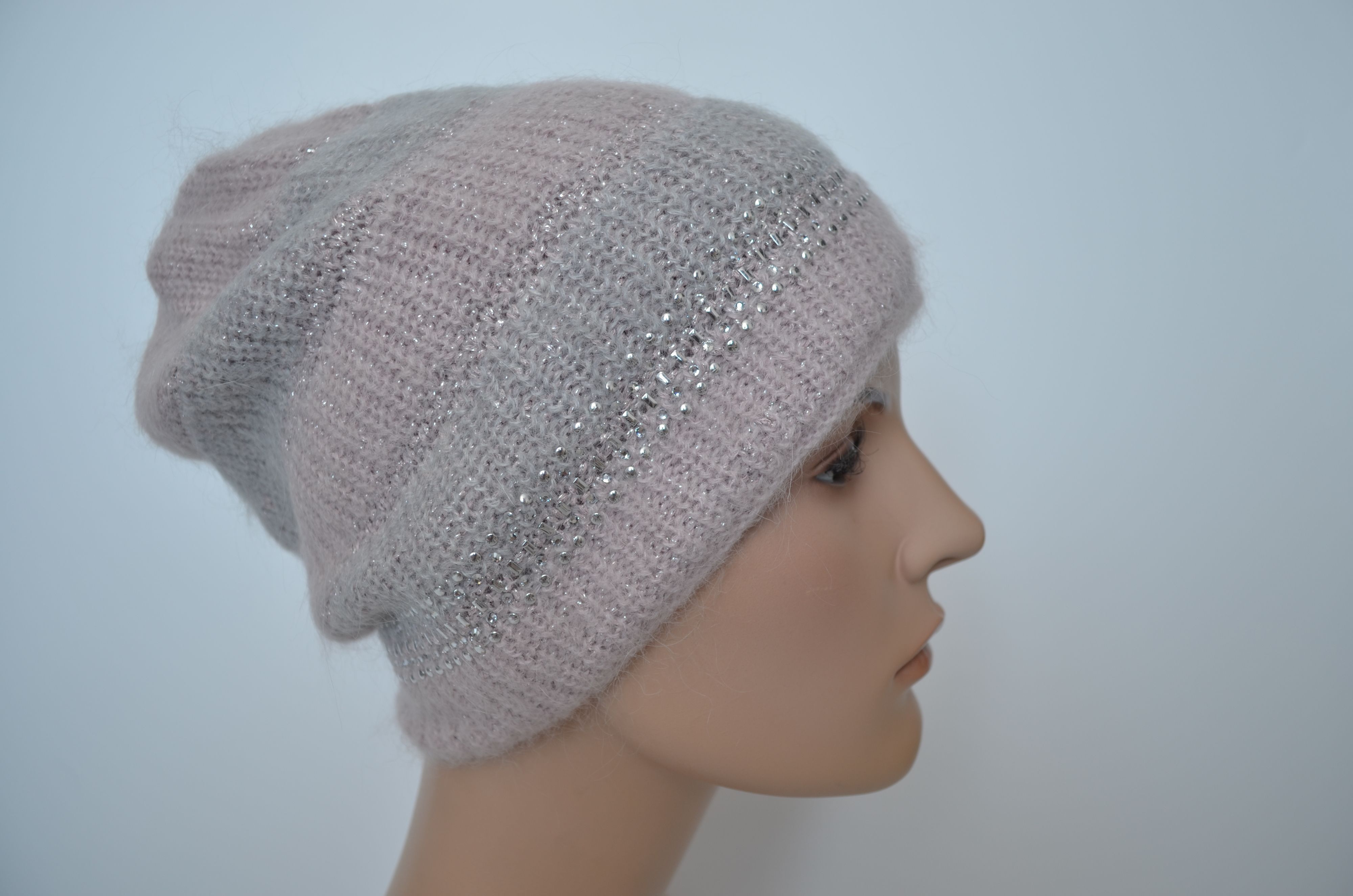 Женская розовая вязаная шапка зимняя из мохера и шерсти альпака осень зима 2025 - 2026
