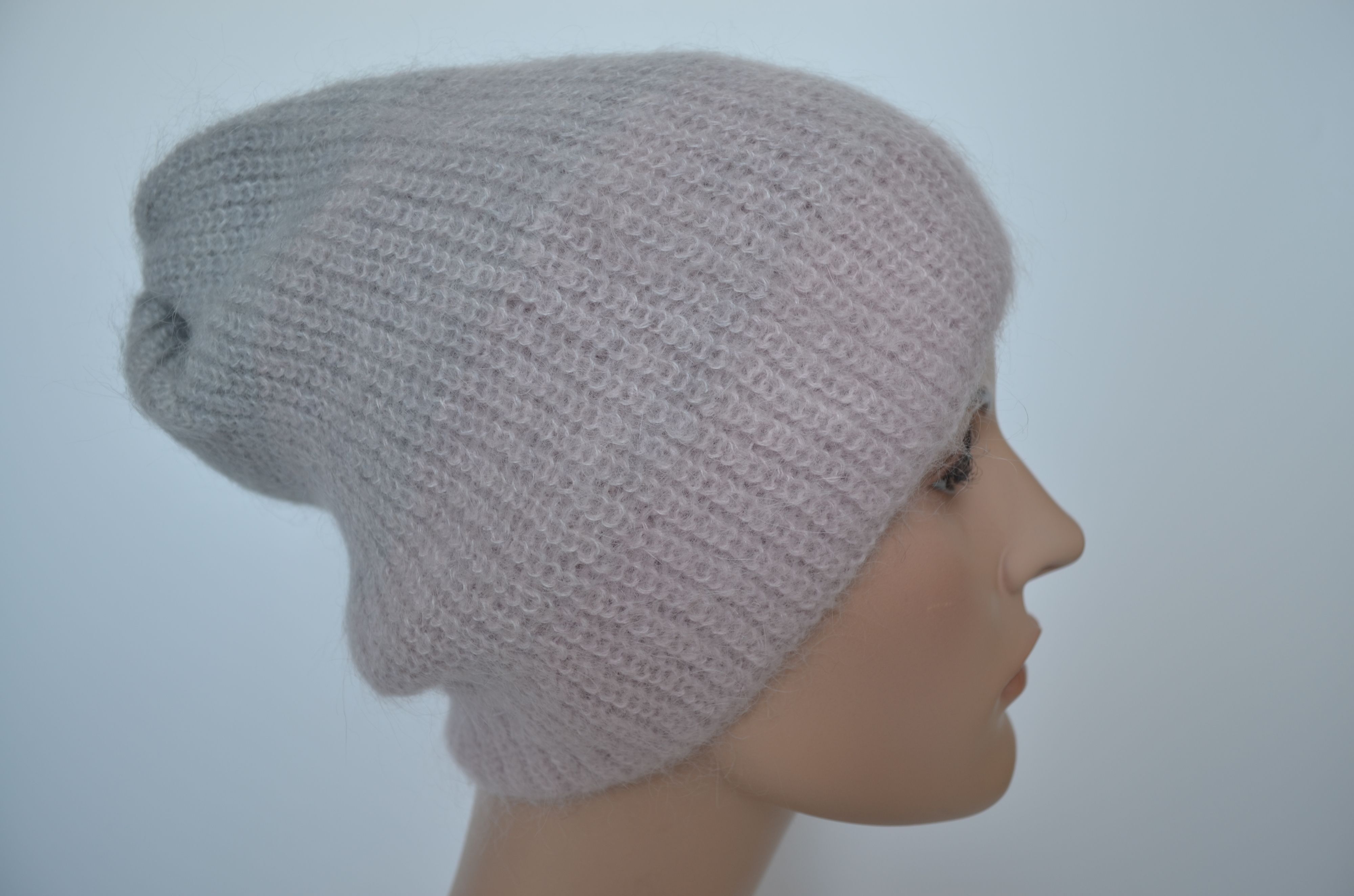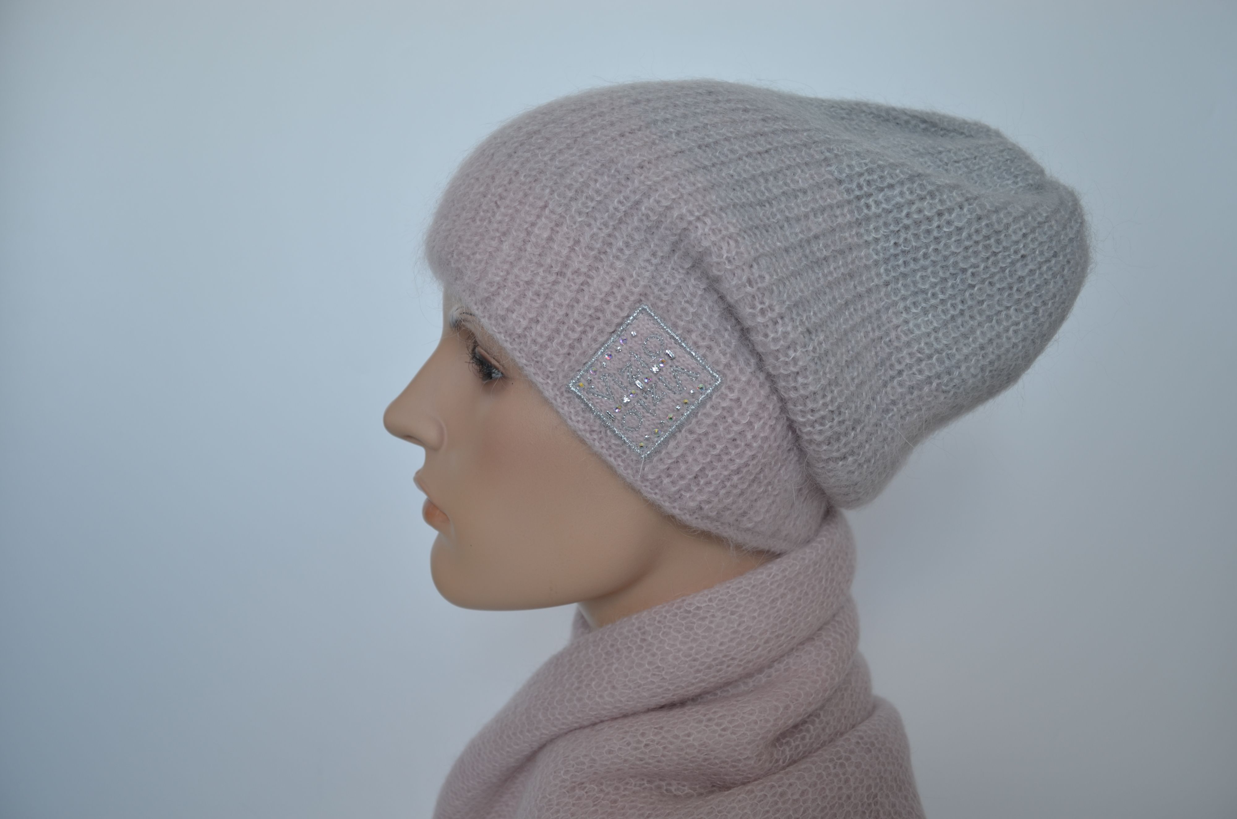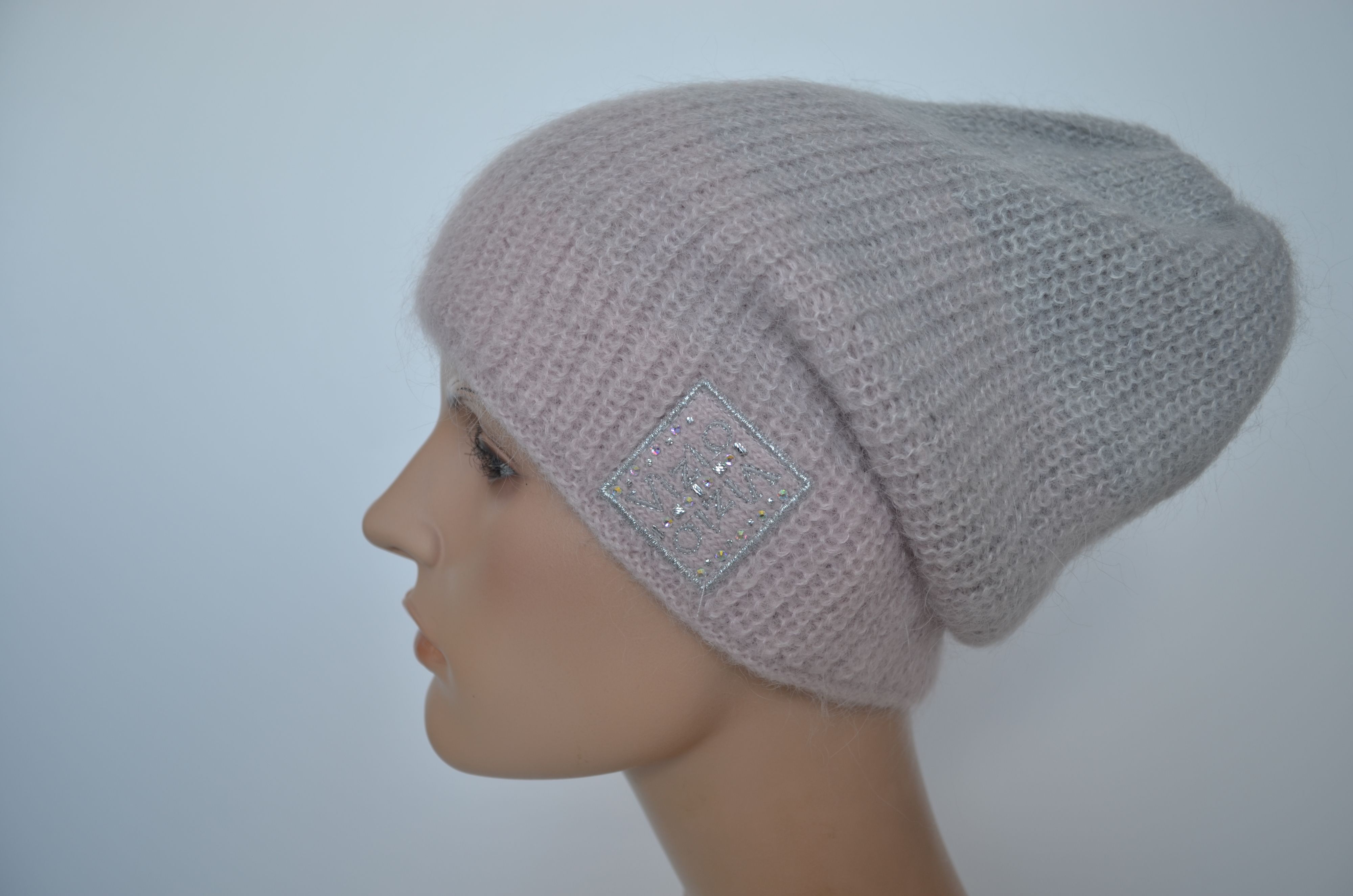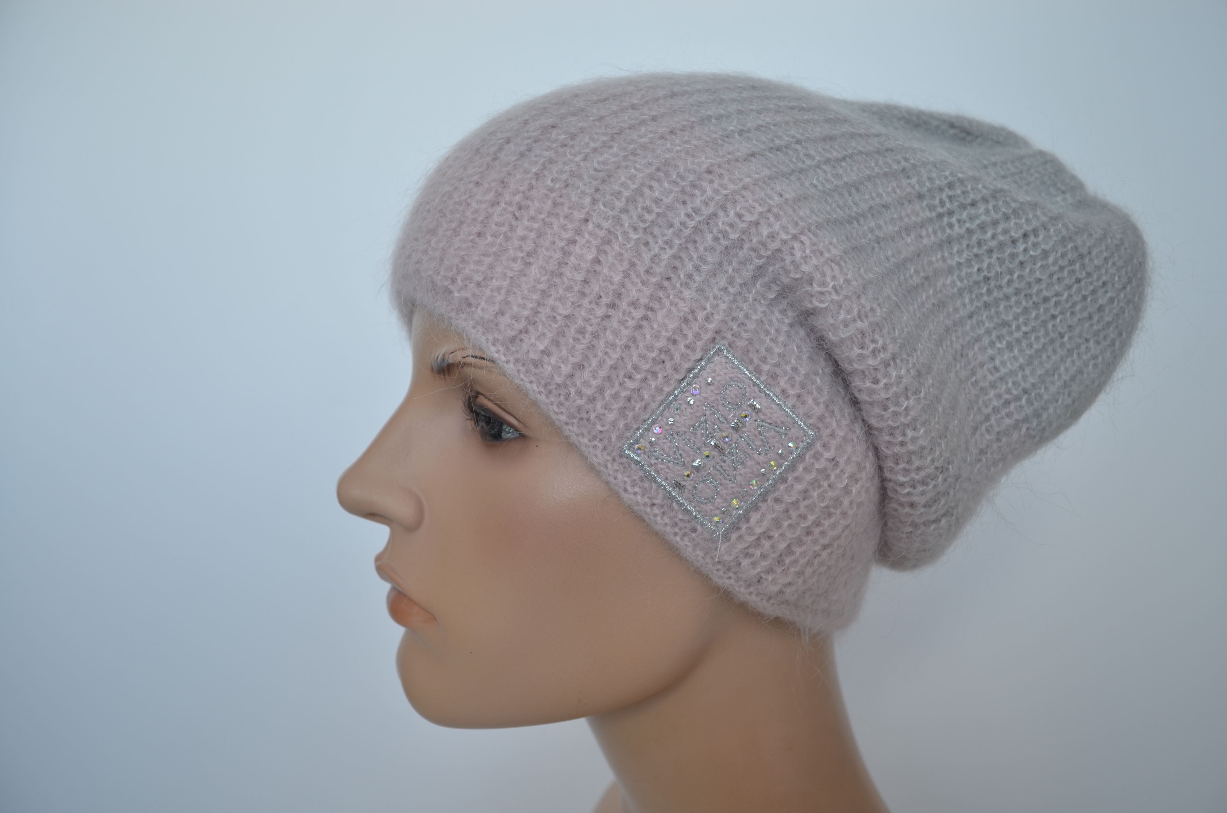 Женская розовая вязаная шапка бини зимняя из мохера и шерсти альпака осень зима 2025 - 2026