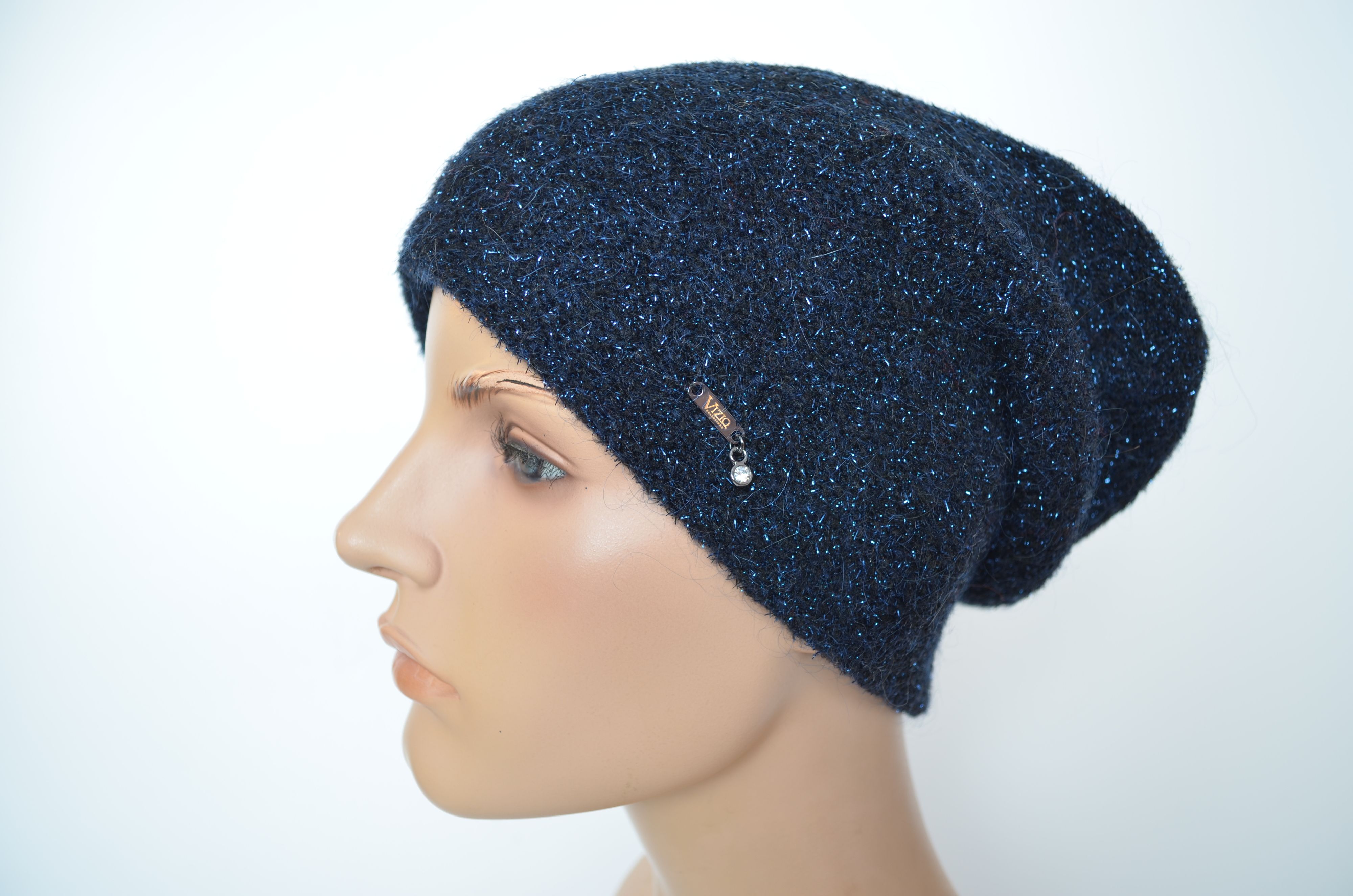 Шапка бини женская вязаная синяя с блестками Vizio Италия 1627 CL новая коллекция зимних шапок бренда головных уборов Италии Vizio Collezione