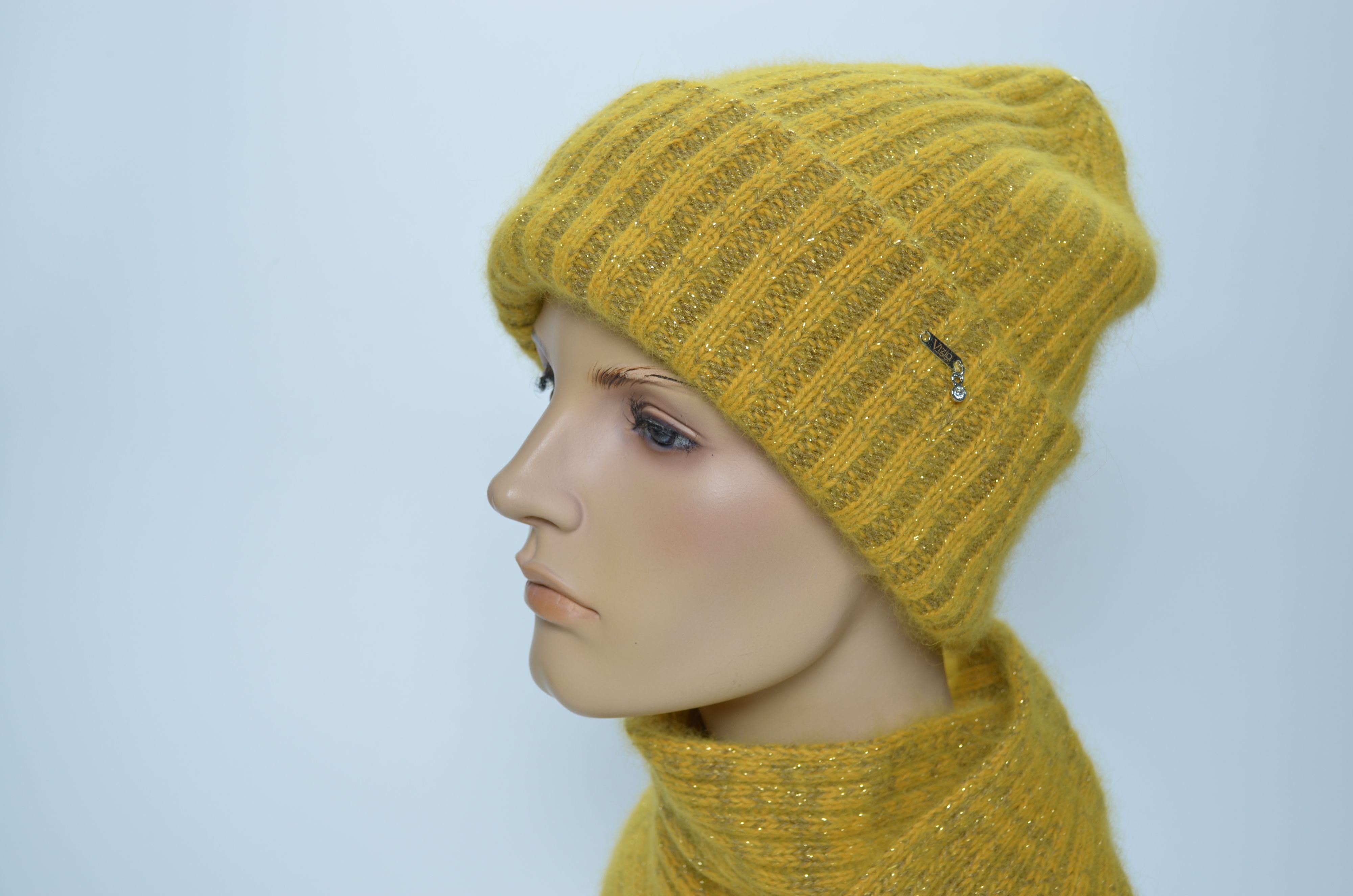 Vizio 203 CRY шапка с отворотом вязаная из ангоры цвета лайм зимняя женская