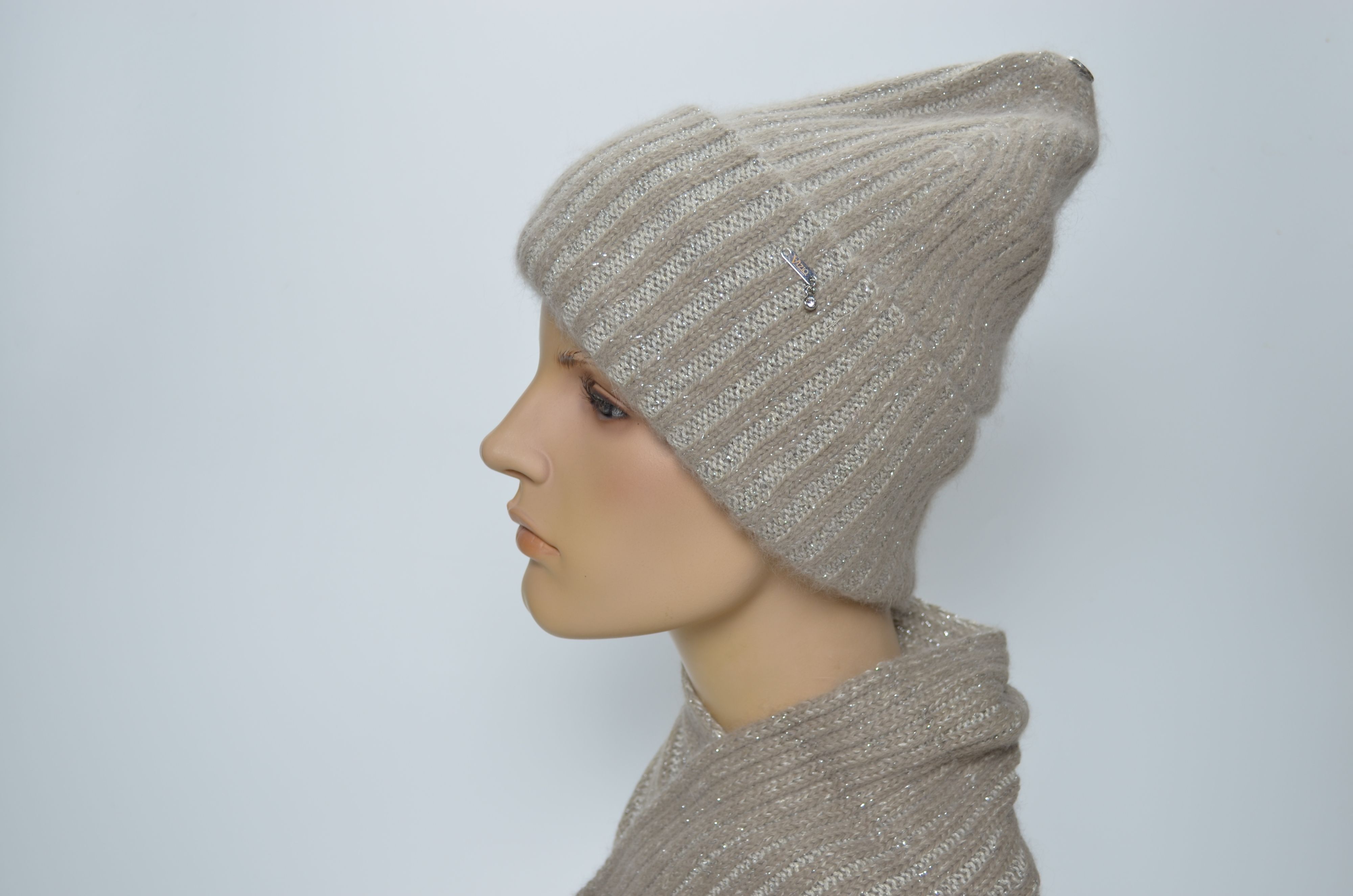 Vizio 203 итальянская шапка с отворотом вязаная из ангоры зимняя женская орехового цвета