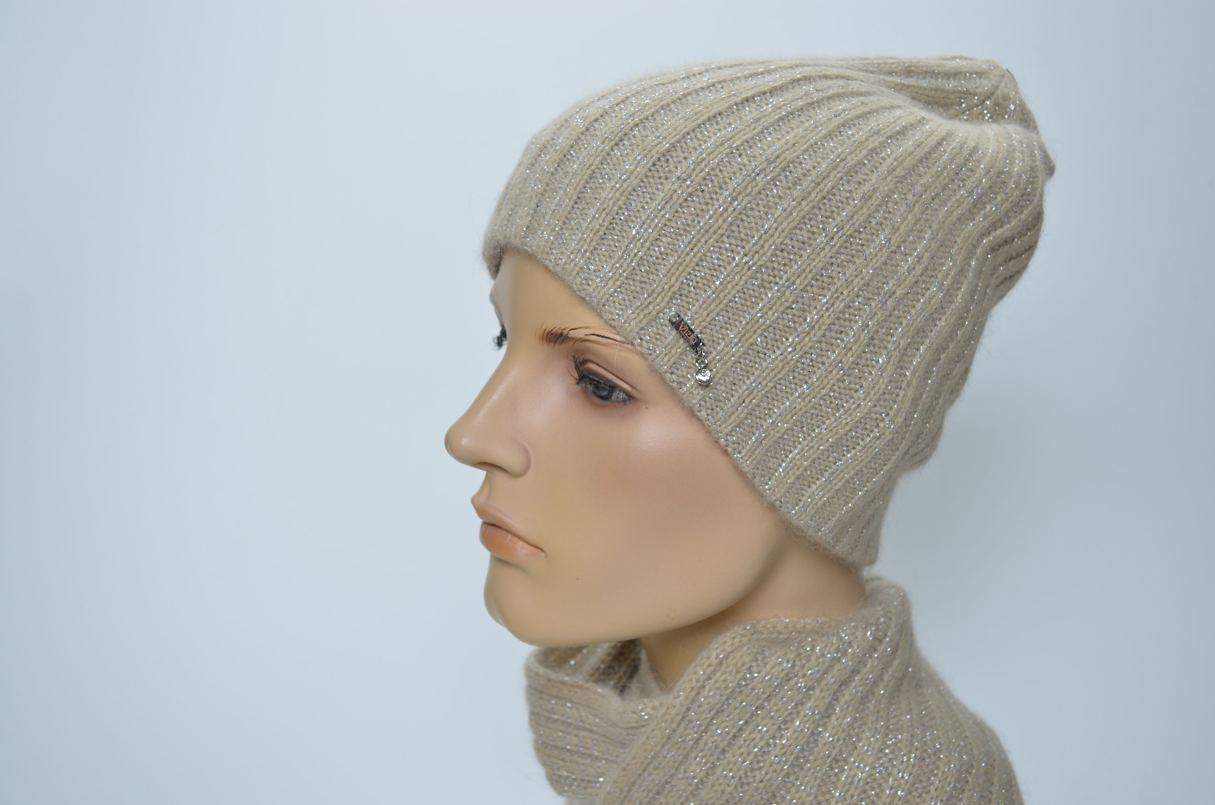 Женская зимняя шапка вязаная из шерсти ангоры Vizio Италия 203 CY бежевого цвета зима 2025 купить в интернет магазине итальянских шапок Вицио