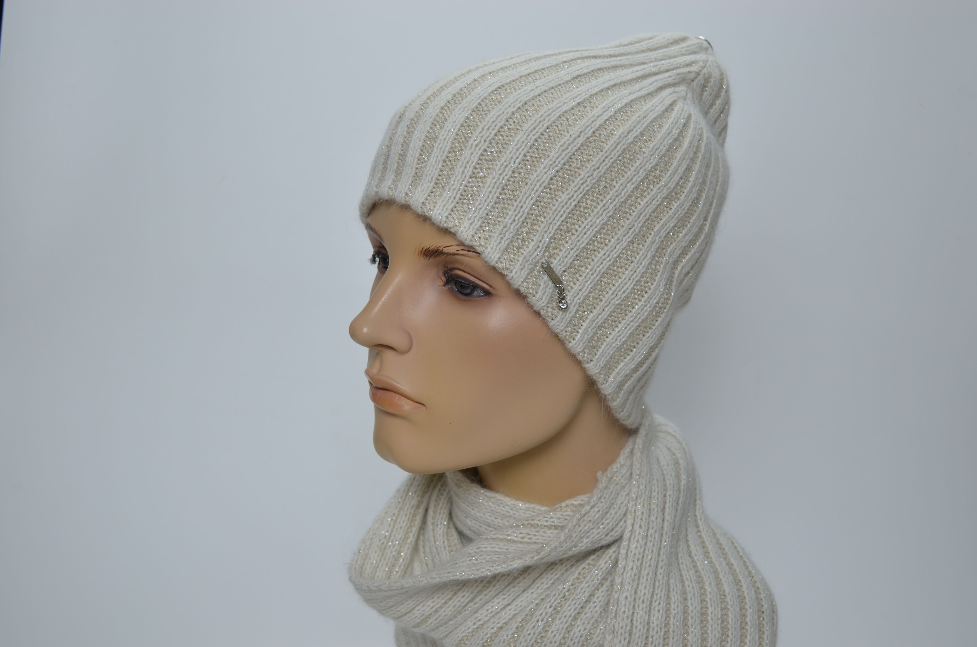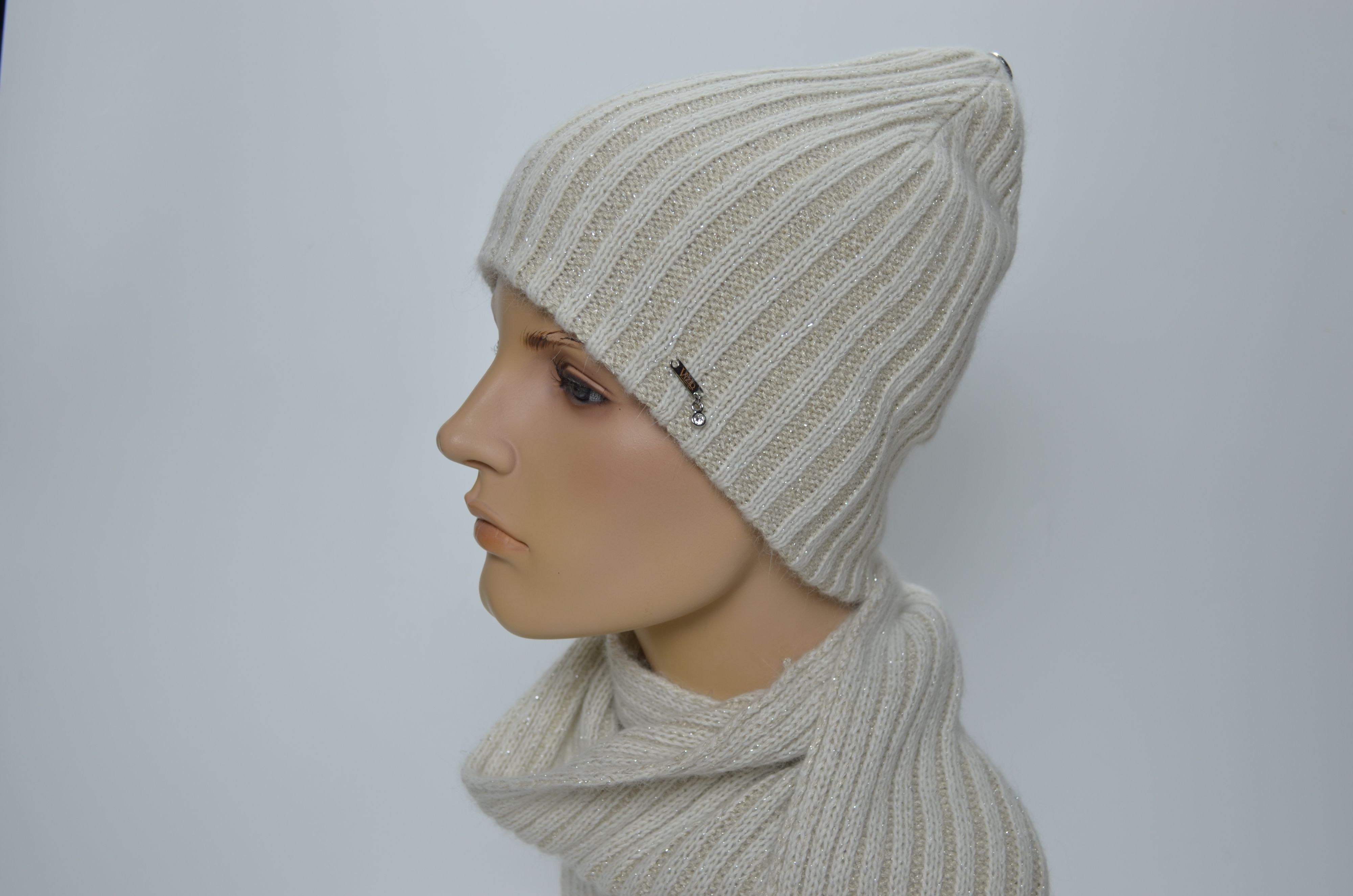 Женская белая шапка вязаная из шерсти ангоры Vizio Италия 203 CY коллекция зима 2025 купить в интернет магазине итальянских шапок Вицио