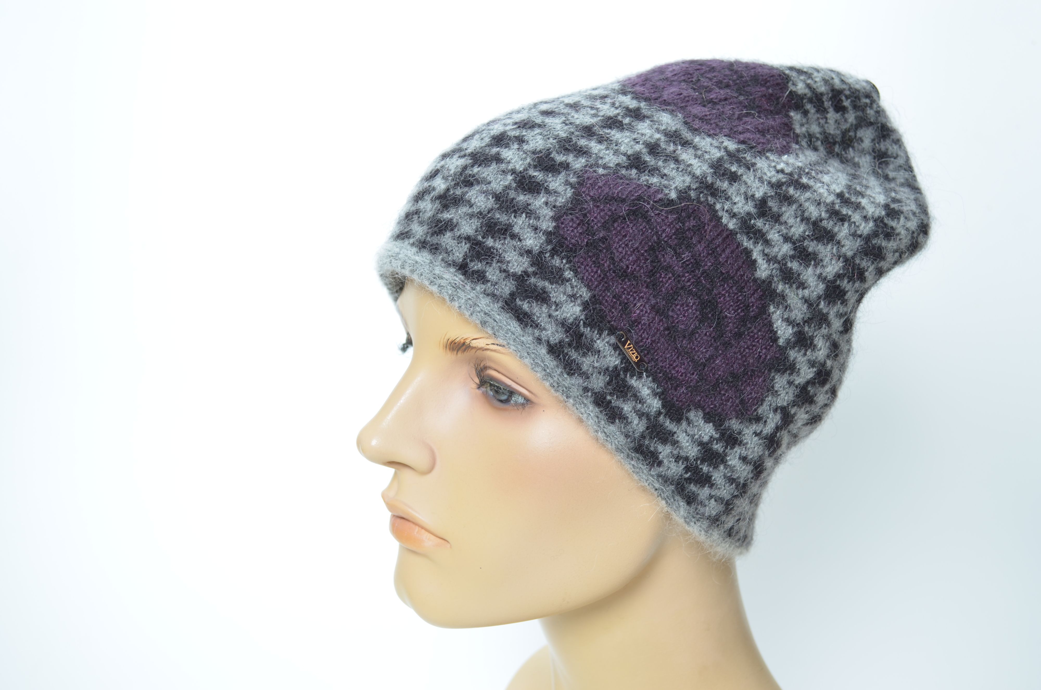 Вязаная женская зимняя шапка с цветами зима 2025 Vizio Collezione 1370 CY темно серая купить в интернет магазине модных итальянских головных уборов
