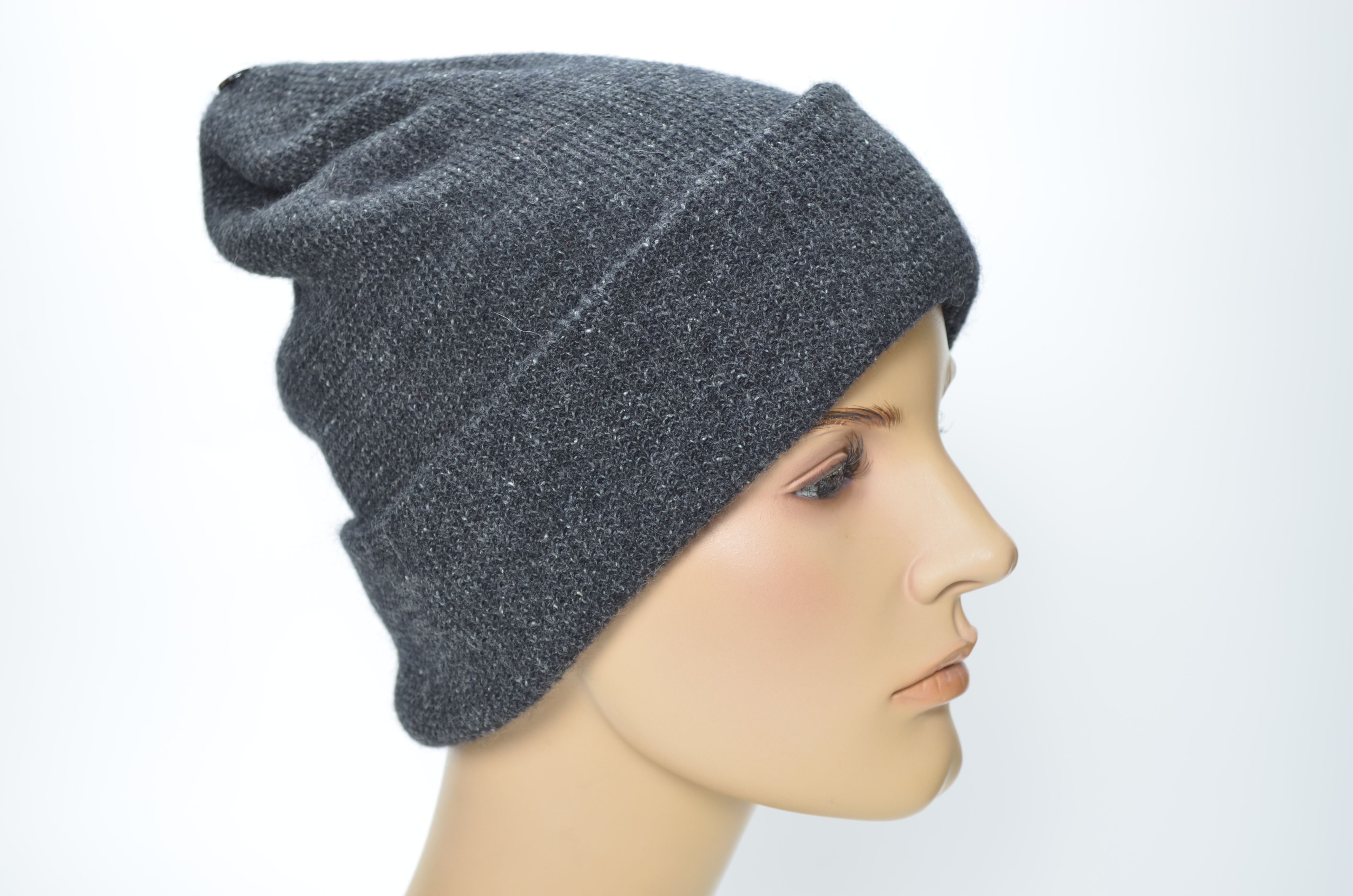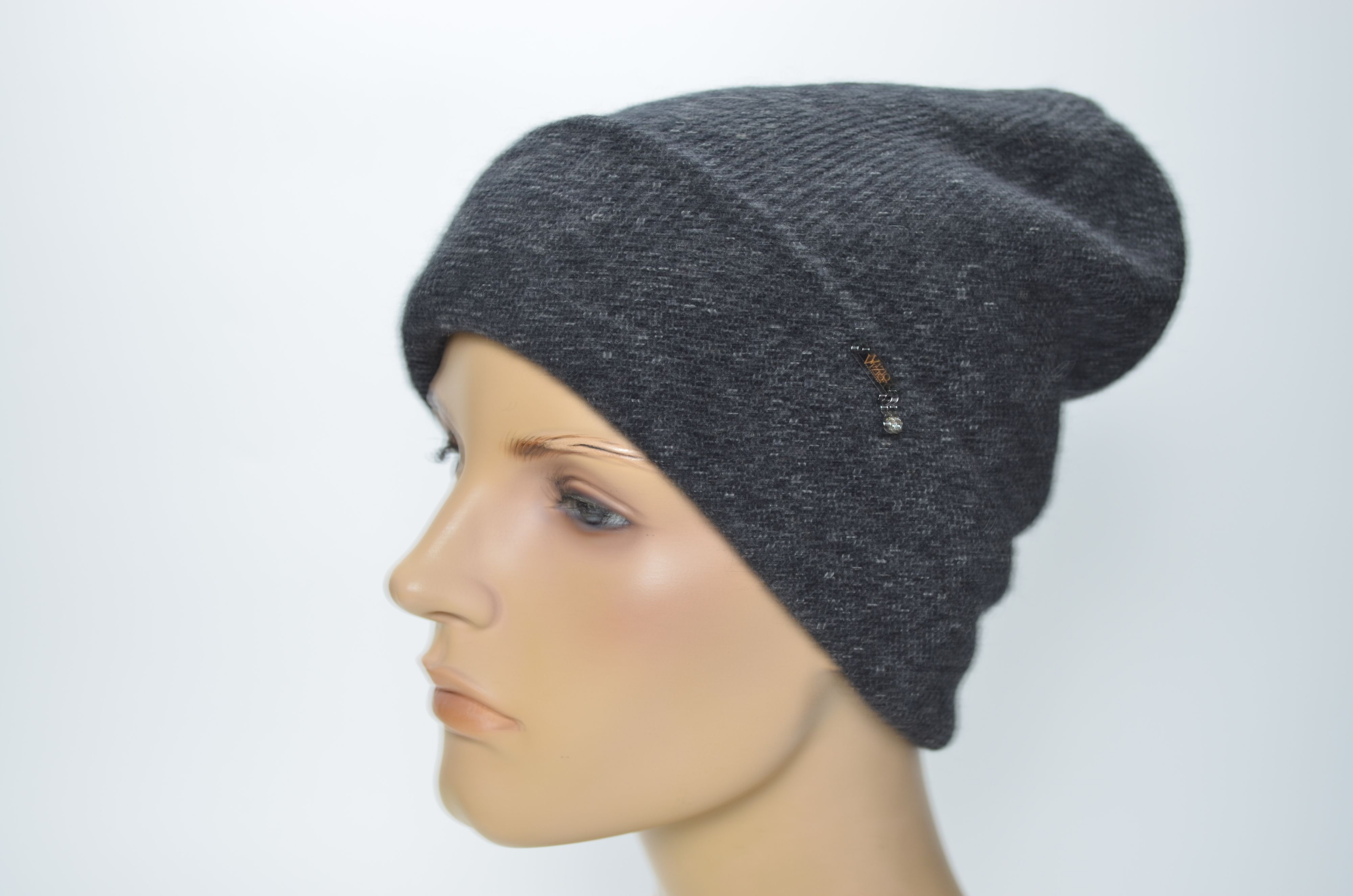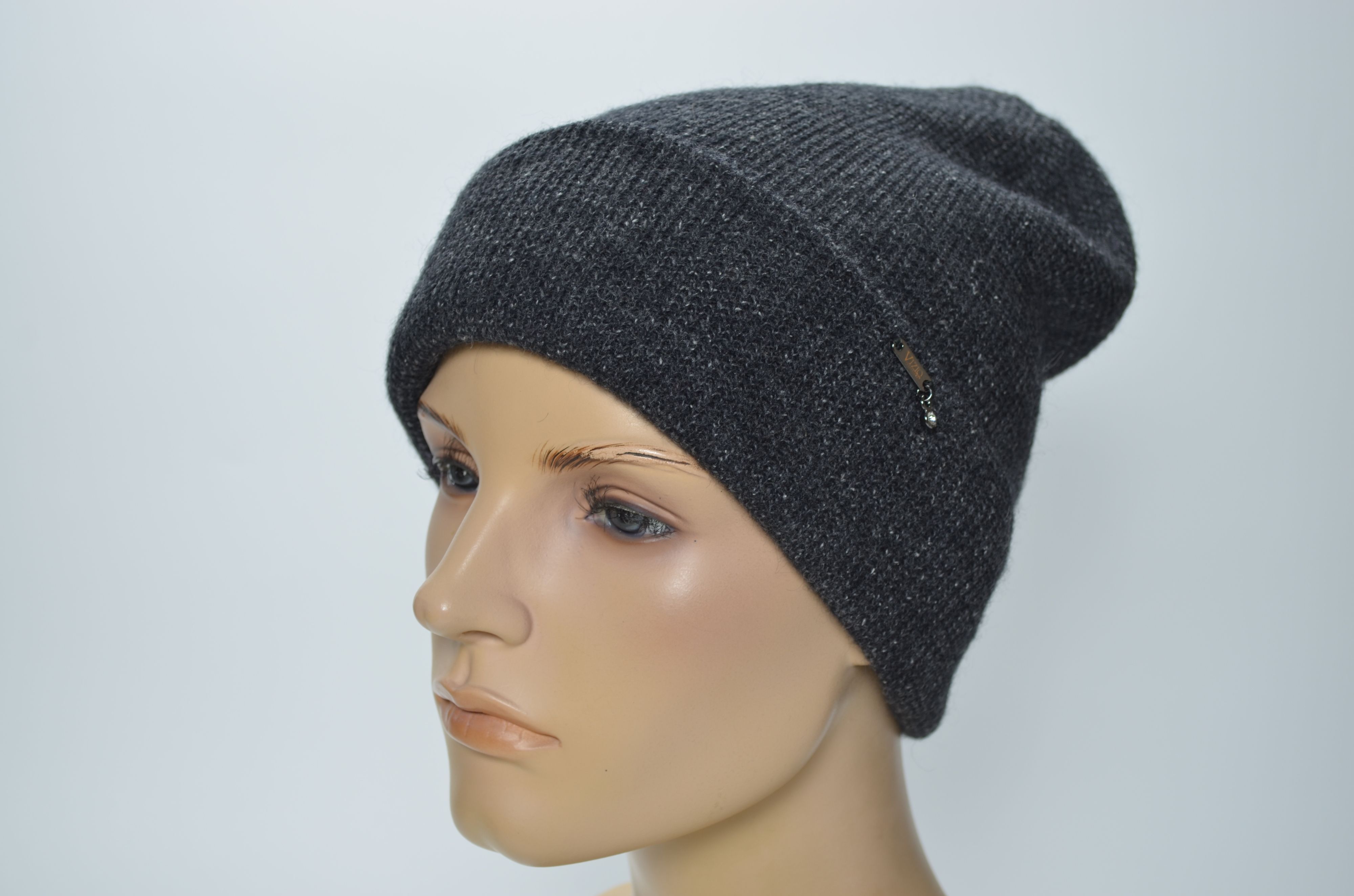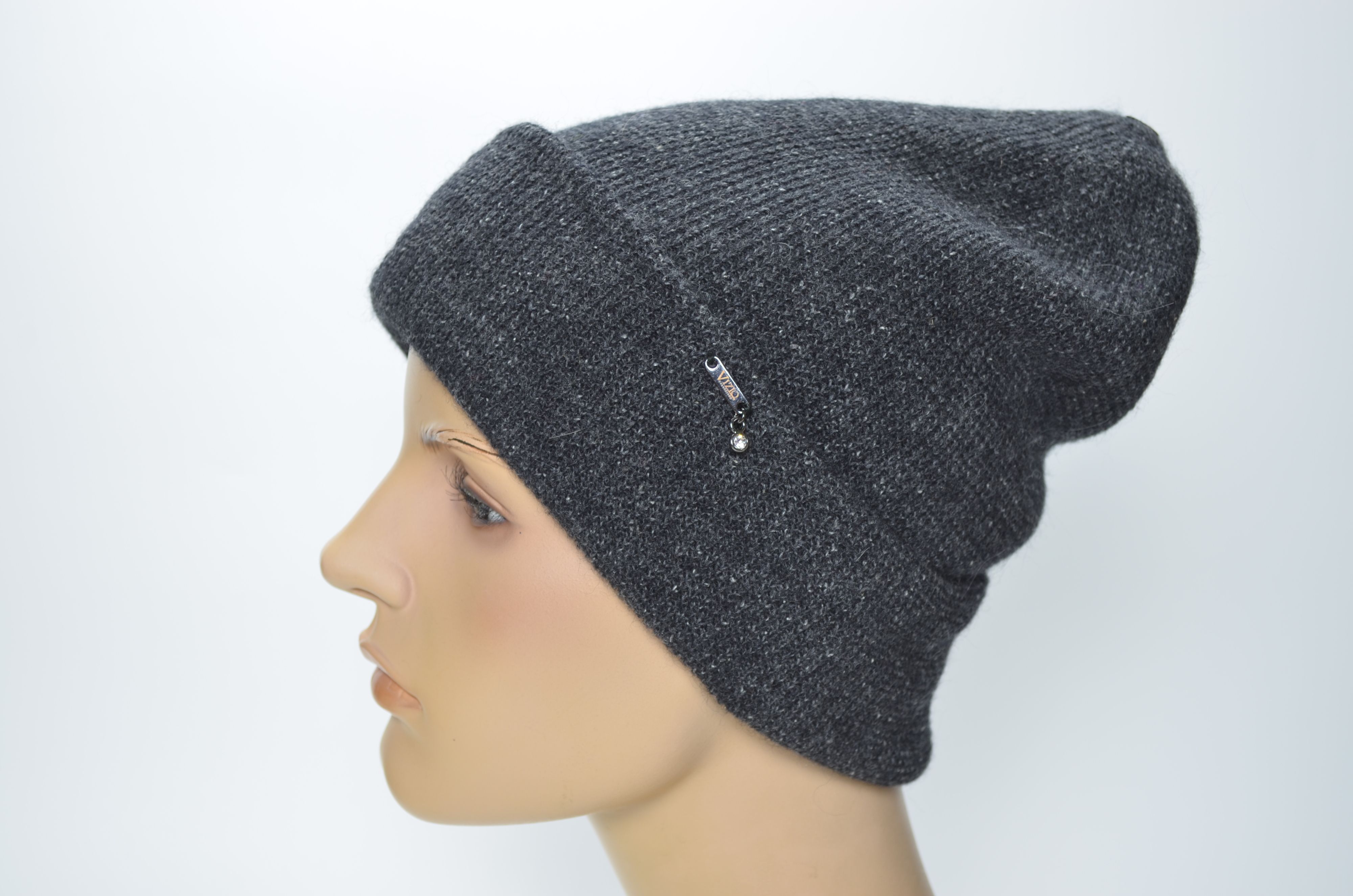 Женская вязаная шапка с отворотом двойная из шерсти альпака зима 2024 2025 Vizio SS 1425 CRY темно серого антрацитового цвета купить в интернет магазине итальянских головных уборов