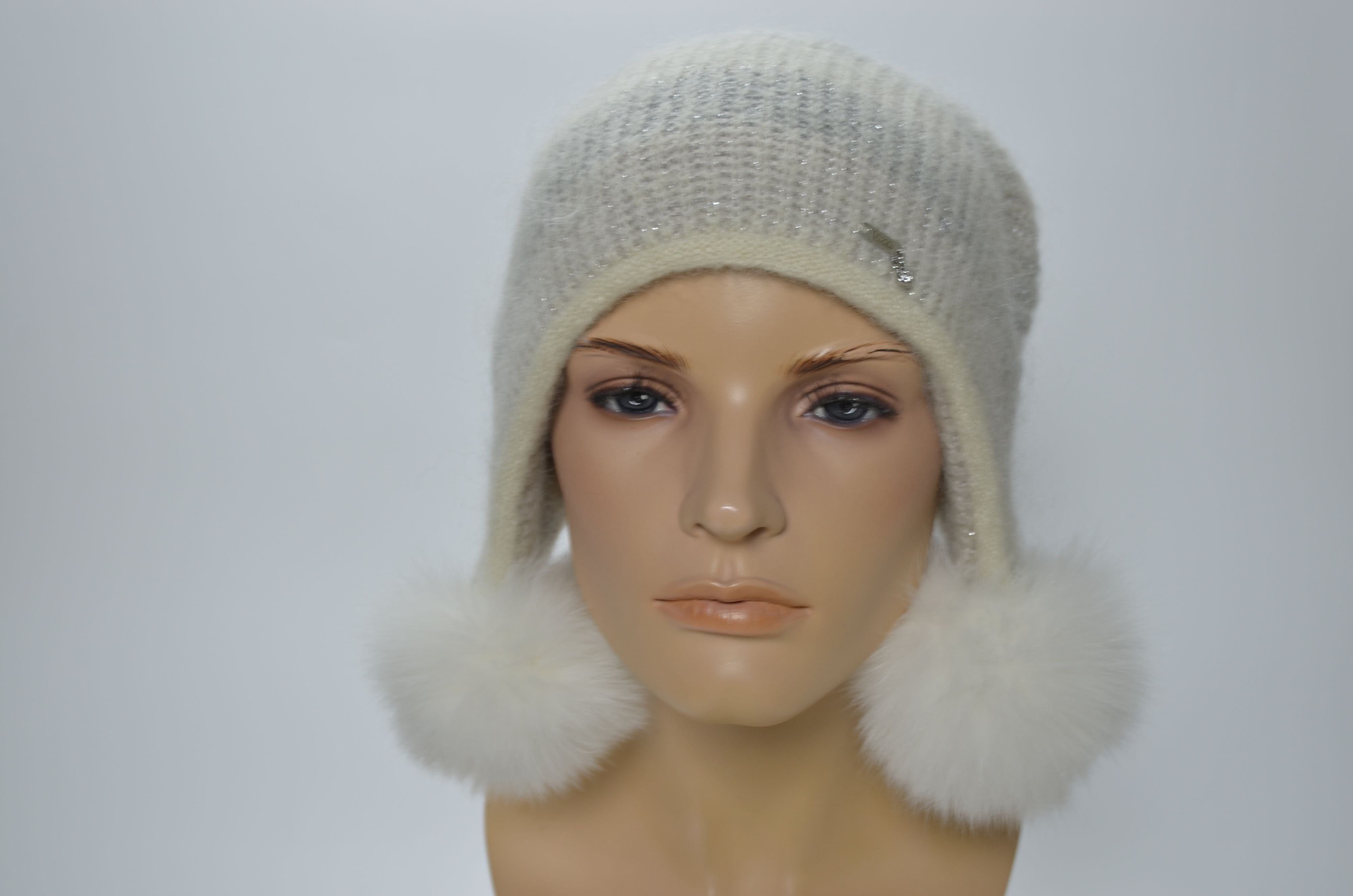 Артикул: Vizio шапка ушанка Италия 1444 PP 66 белая с помпонами