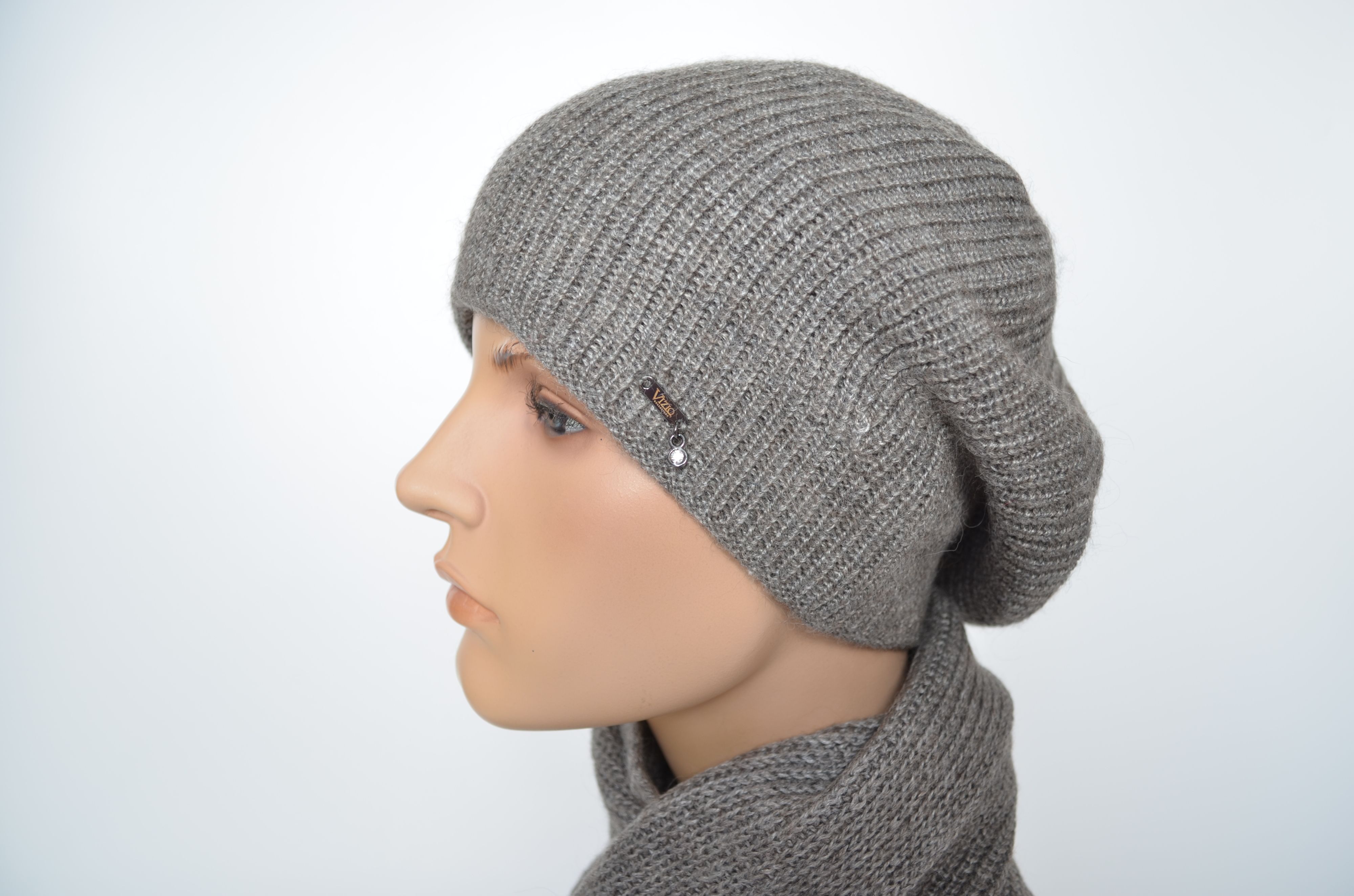 Женский зимний шарф из шерсти альпака и шелка орехового Vizio Италия 1743 S (в прошлых коллекциях 9015 или 1129 и 1441 ) новая коллекциия итальянских вязаных шарфов и головных уборов Vizio Collezione осень зима 2025 - 2026