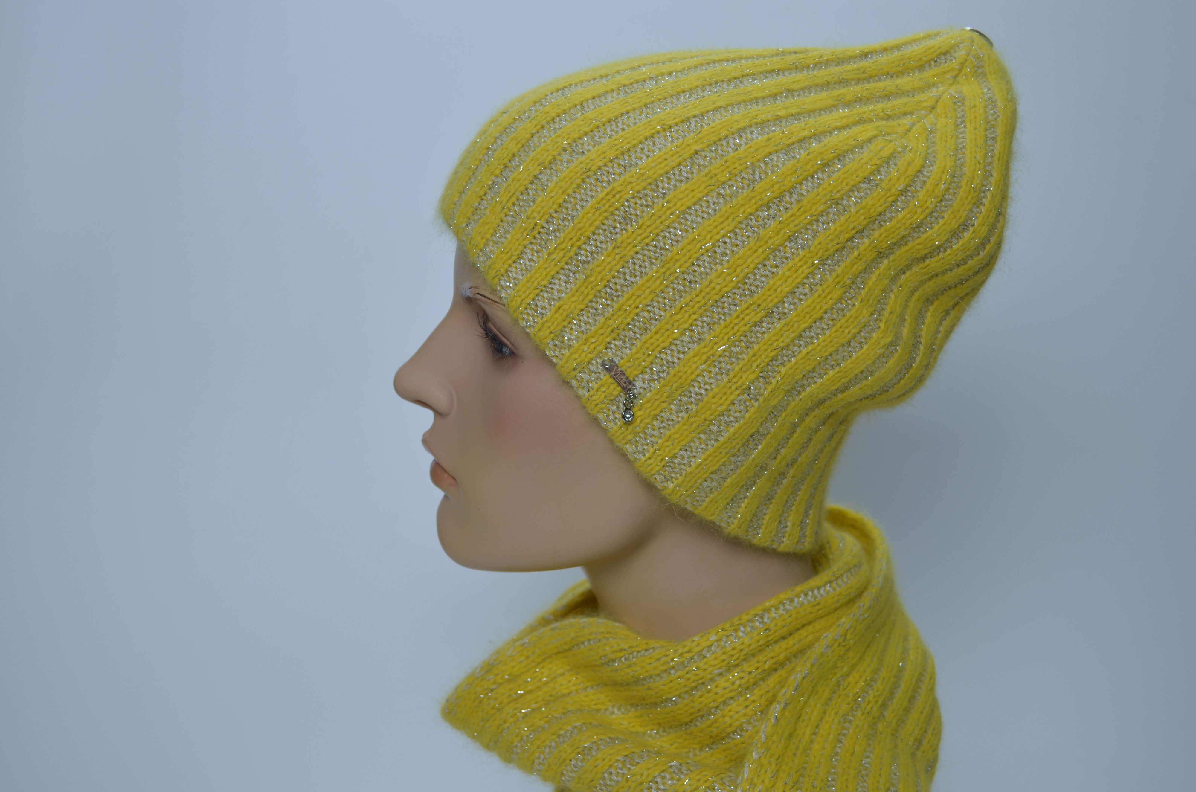 Вязаный желтый шарф из ангоры зимний Италия Визио 203 S купить из коллекции шарфов и головных уборов из ангоры с доставкой по Москве и России