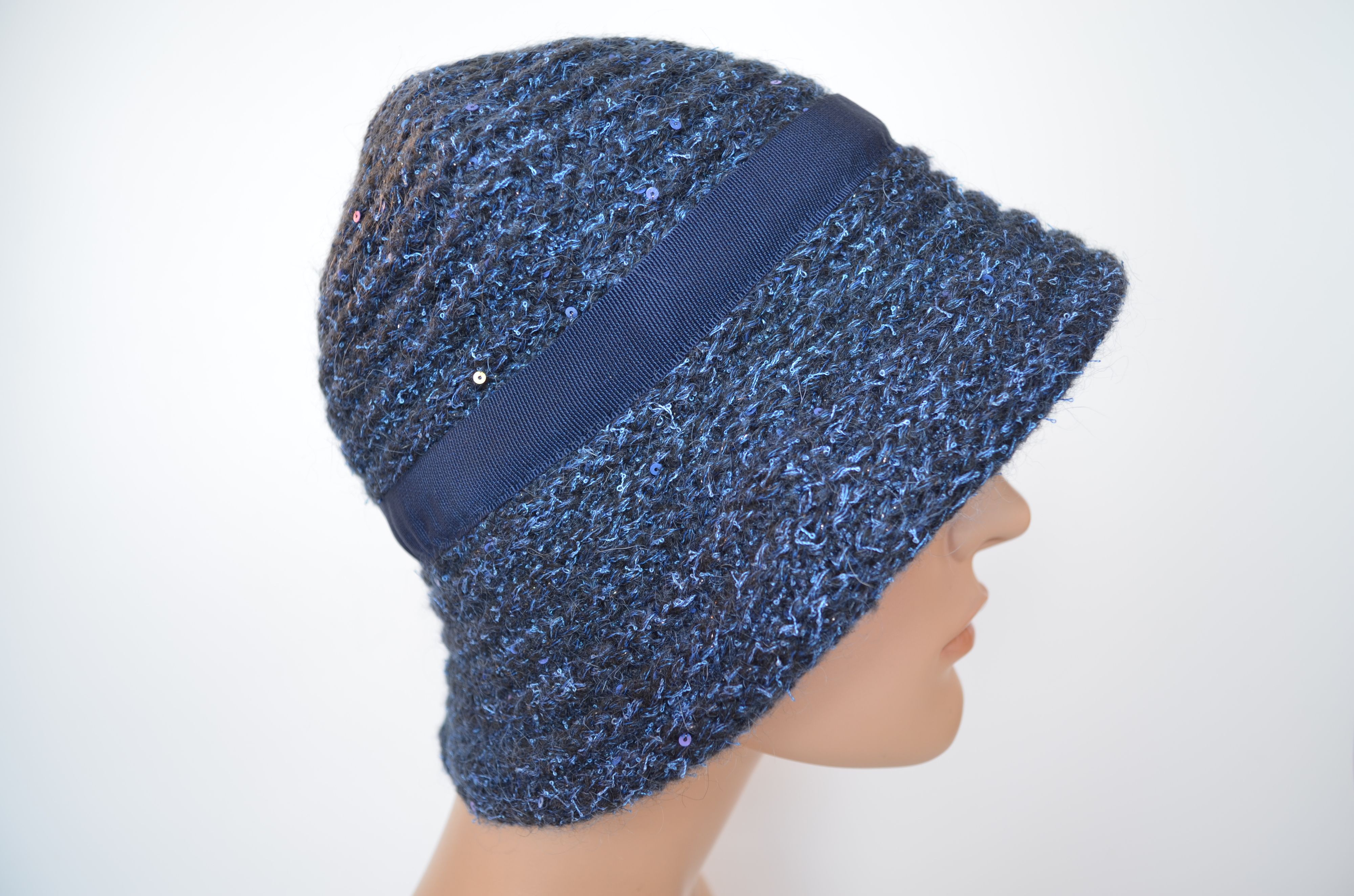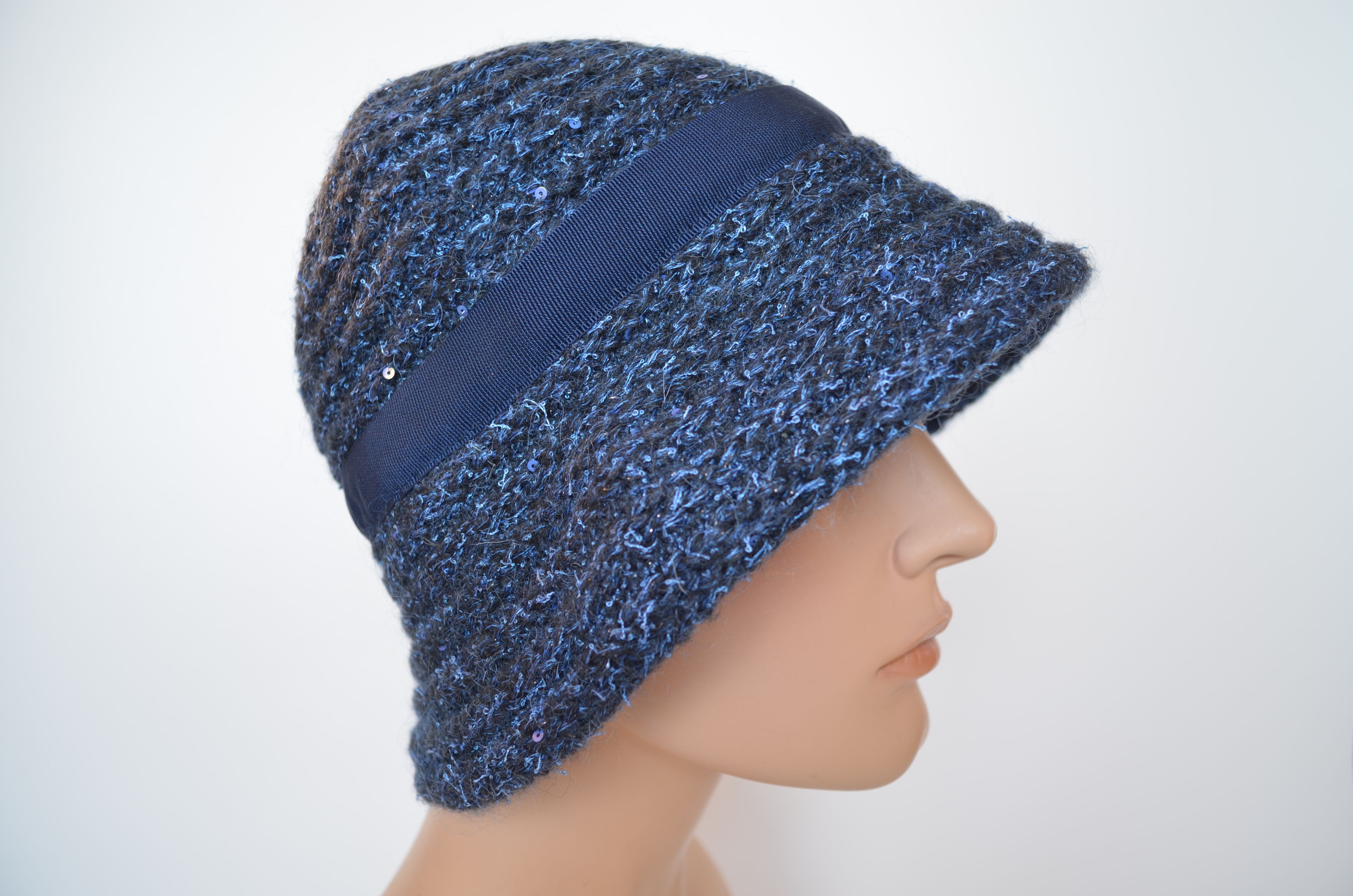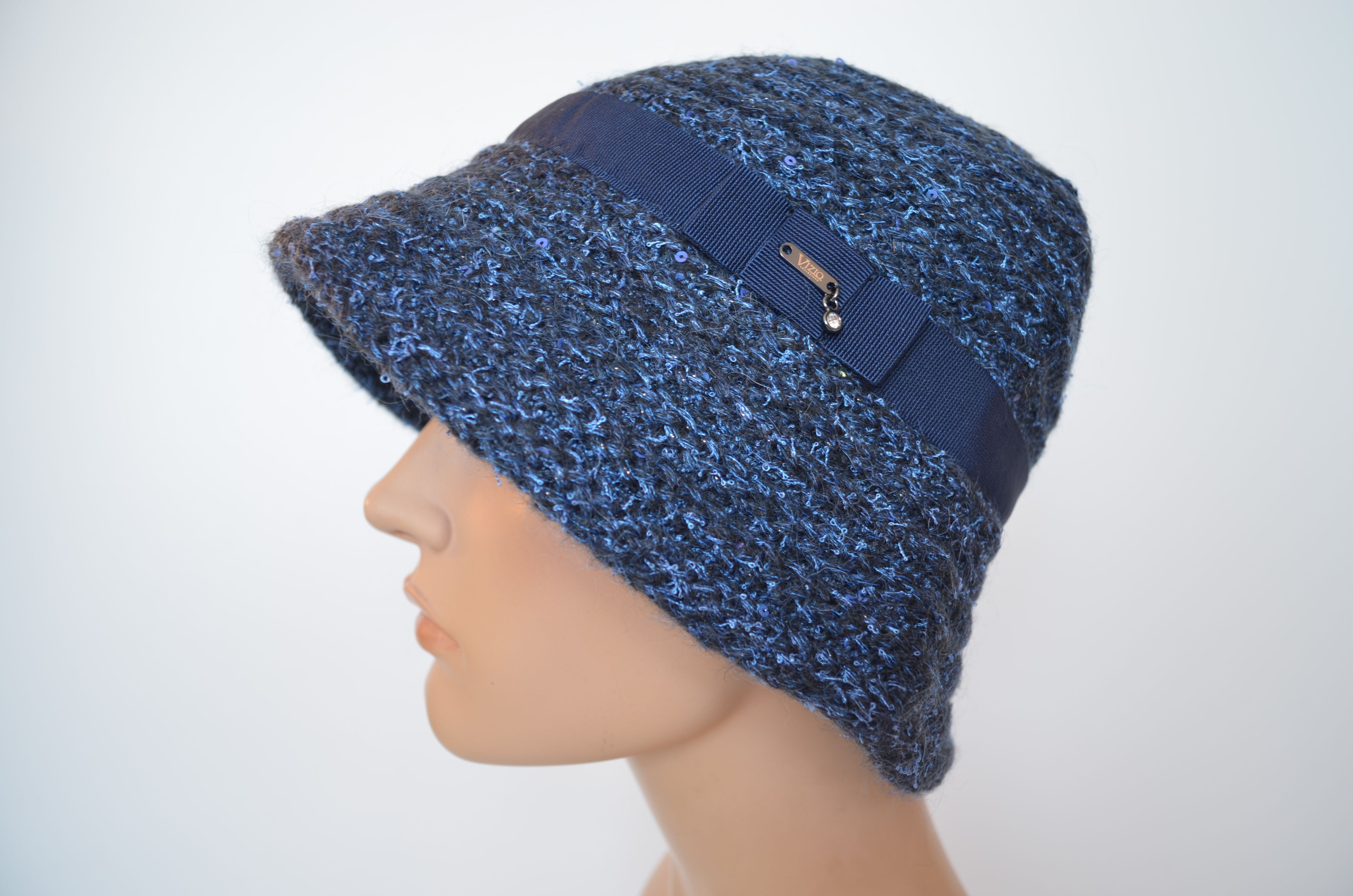 Вязаная зимняя итальянская шляпа для женщин коллекция шляп осень зима 2025 - 2026 бренда головных уборов Италии Vizio Collezione модель 1622 FF синего цвета