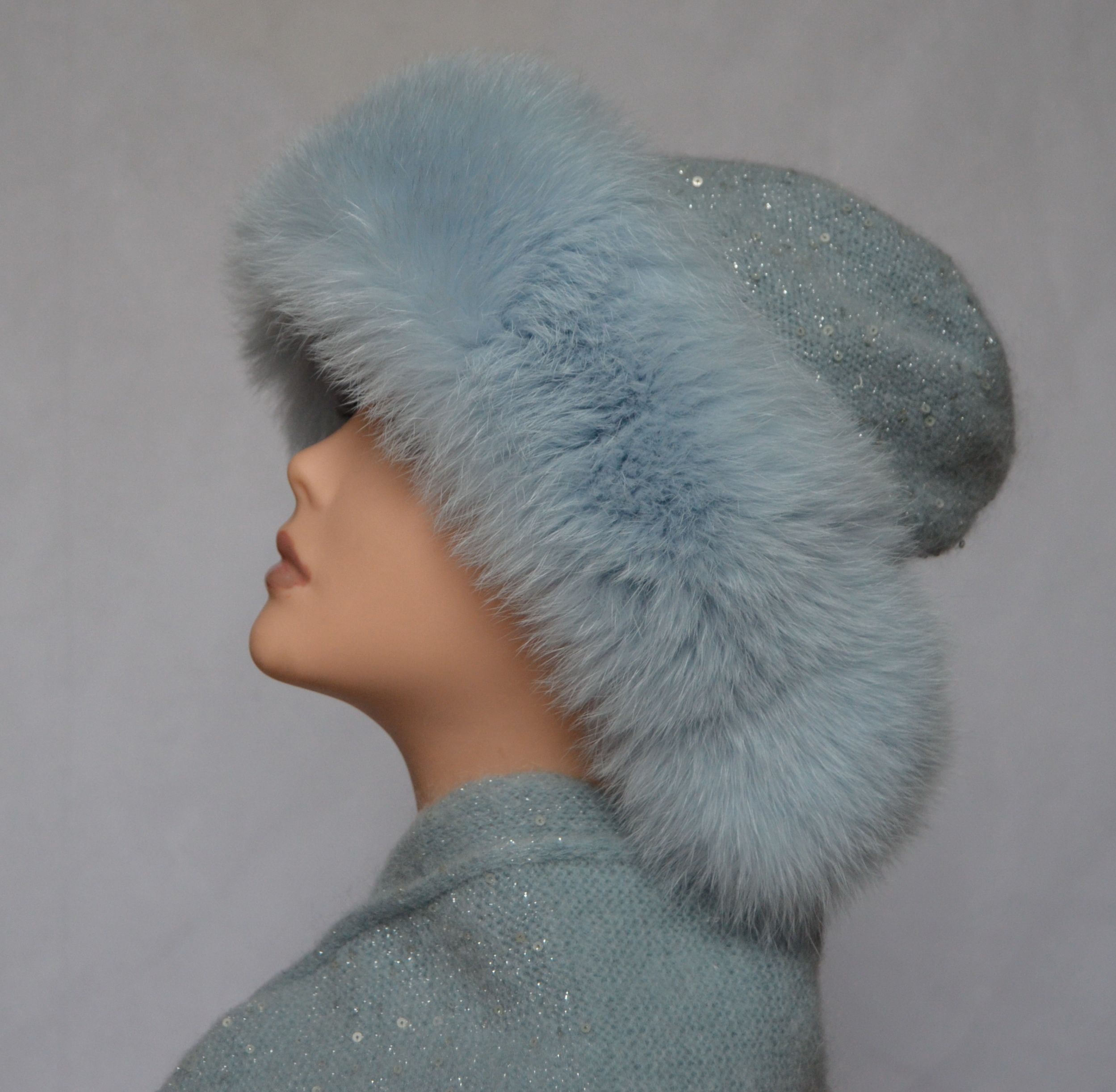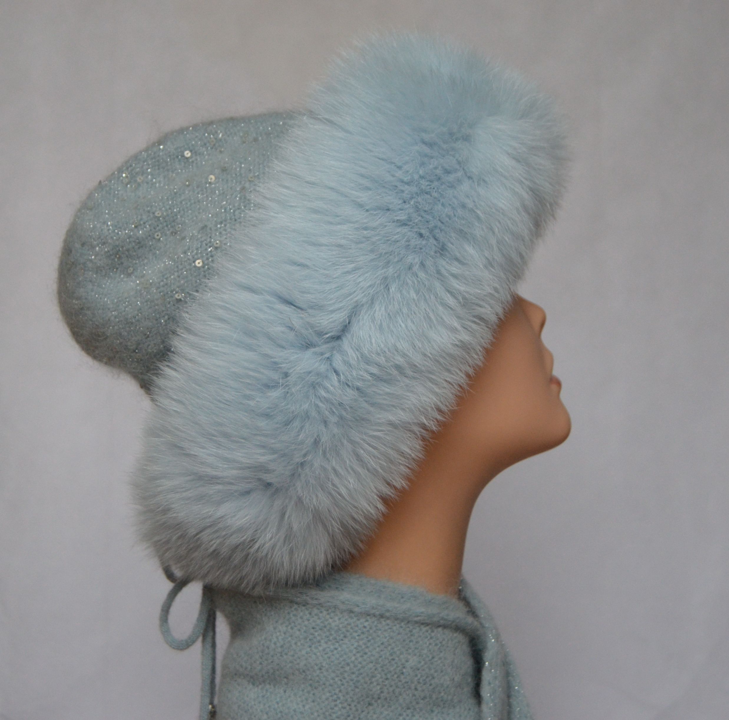 Вязаная голубая шапка с мехом Vizio Италия 6457 вязаная шапка с пайетками и меховой отделкой