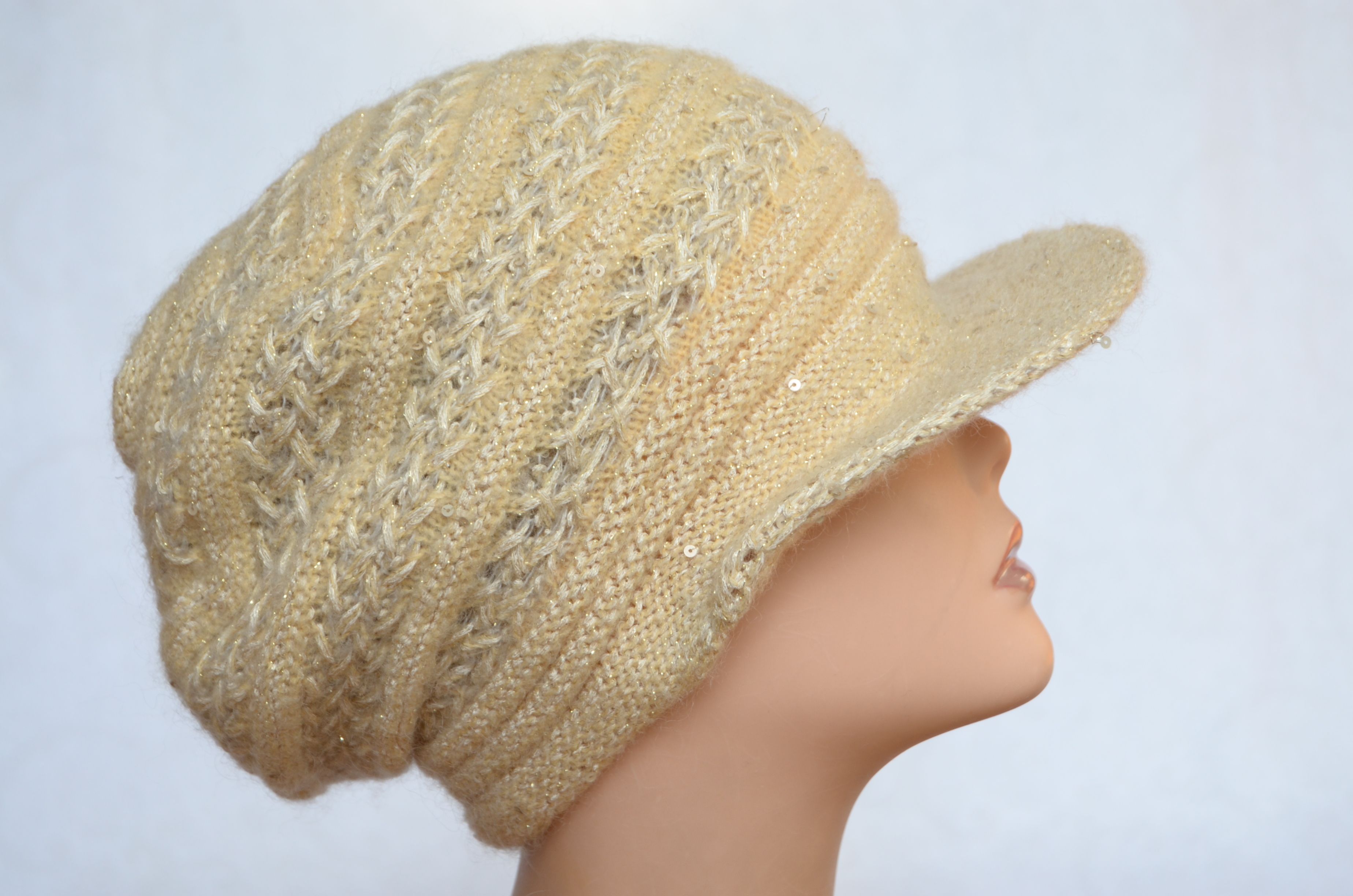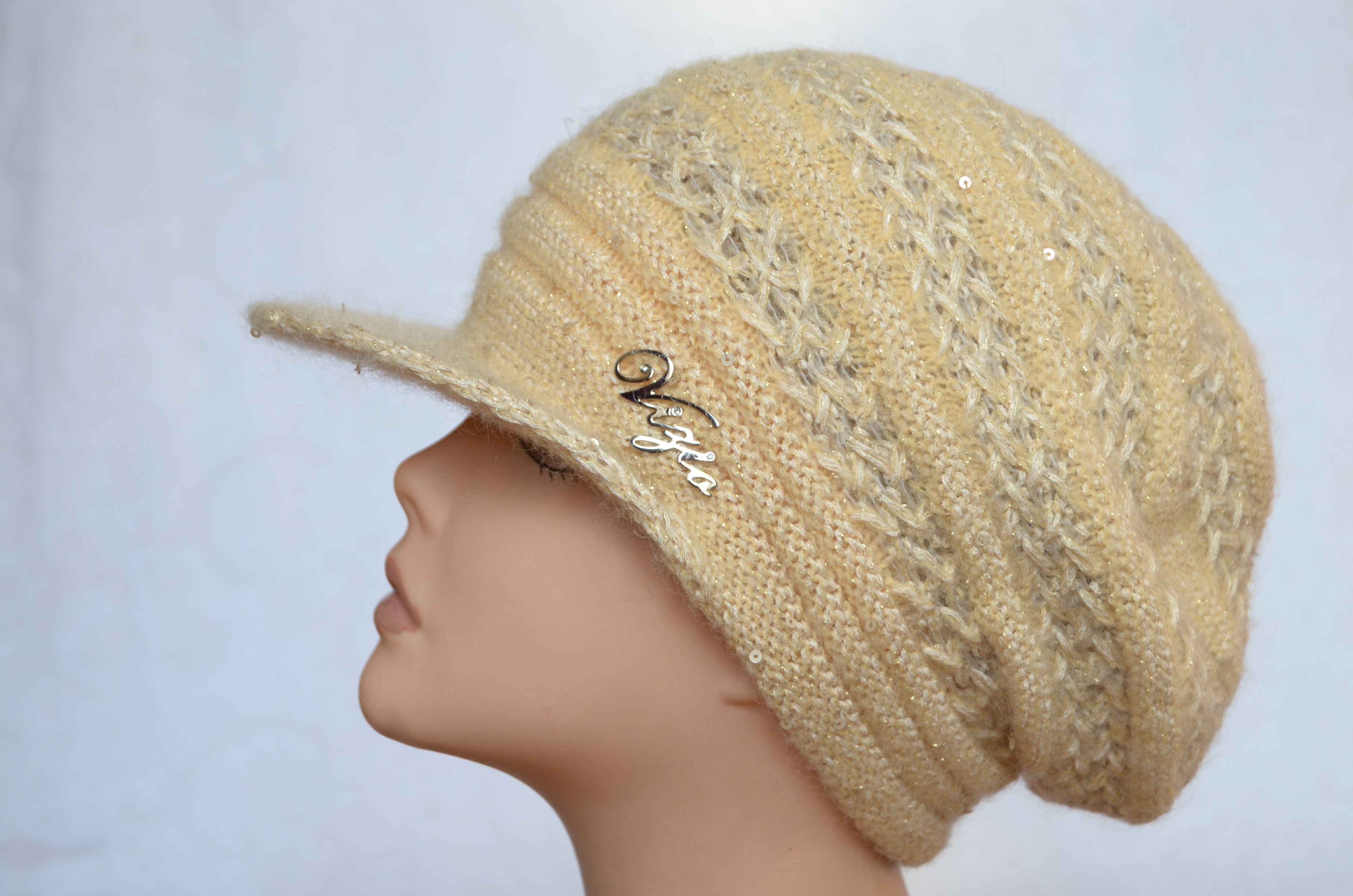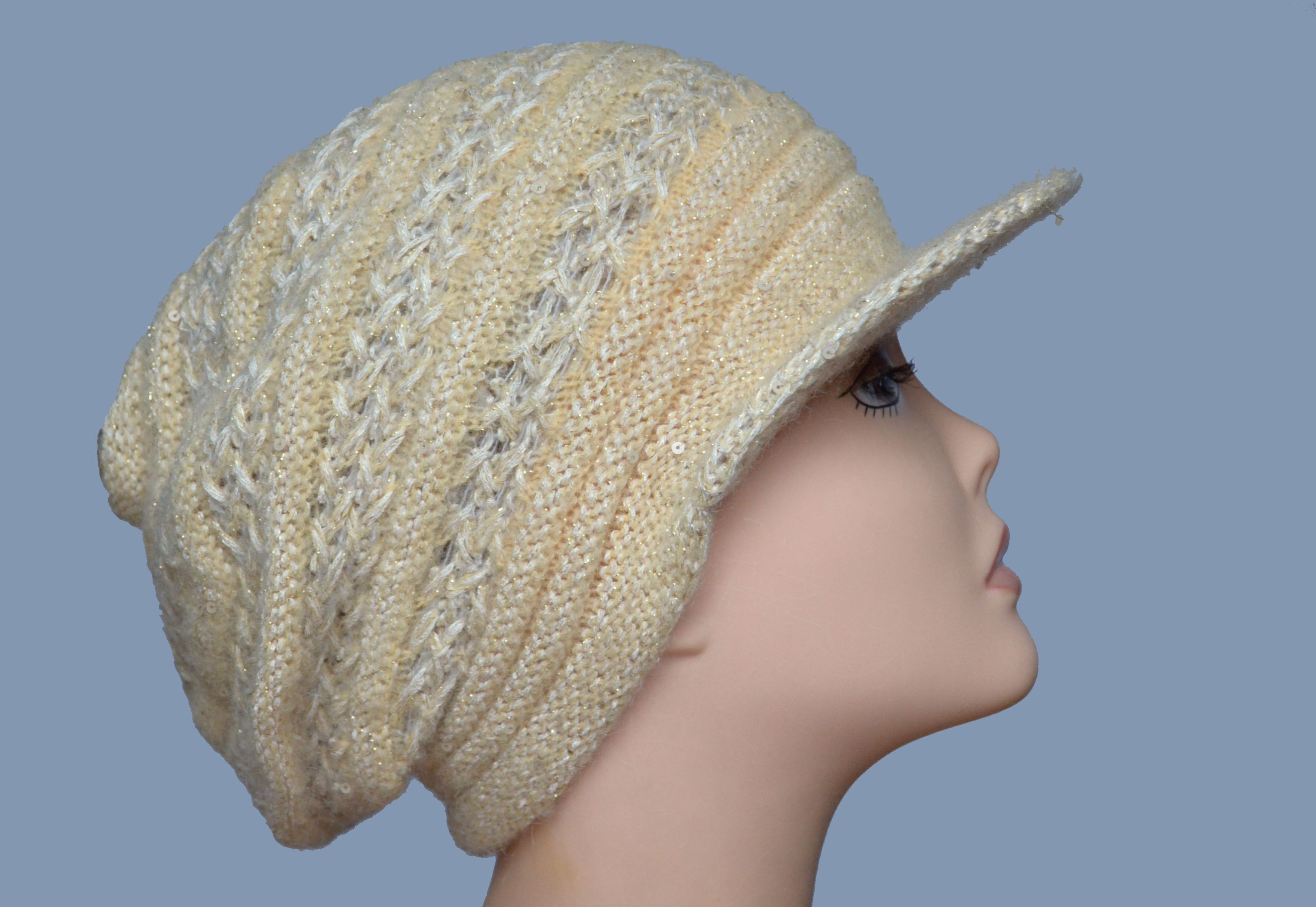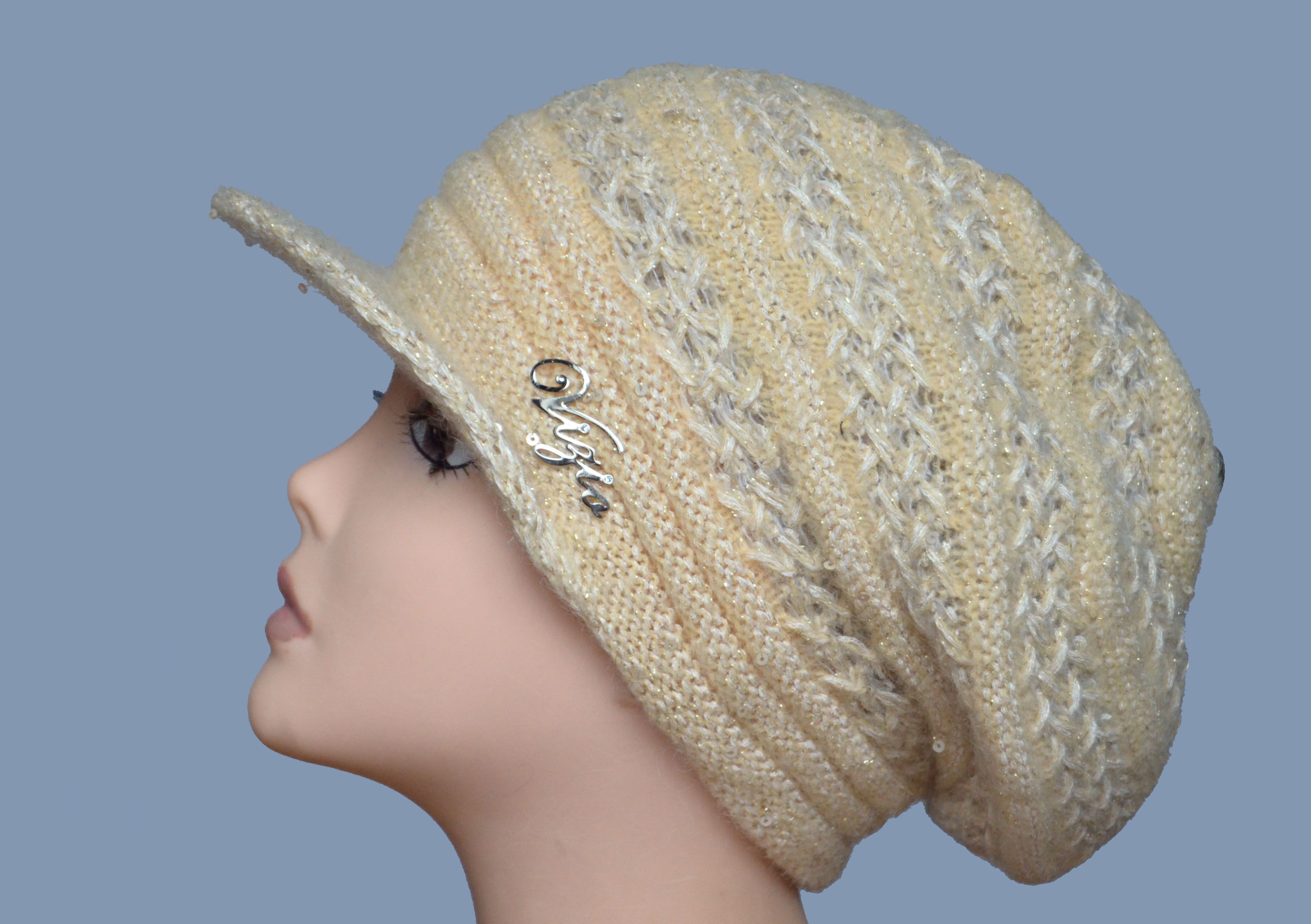Купить вязаную кепку песочного цвета итальянского производителя женских головных уборов Vizio Collezione в интернет магазине шапок и кепок из Италии с доставкой по Москве и России