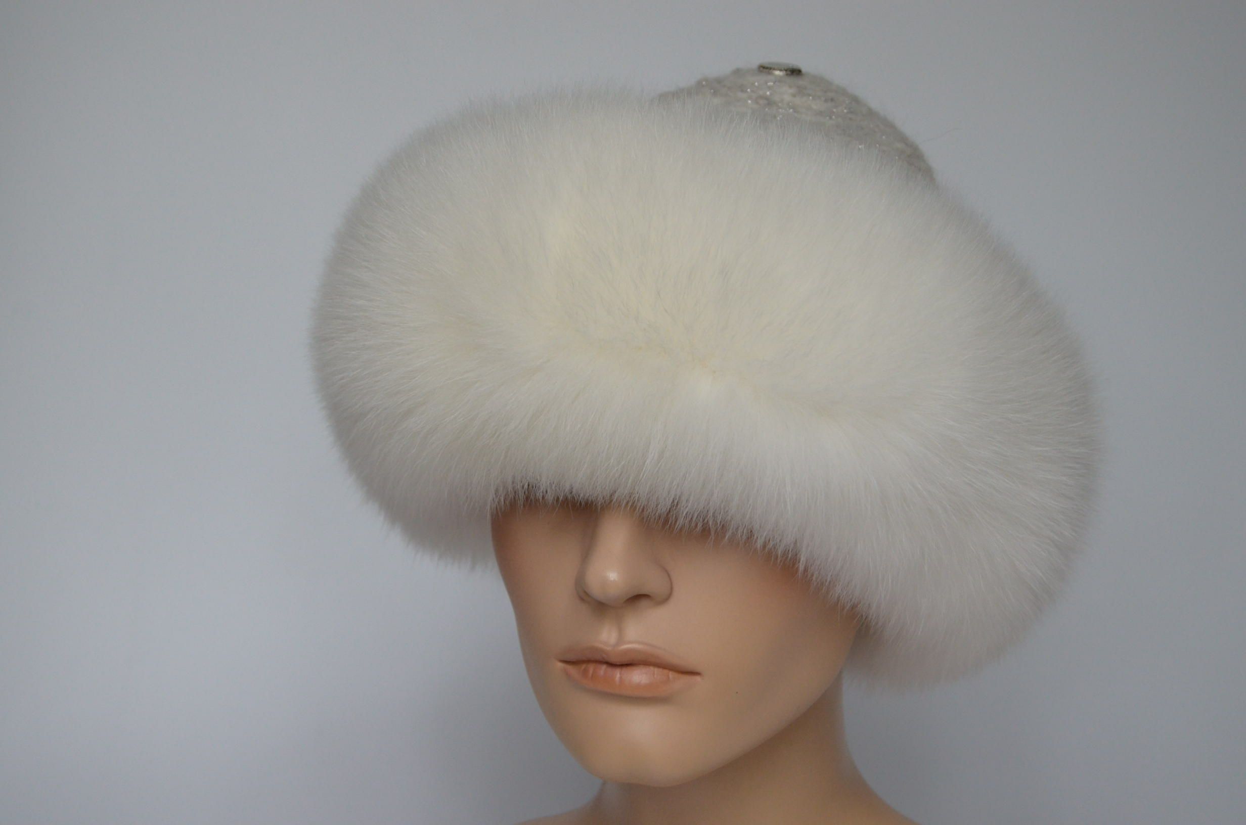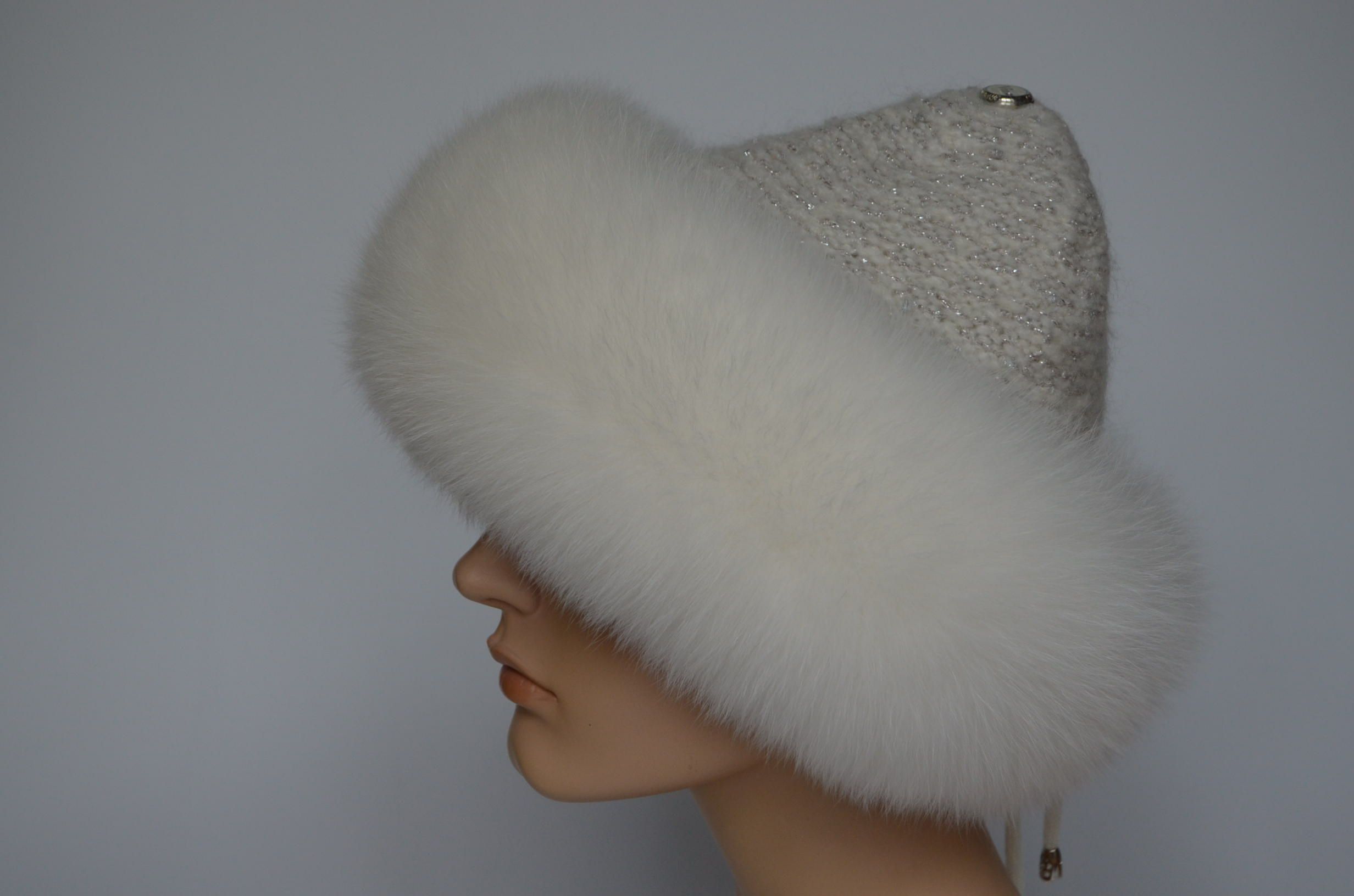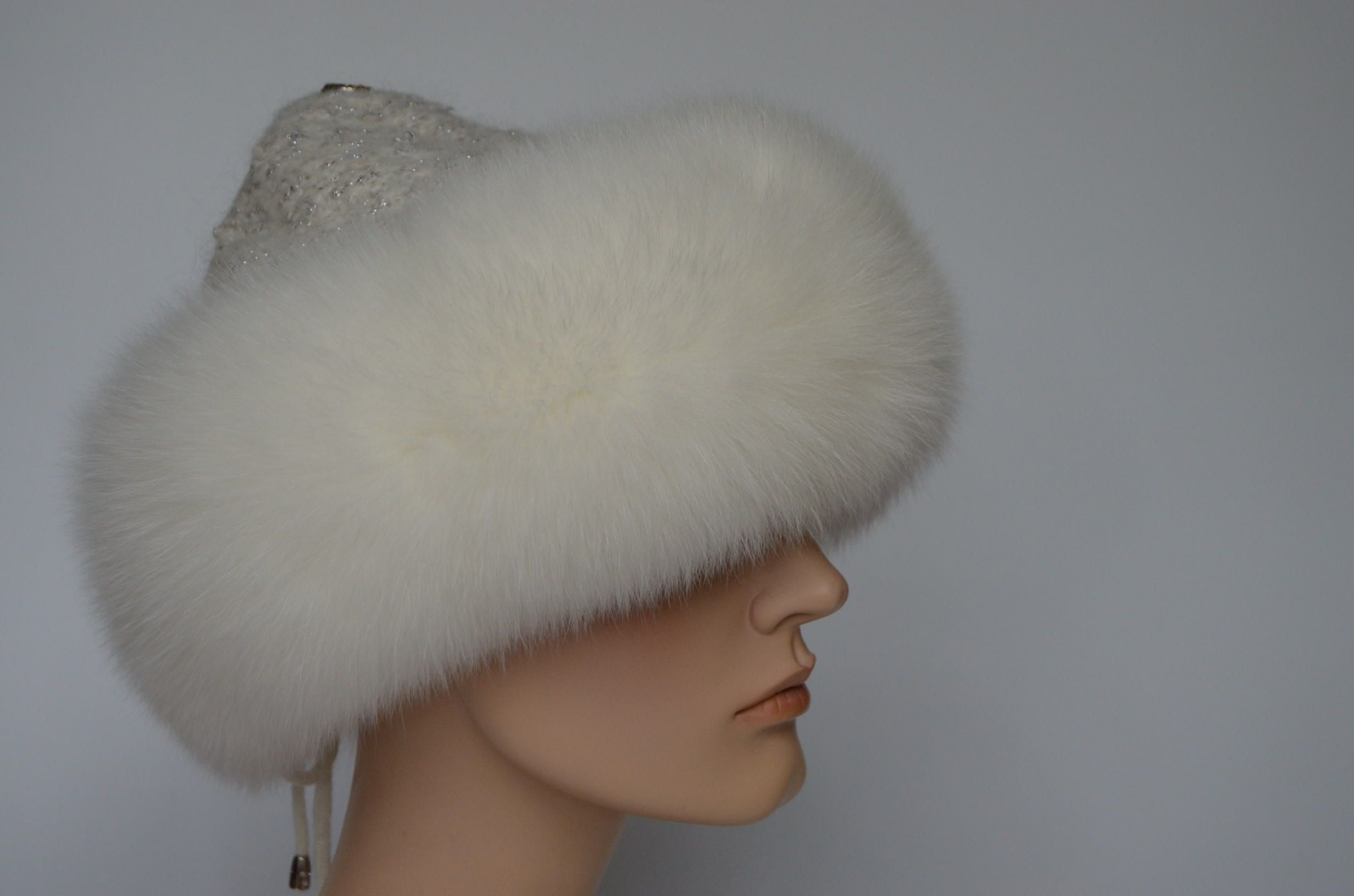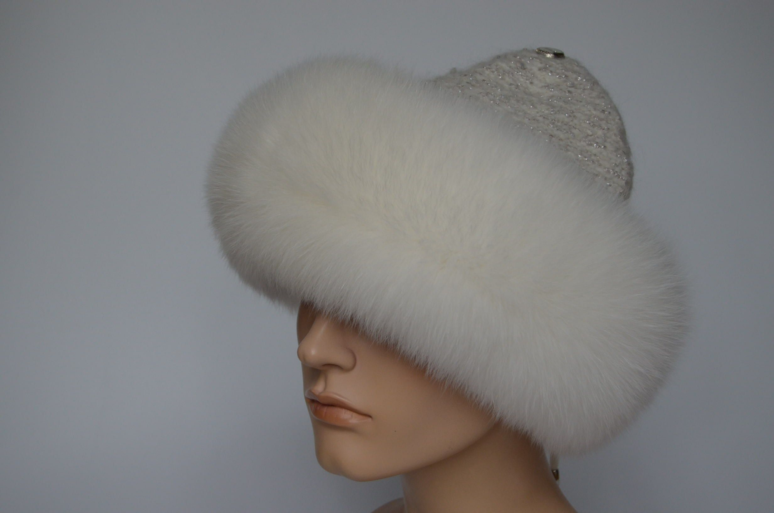 Меховая отделка вязаной шапки - мех песца