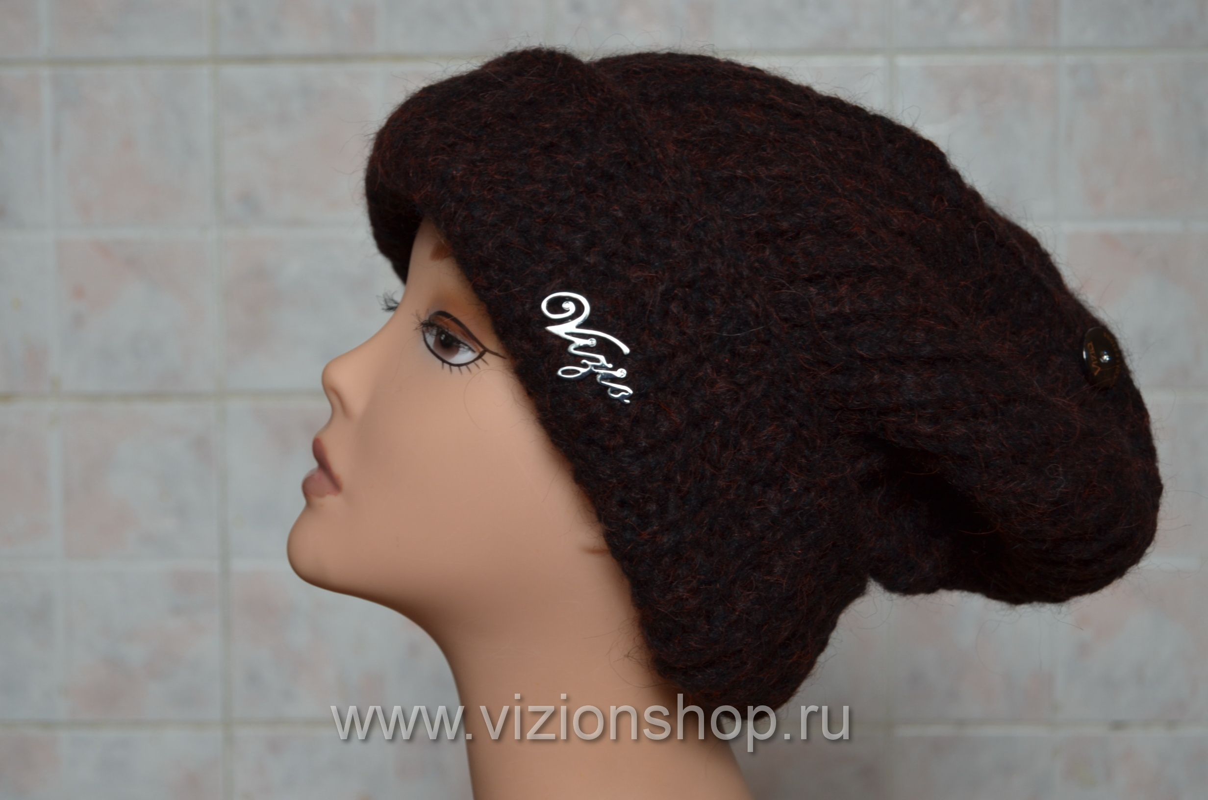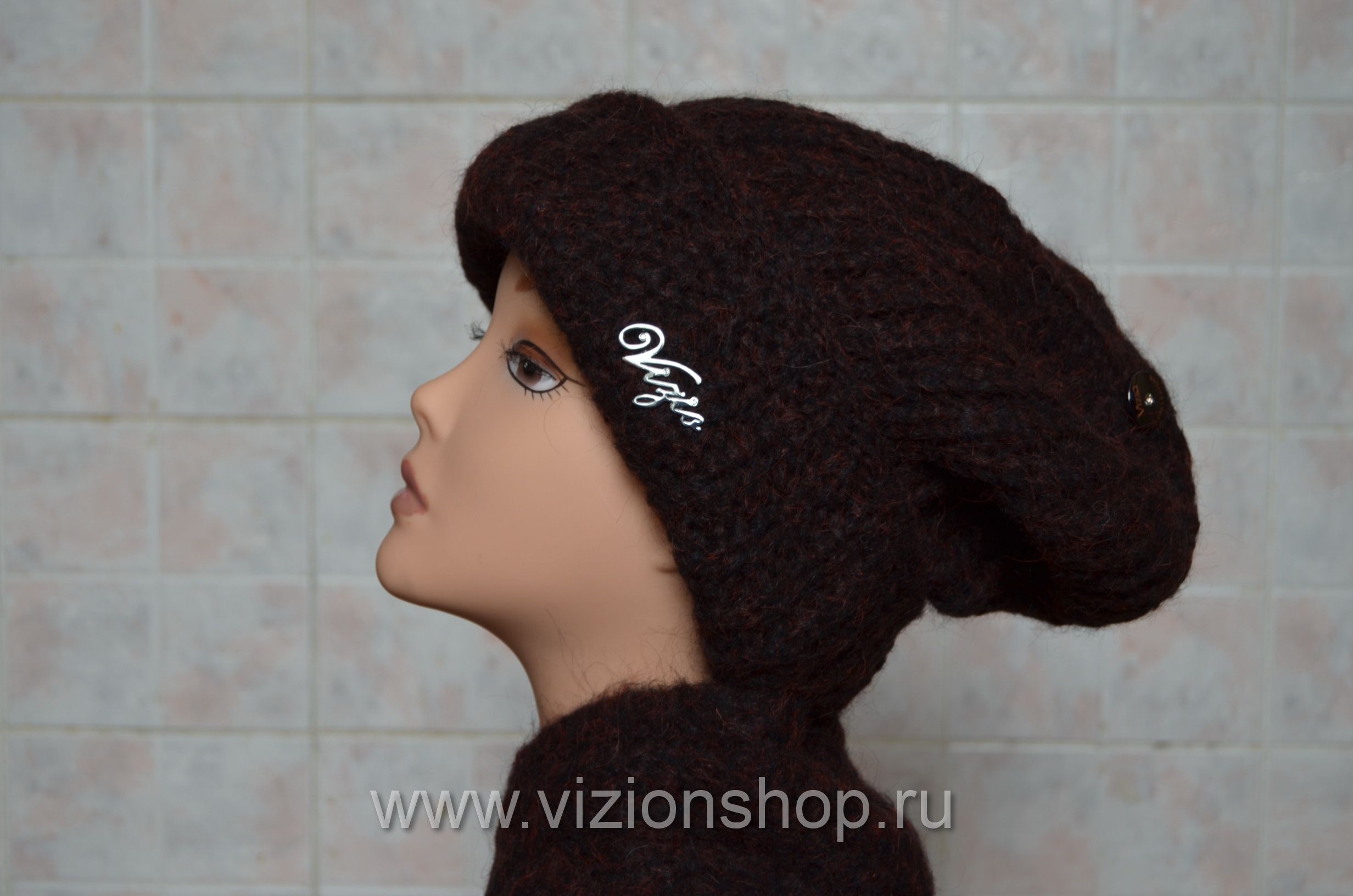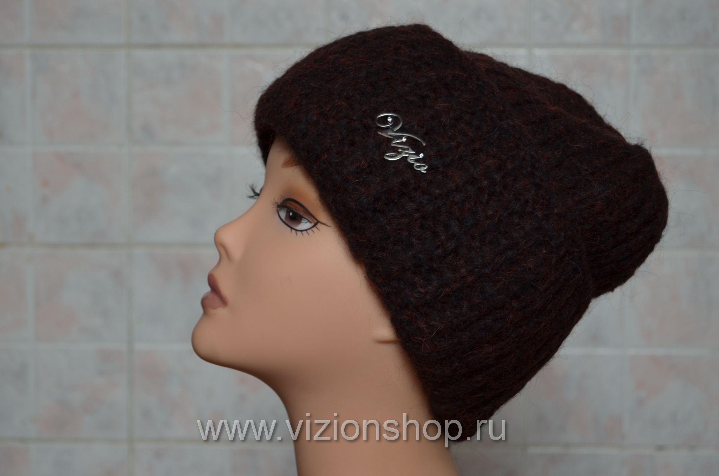 Шапка вязаная с отворотом для женщин из коллекции женских шапок зима из Италии Vizio 202 CR коричневая купить в интернет магазине женских головных уборов Италии в Москве