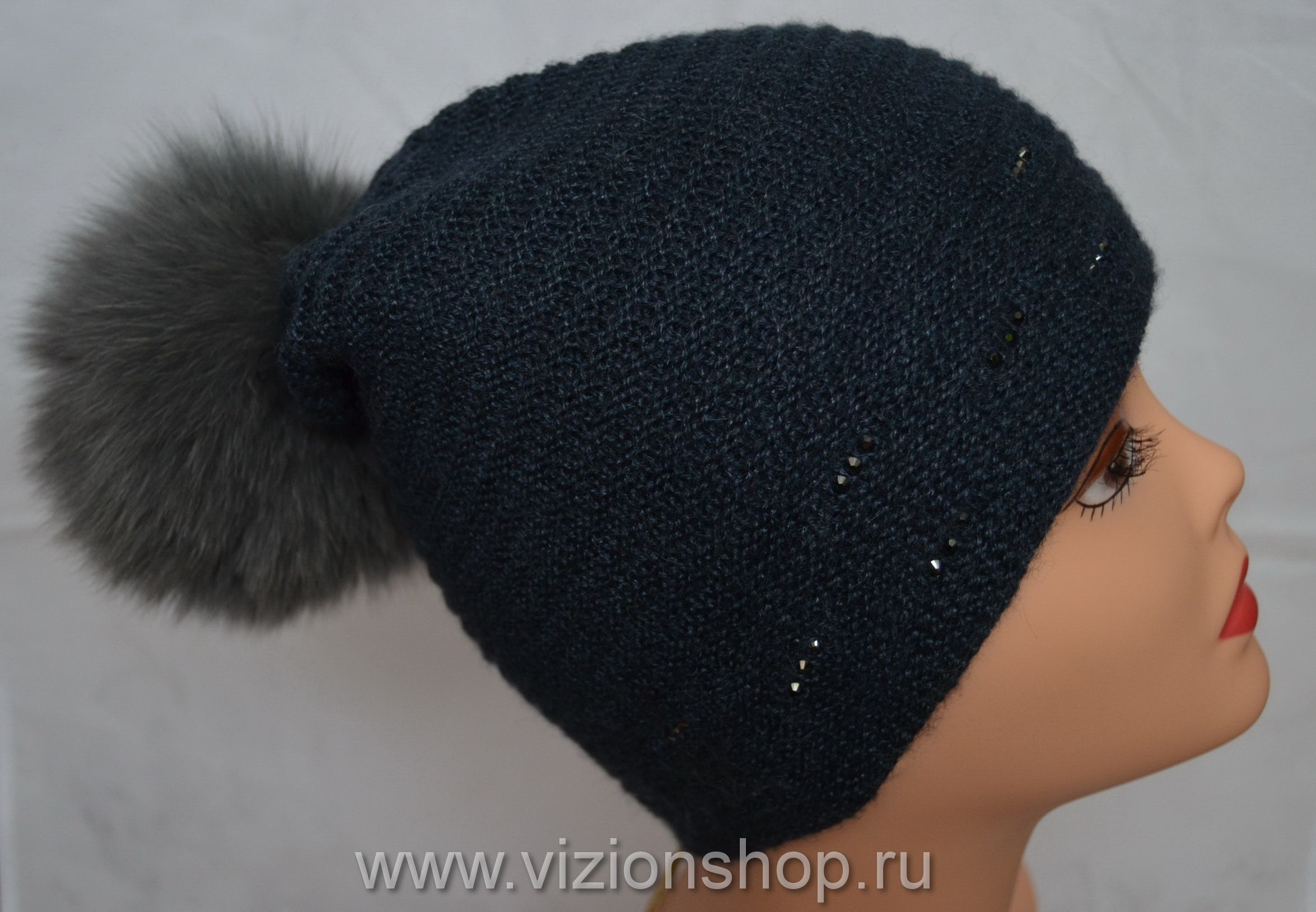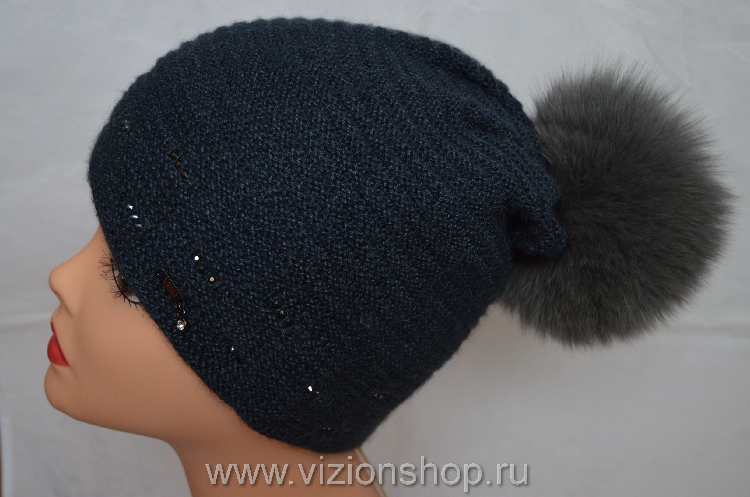 Вязаная шапка с помпоном женская Италия Vizio 5399 из коллекции женских вязаных шапок с помпоном от итальянского производителя женских шапок с помпонами Vizio Collezione