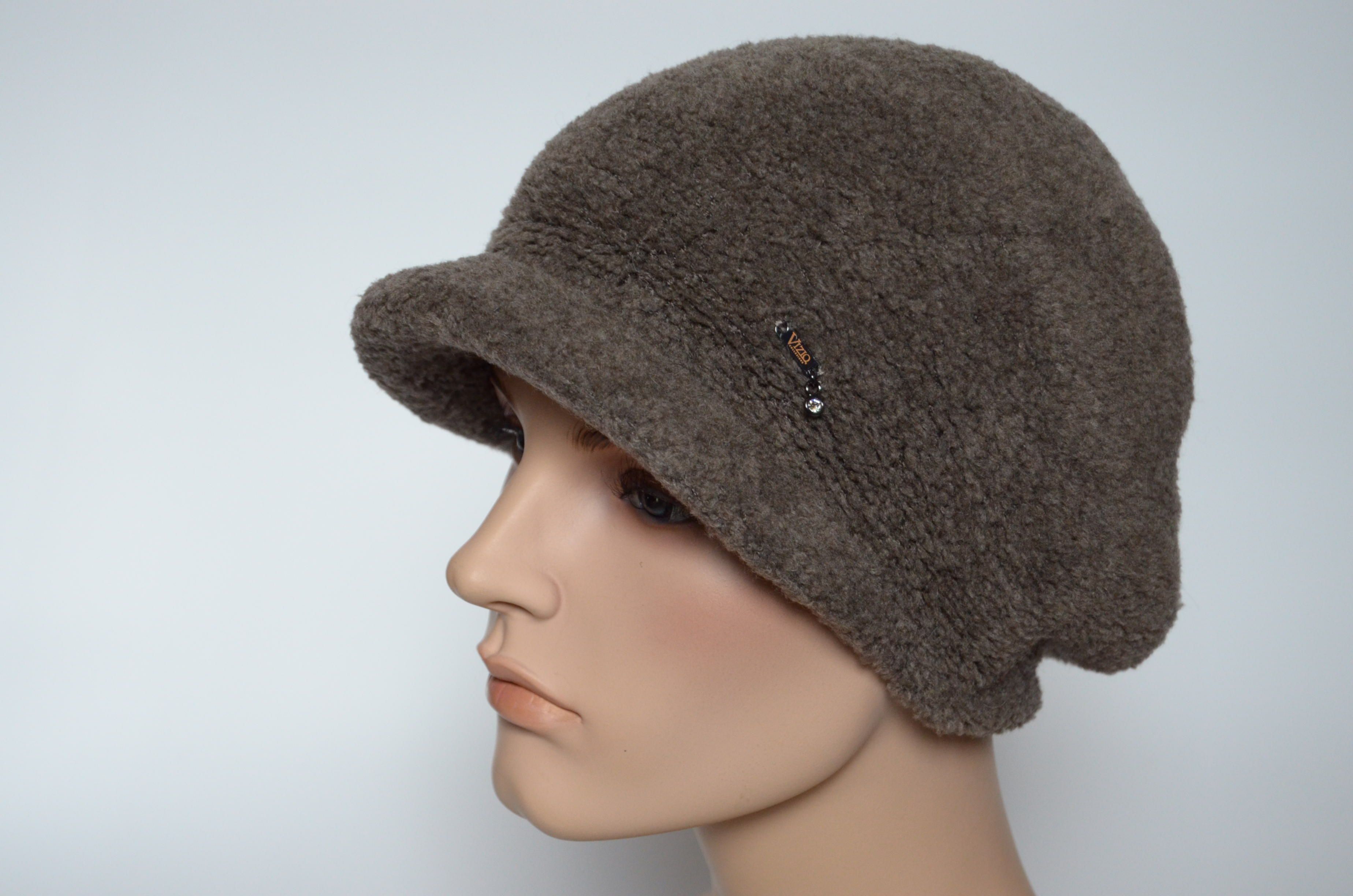 Вязаная кепка зимняя для женщин Vizio 6962 орехового цвета коллекция зимних шапок и кепок Визио купить в интернет магазине итальянских головных уборов Vizio Collezione