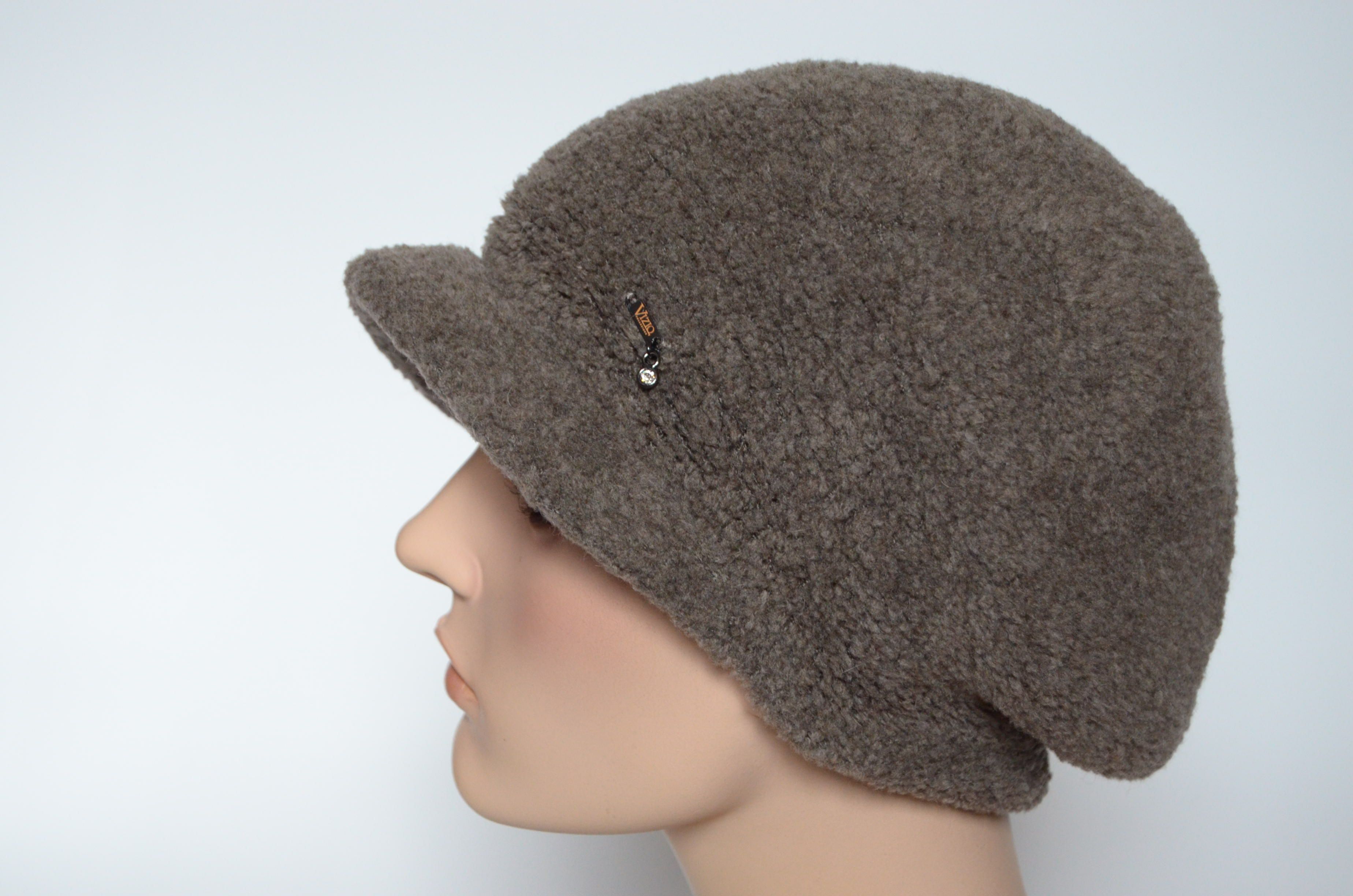 Вязаная кепка женская зимняя Vizio Италия 6962 ореховая зимняя коллекция итальянского производителя вязаных шапок и кепок для женщин Vizio Collezione