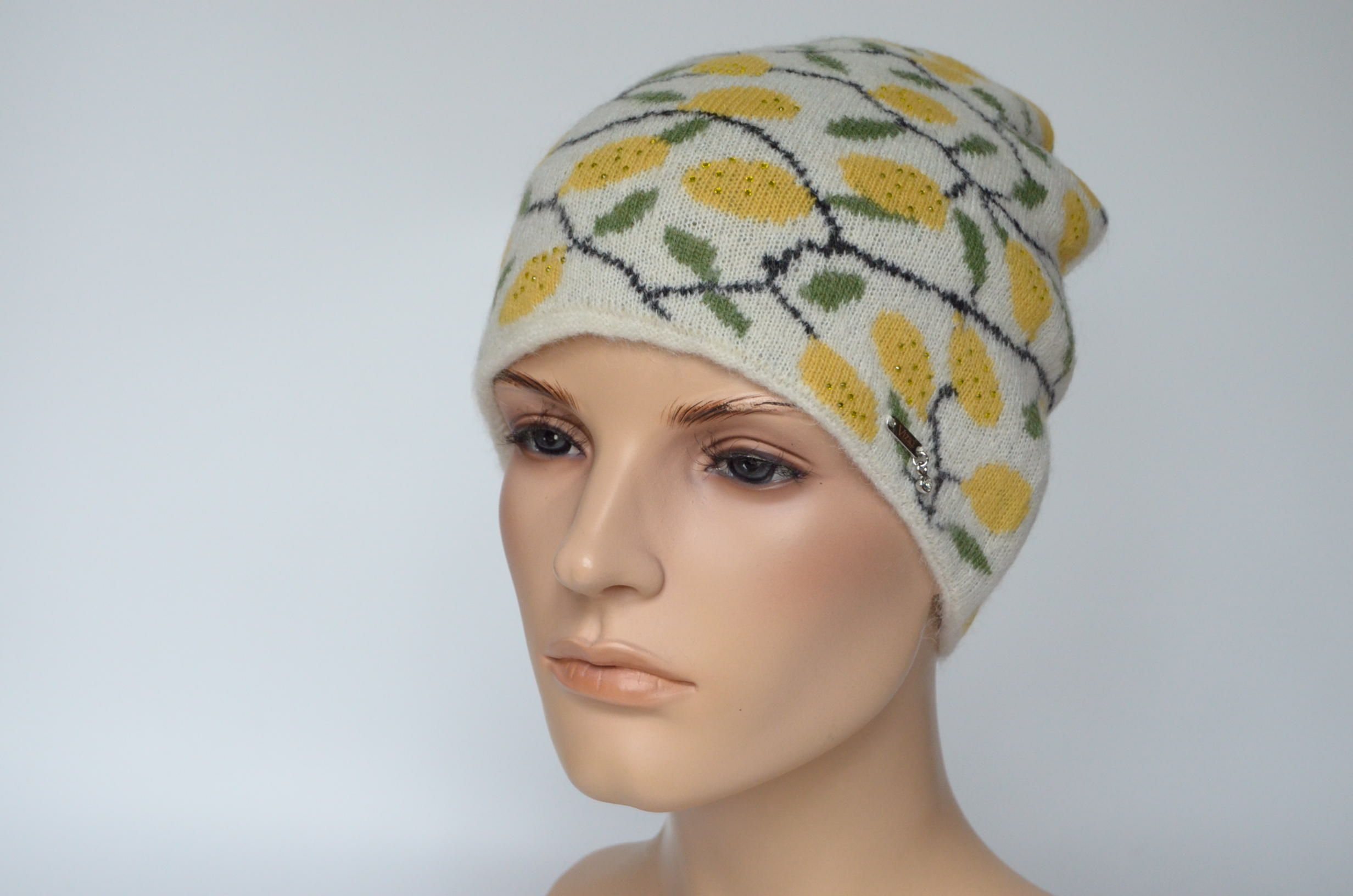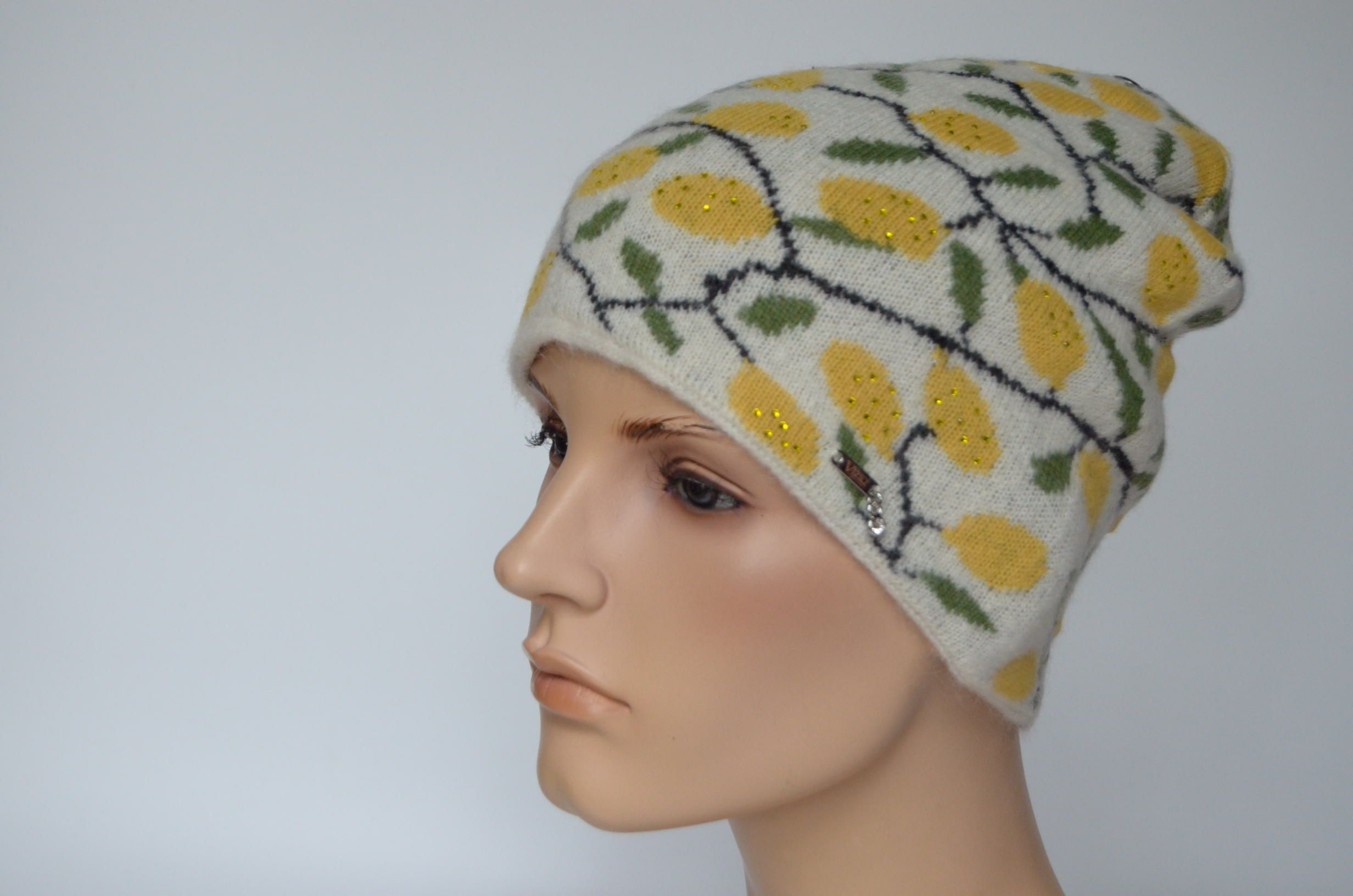 Модная вязаная шапка с лимонами женская Vizio Италия 1032 CY коллекция модных головных уборов в расцветке лимоны зима 2024