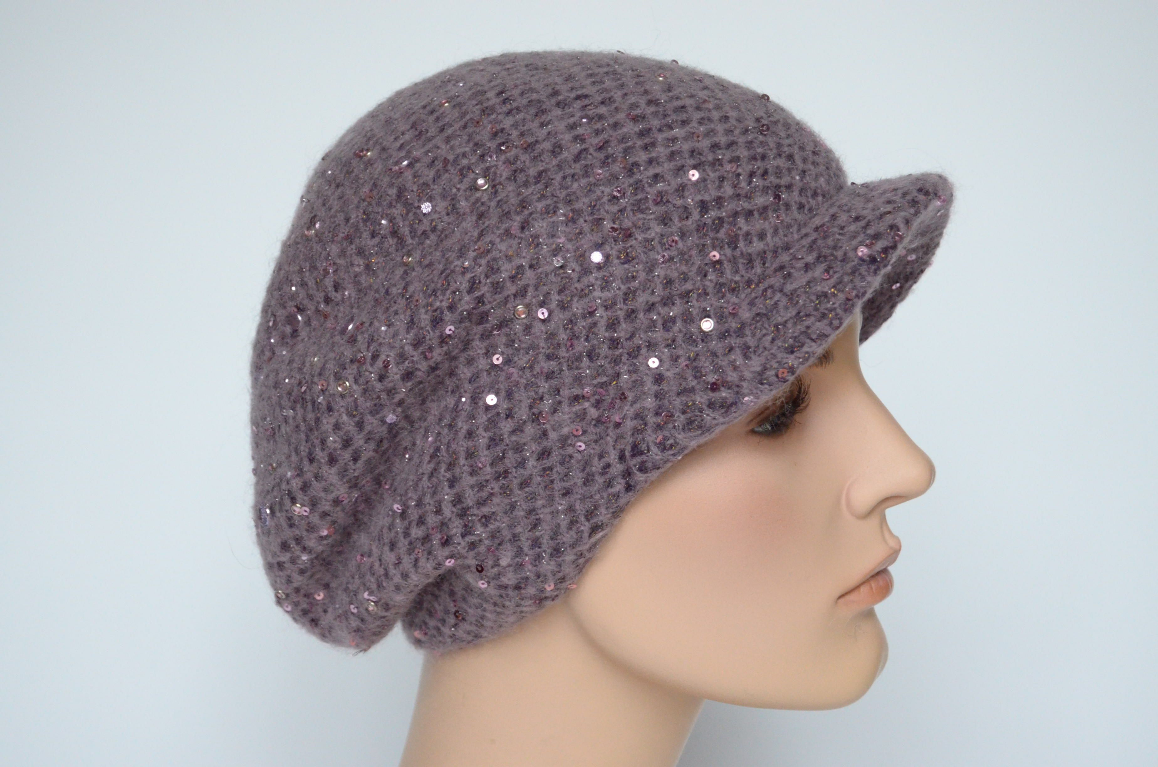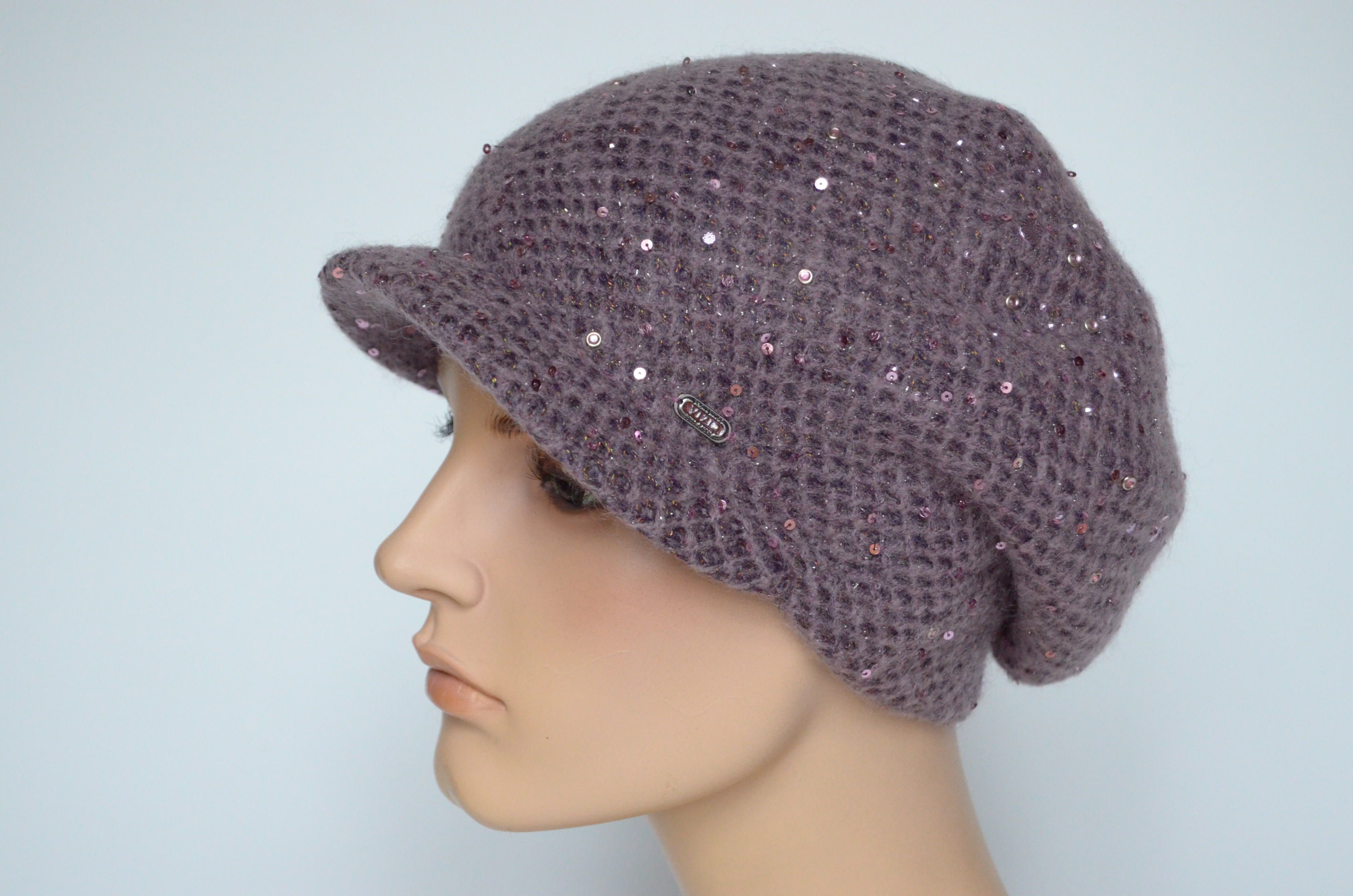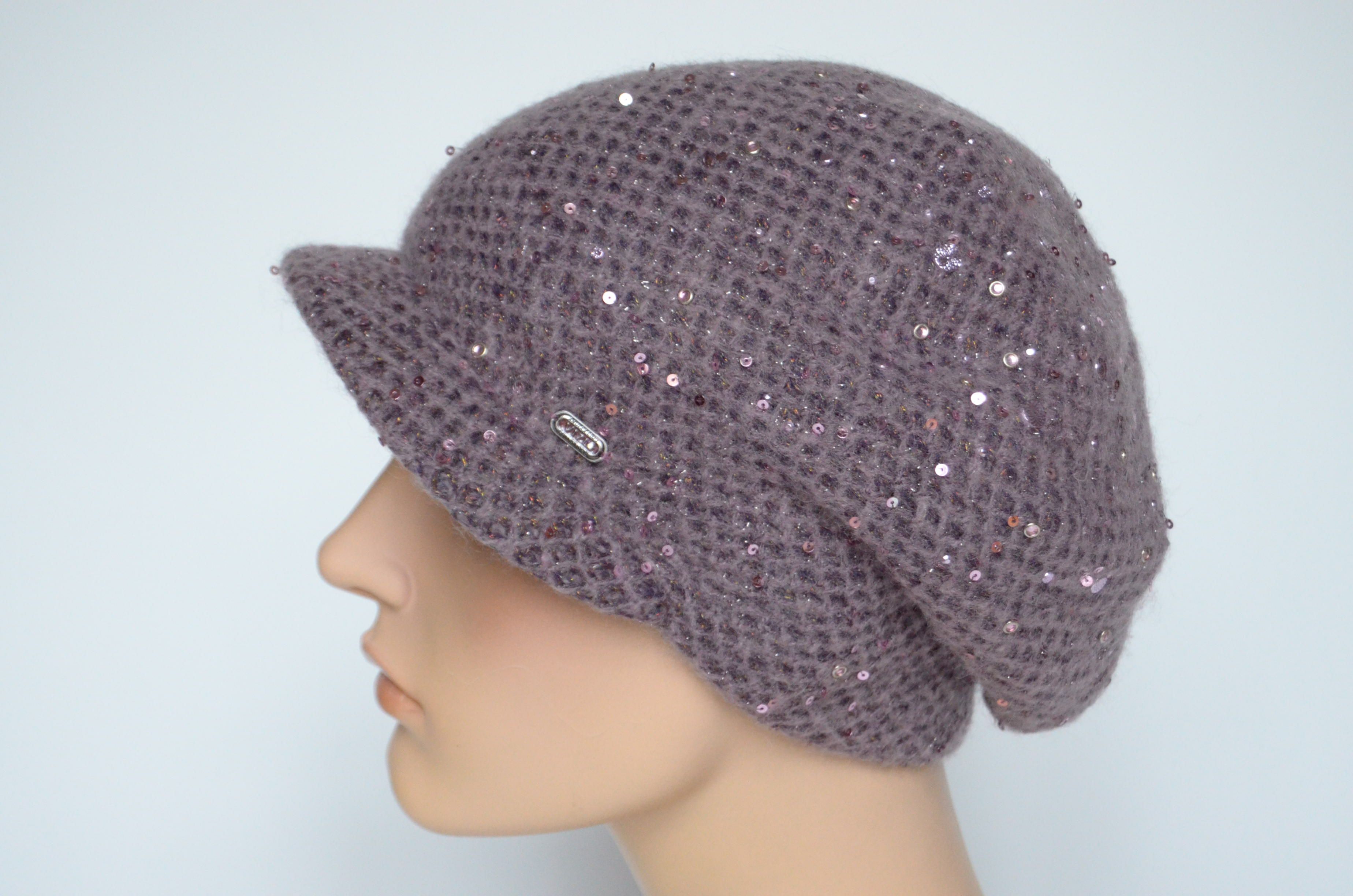 Берет вязаный с козырьком для женщин Италия Визио Vizio 6161 сиреневого цвета коллекция женских головных уборов купить в интернет магазине женских шапок и кепок
