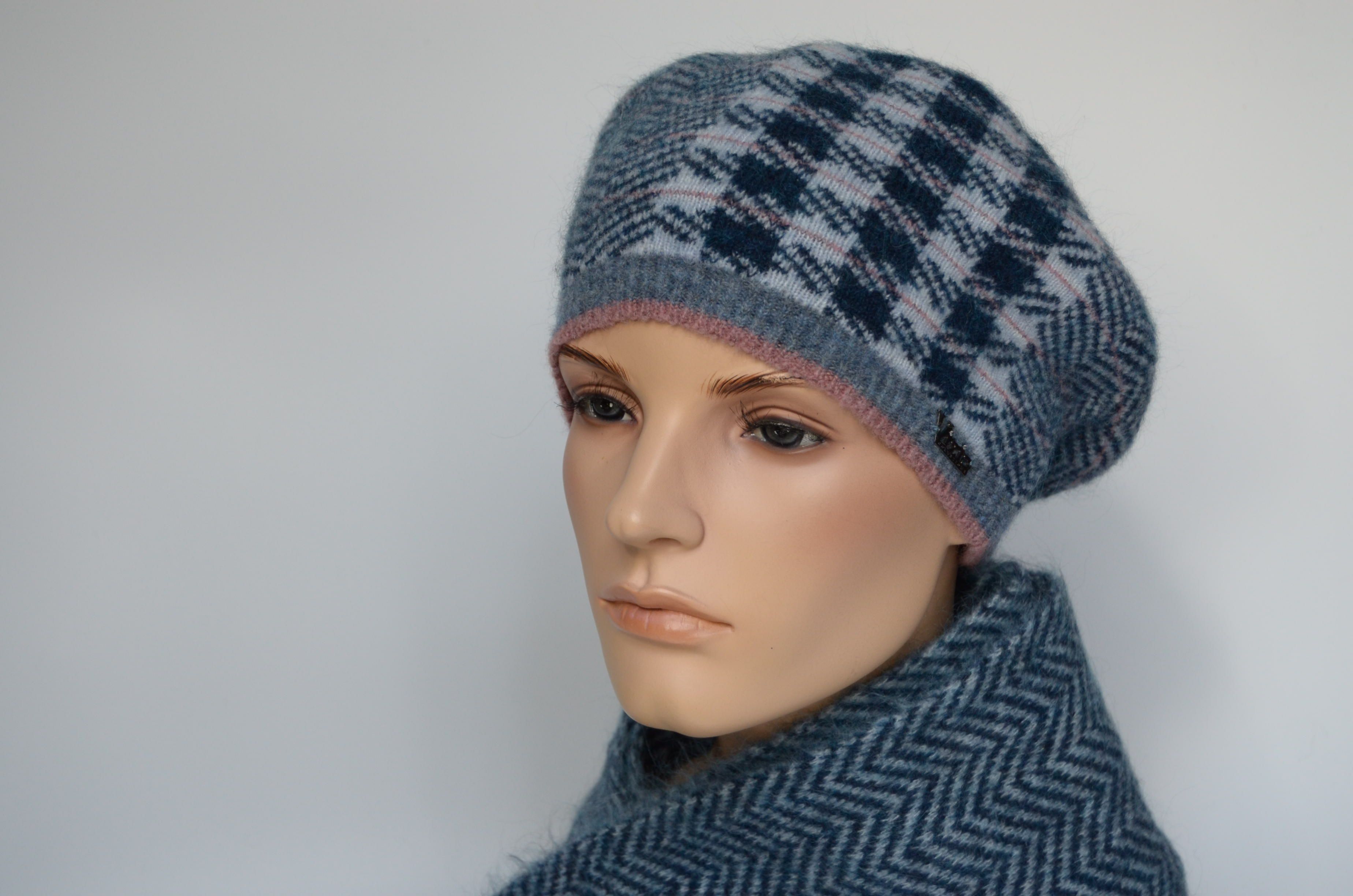 Купить вязаный берет в клетку для женщин Визио Италия зима 2022 - 2023 в интернет магазине вязаных женских итальянских беретов и шапок с доставкой по Москве и России
