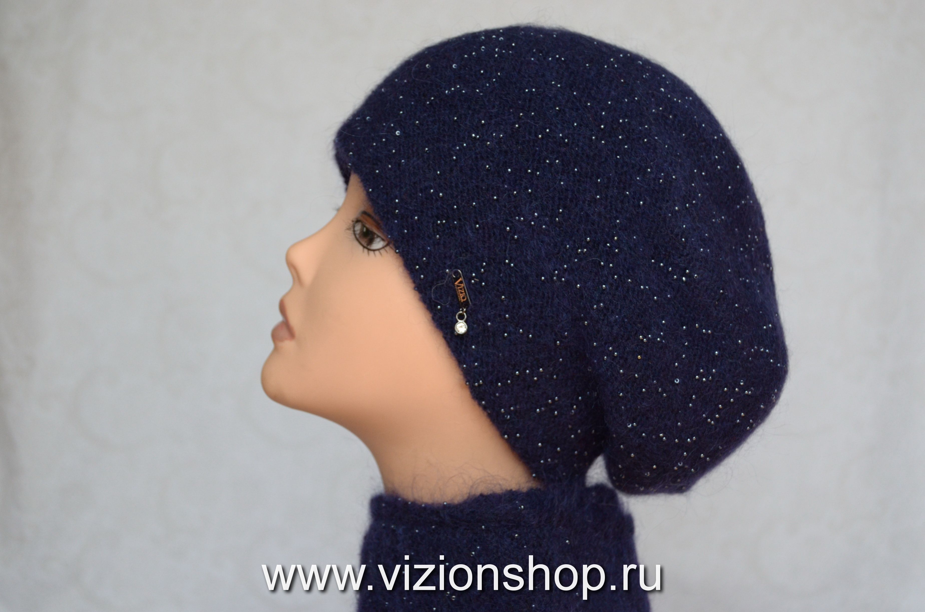 Берет итальянский с бисером женский вязаный Vizio Collezione 6459 зима 2020 в интернет магазине головных уборов Италии