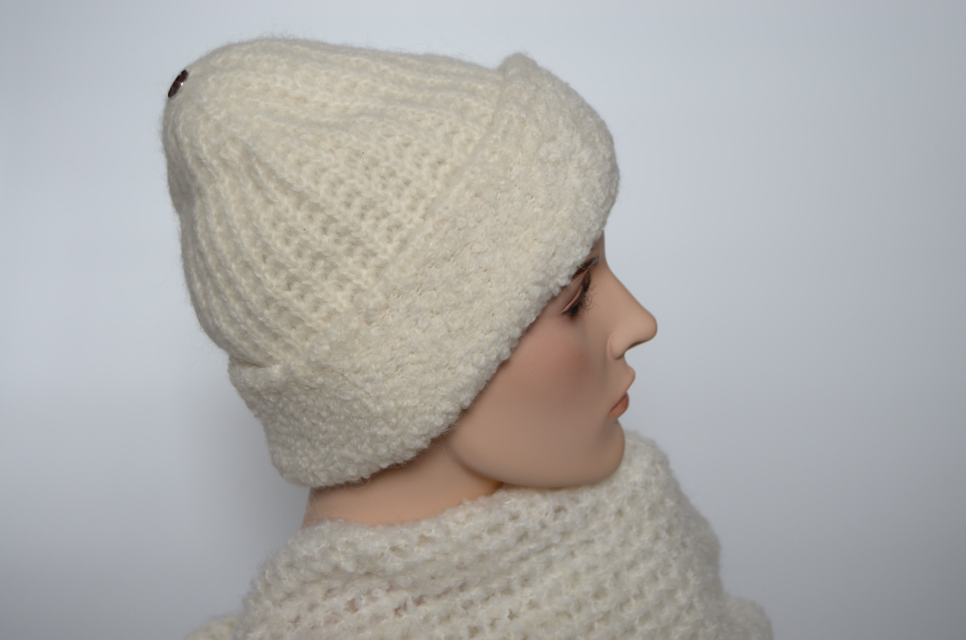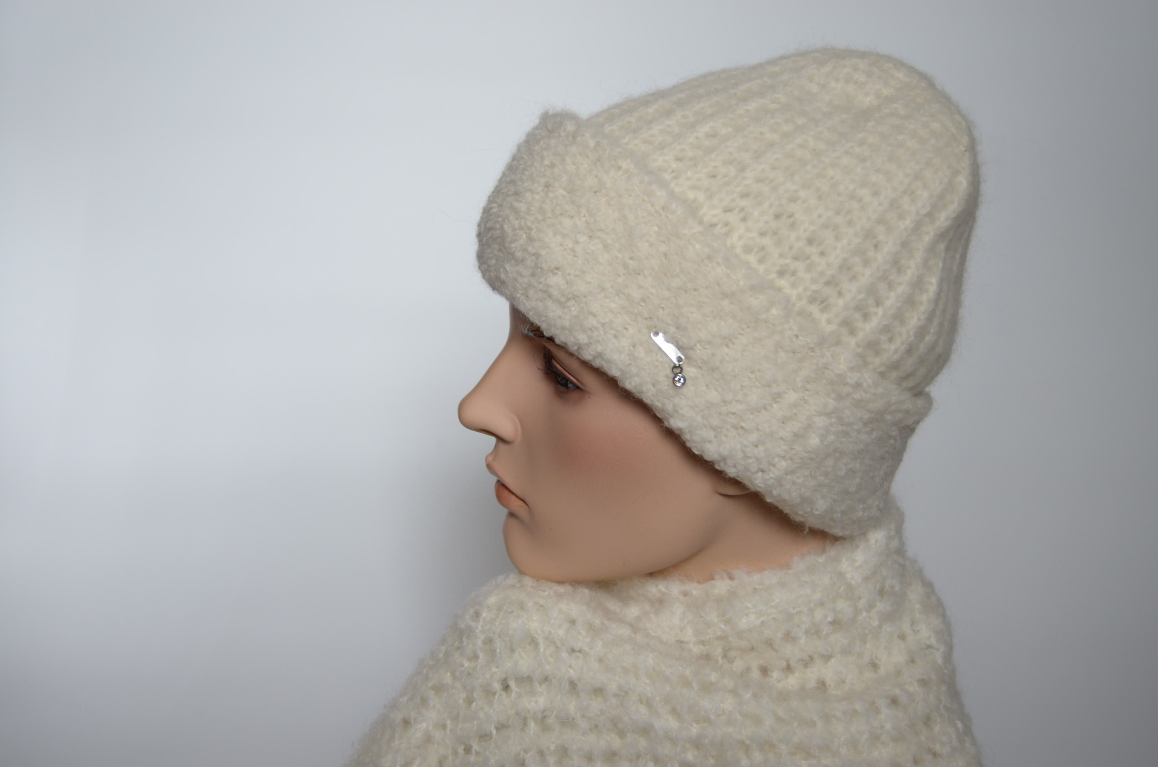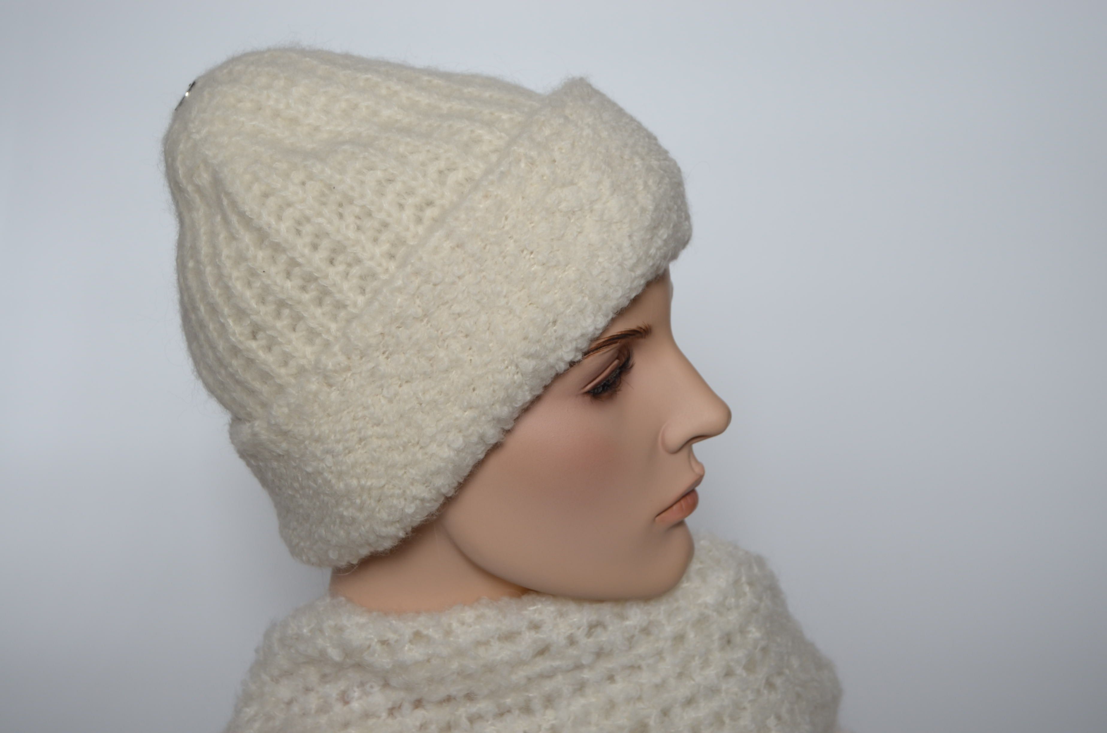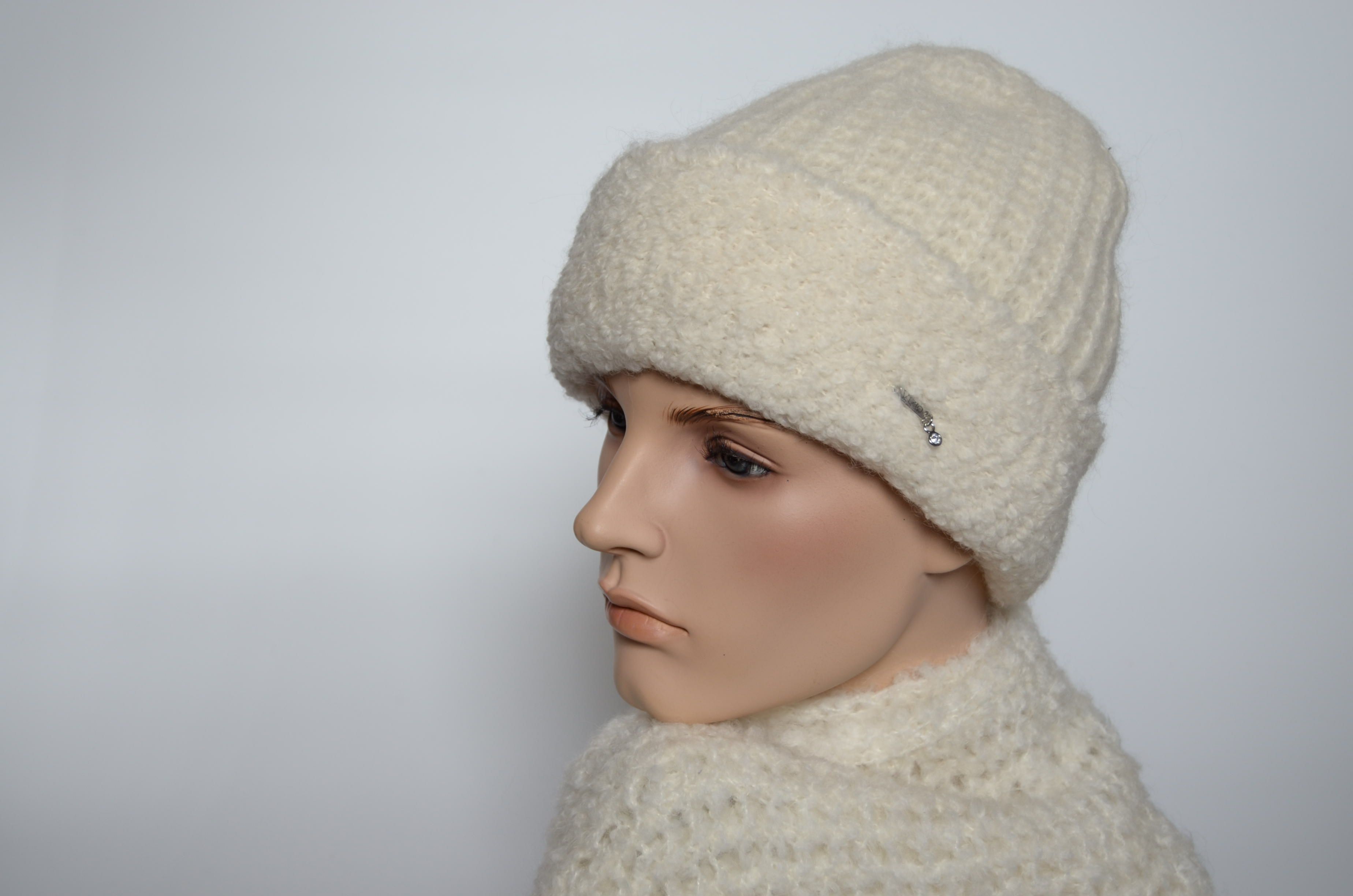 Женский комплект шапка с отворотом Vizio Визио Италия 6270 CR и широкий шарф Vizio 6753 вязаный комплект из зимней коллекции вязаных шапок Италии и шарфов в интернет магазине итальянских женских головных уборов