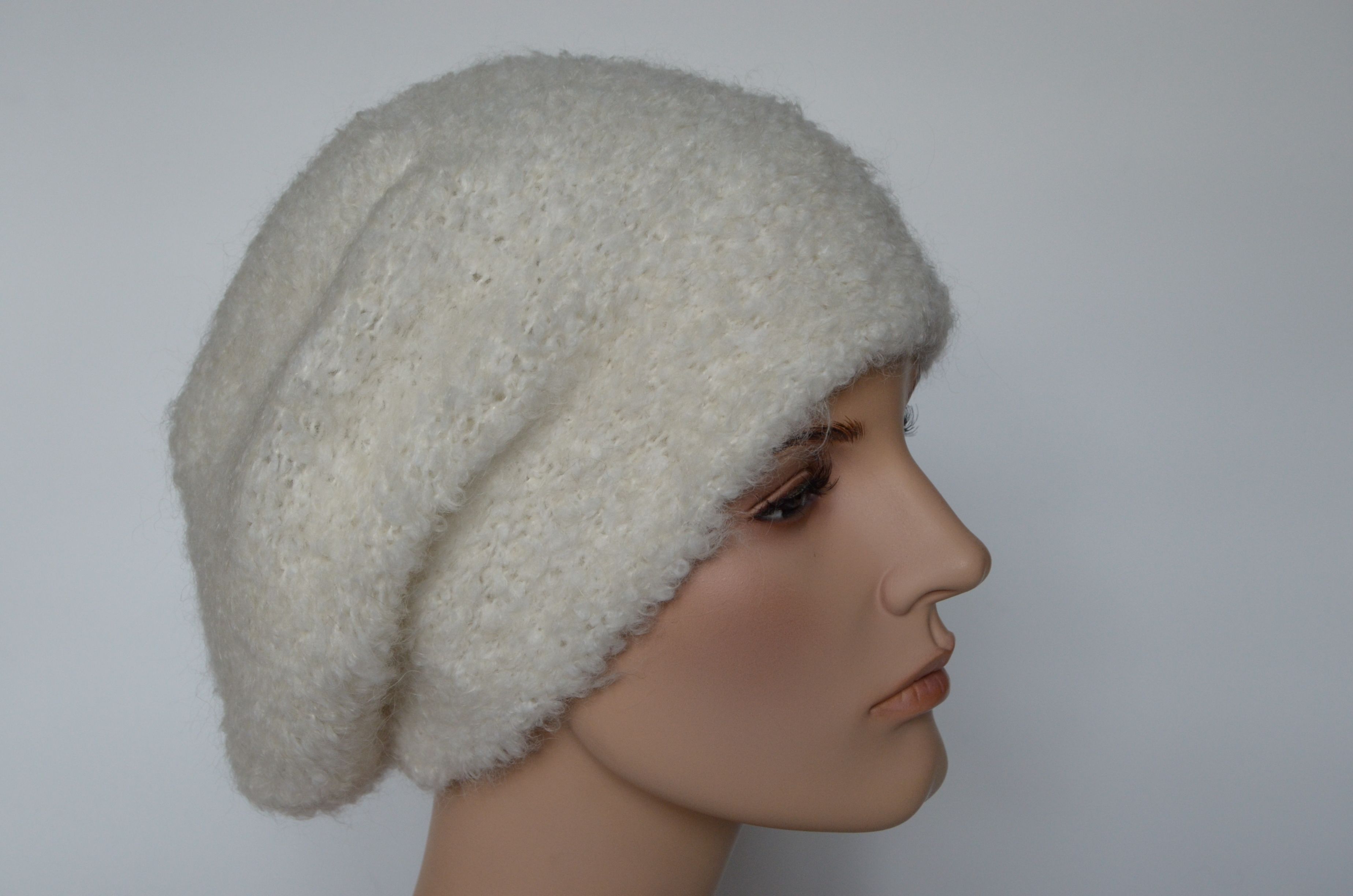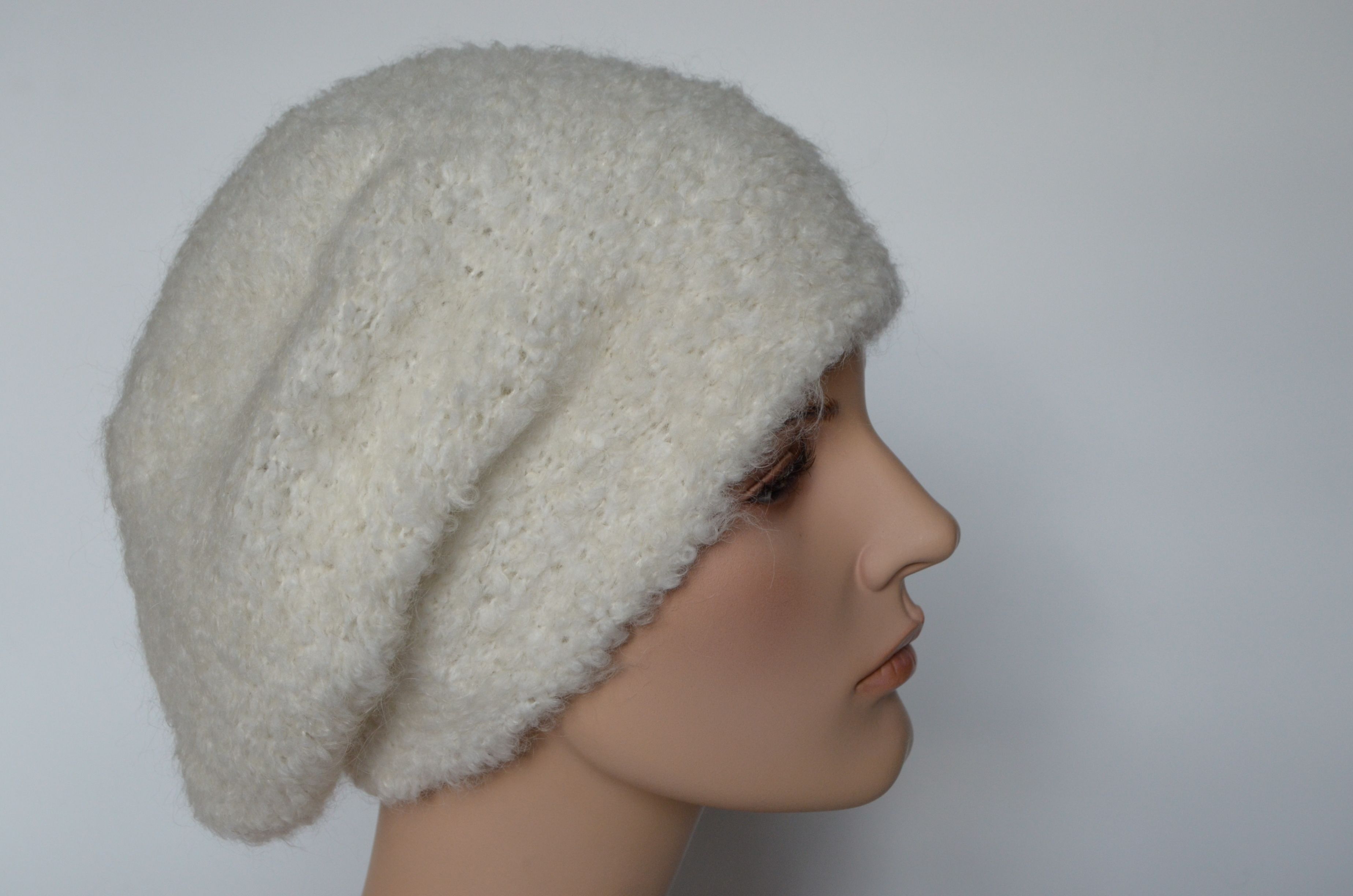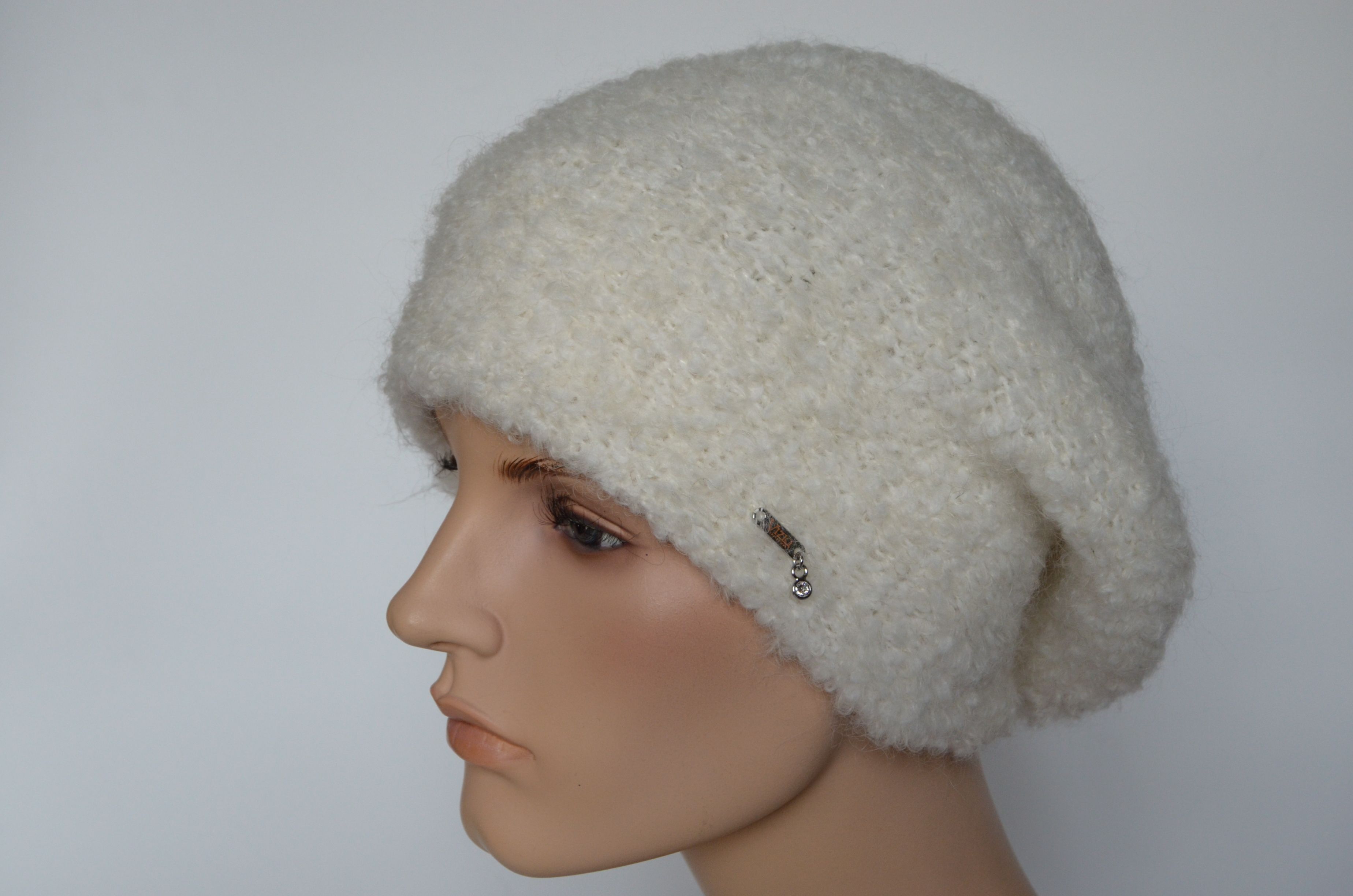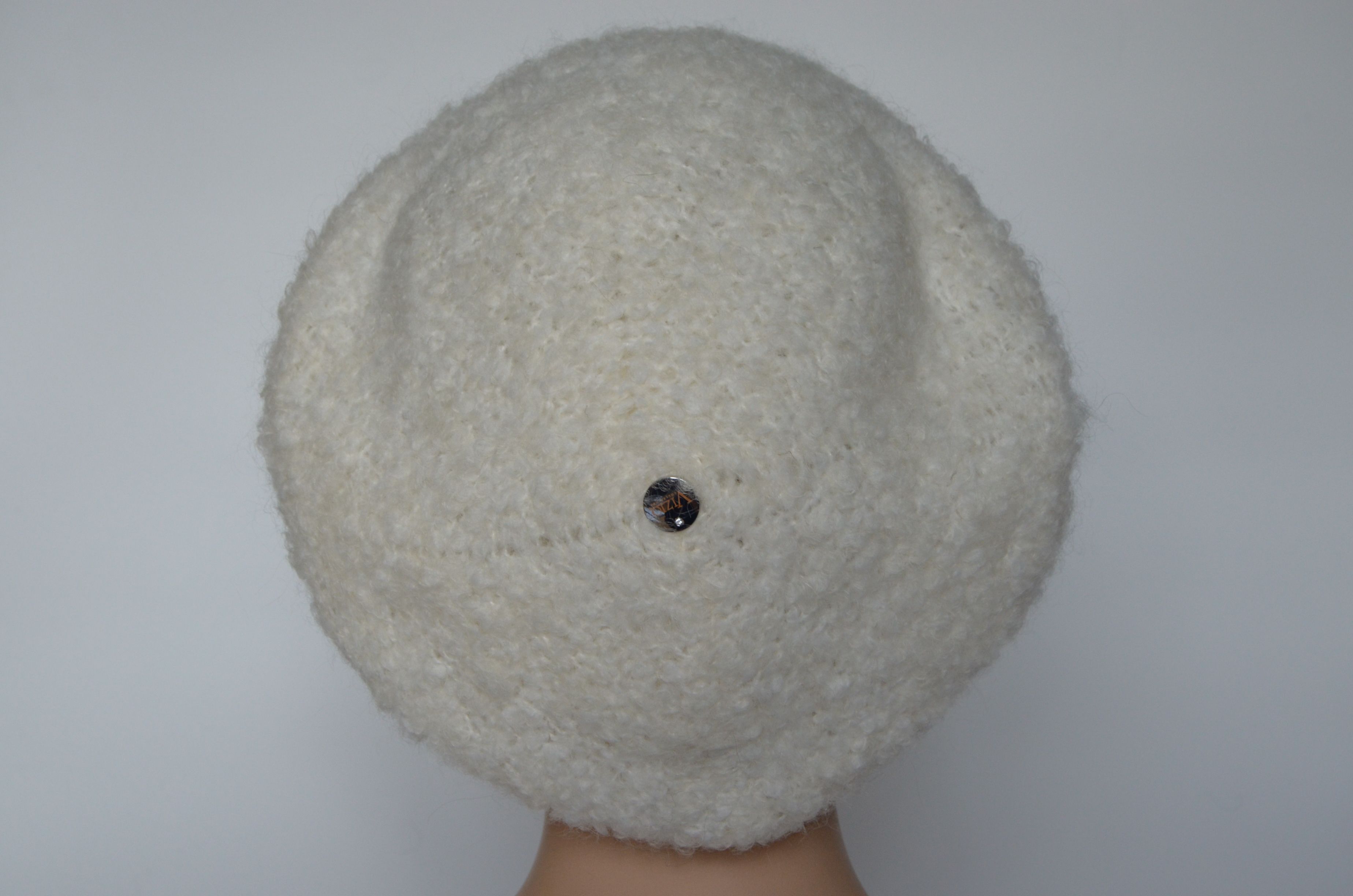 Вязаный пушистый берет белого цвета женский vizio Италия 6957 купить в интернет магазине итальянских беретов для женщин