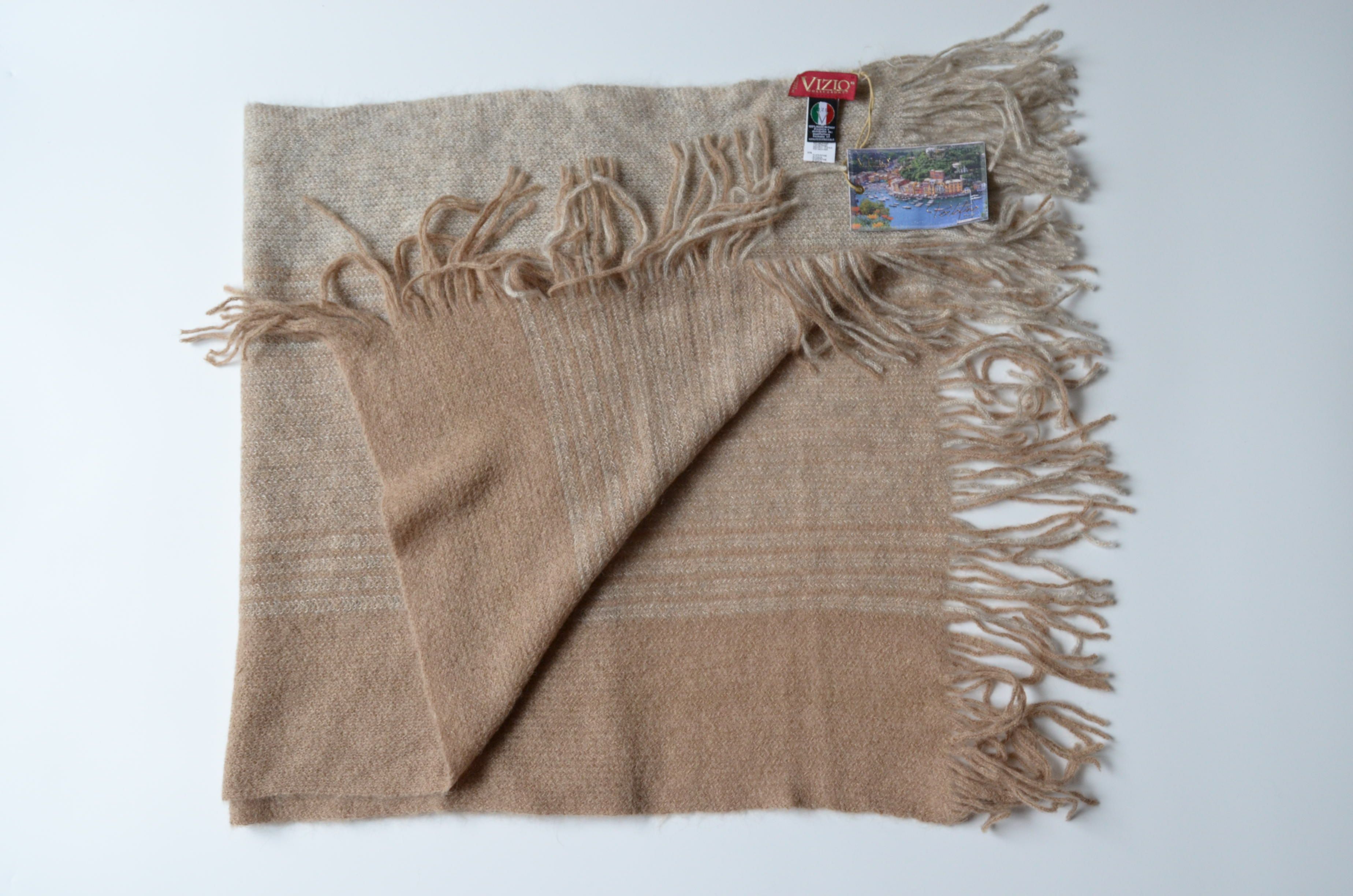 Вязаный итальянский палантин с бахромой для женщин Vizio Италия 6468 SLFK производства бренда итальянских вязаных шарфов и головных уборов Vizio Collezione