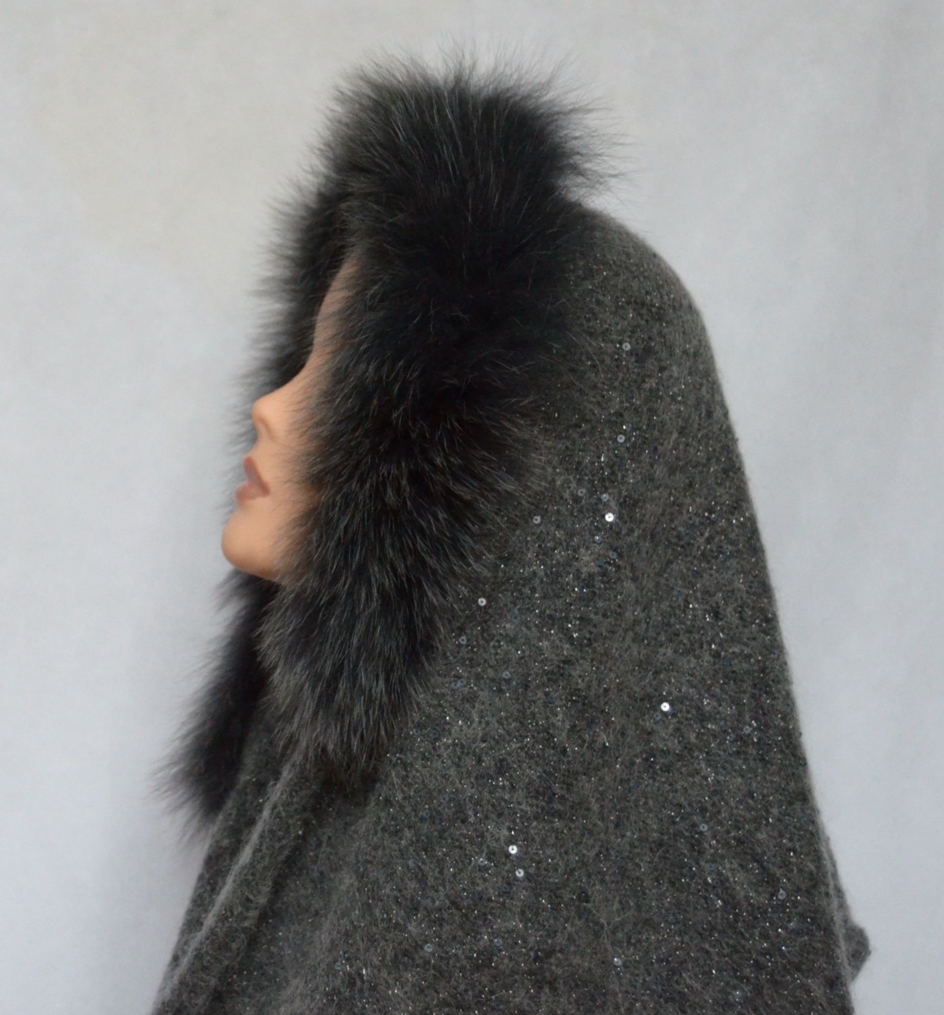 Палантин итальянский вязаный с мехом и пайетками Vizio Италия Tresor SSP V из коллекции итальянских женских шарфов палантинов с меховой оторочкой зима 2020 купить в интернет магазине женских шарфов и головных уборов Италии в Москве и России